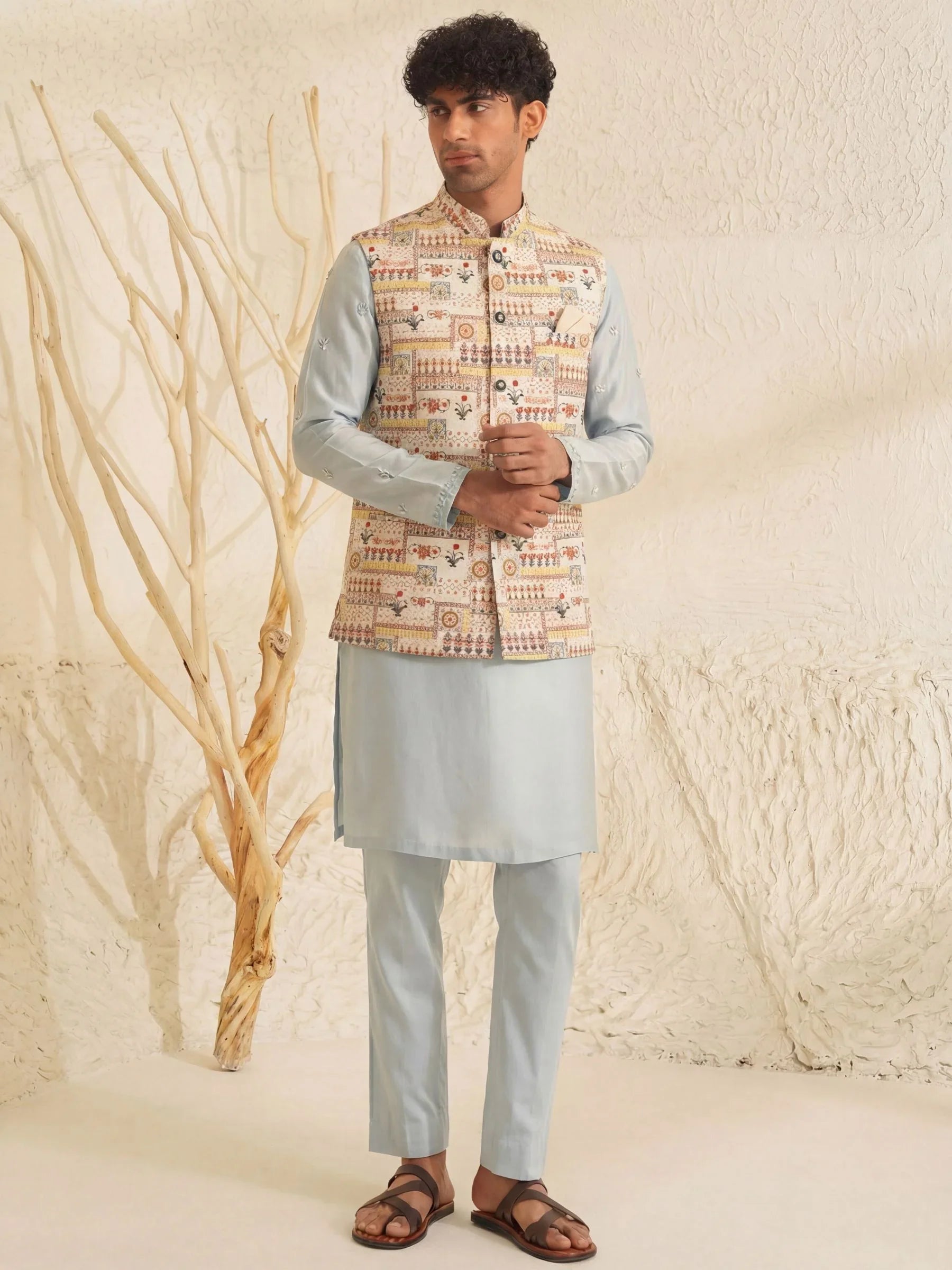 Our Nehru Jacket boasts a traditional print that captures the essence of rich heritage and cultural vibrancy. 🌟 This timeless design infuses your attire with elegance, perfect for celebrating cultural occasions with flair.