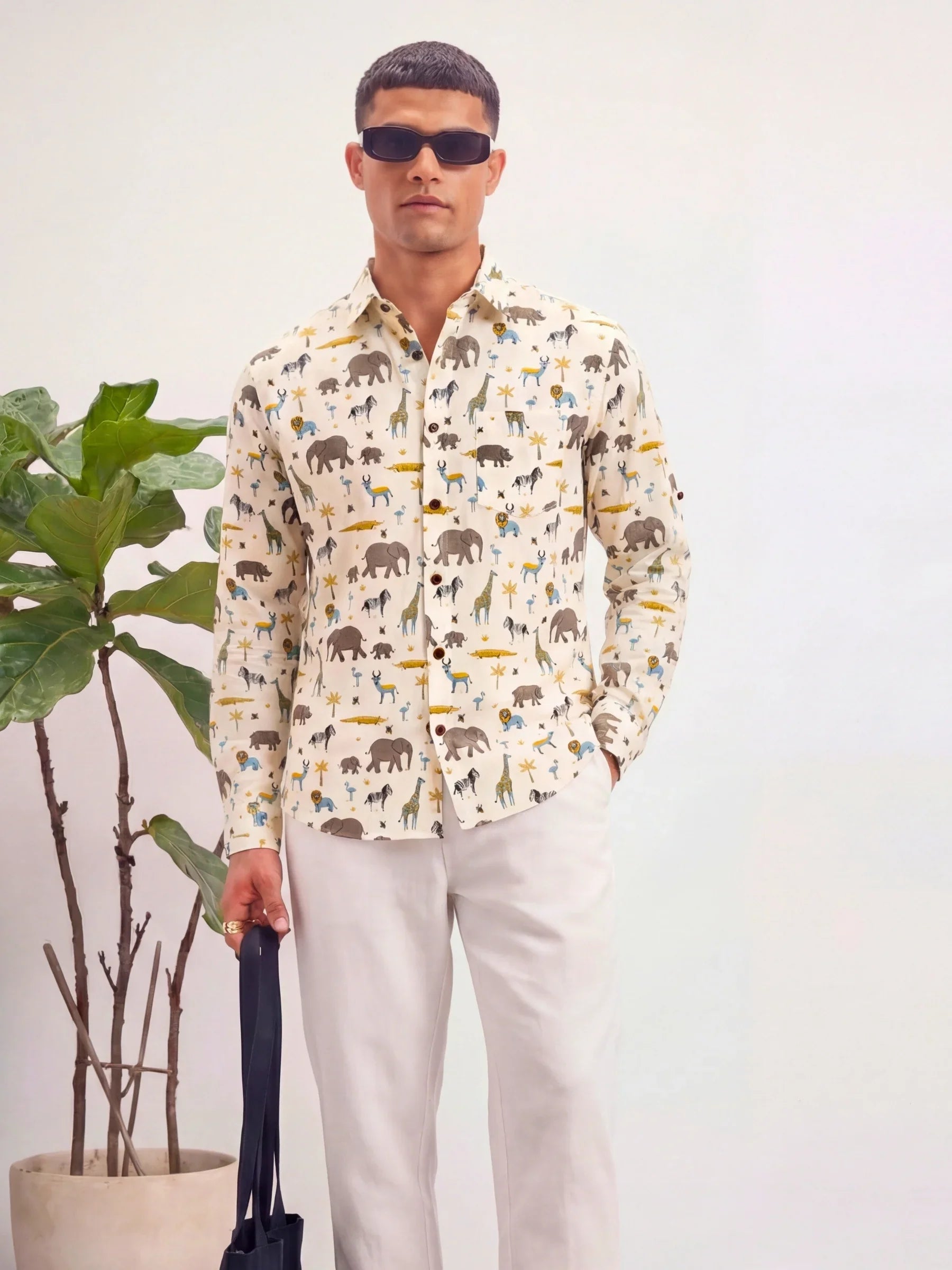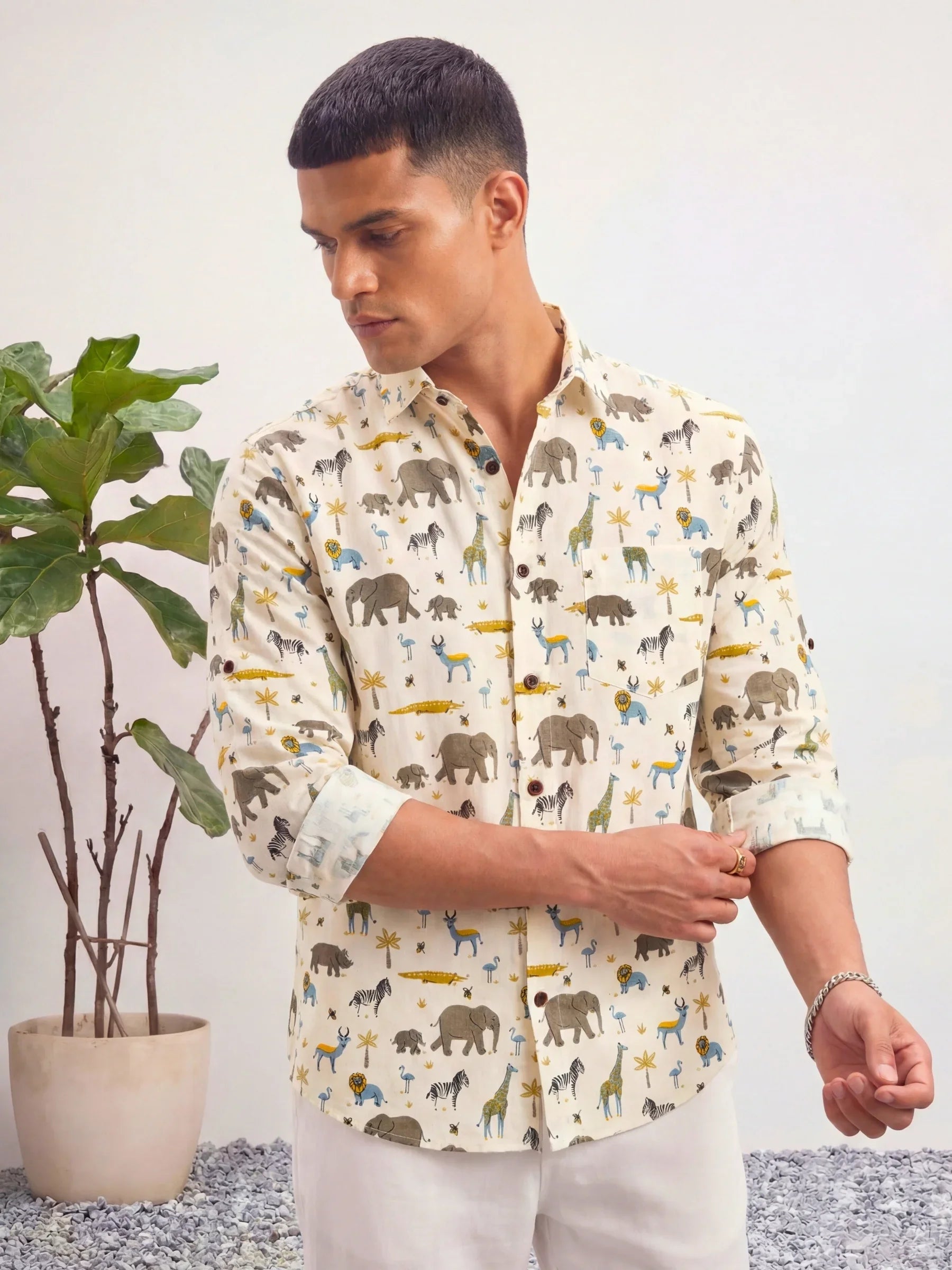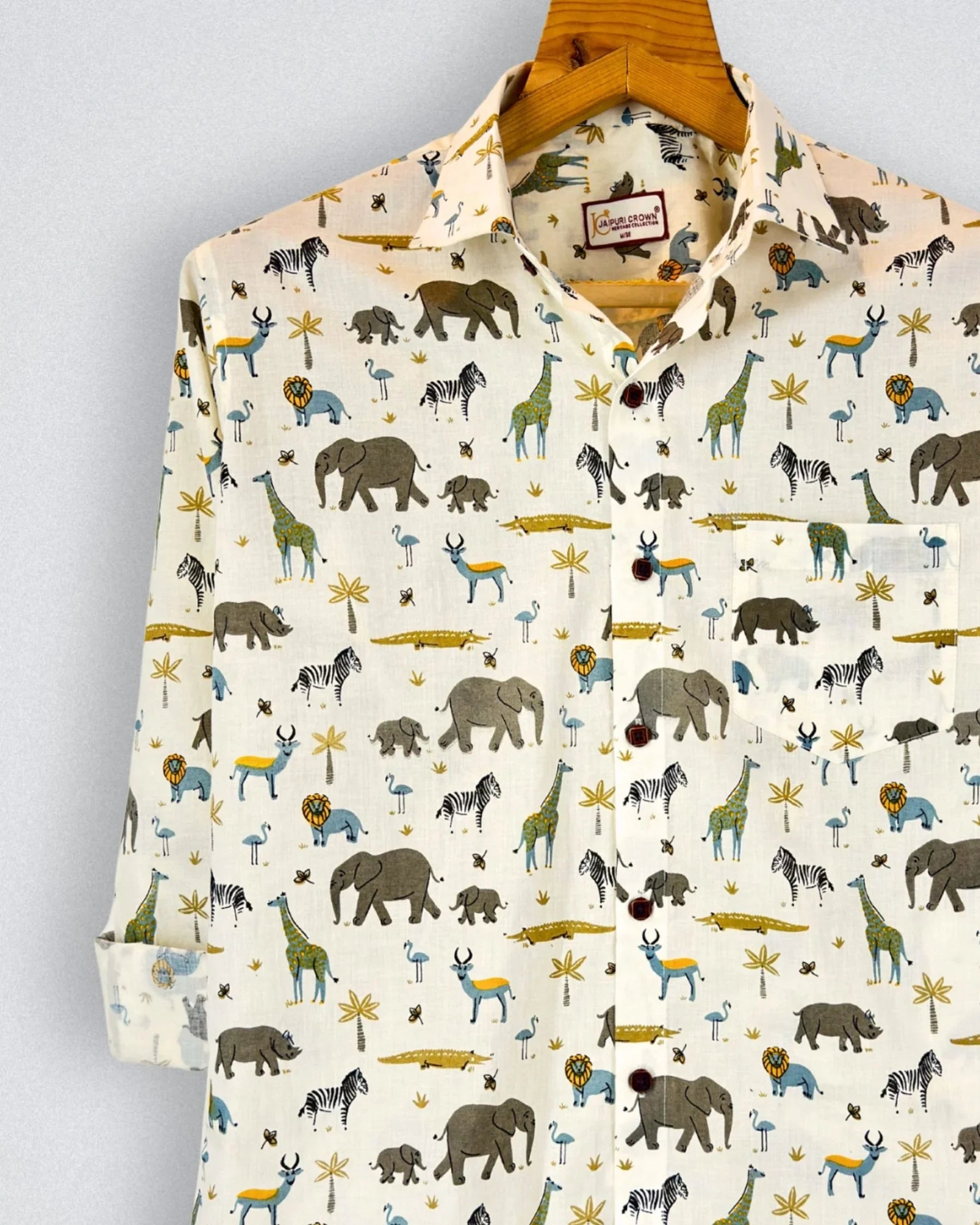 Step into the wild with Wildlife Wonders by Jaipuri Crown – a charming Full sleeve cotton shirt showcasing a playful print of elephants, giraffes, and other safari animals on a soft beige backdrop. Made from 100% Sanganeri cotton, this shirt is not only soft and breathable but also perfect for casual outings, family gatherings, or relaxed weekends.