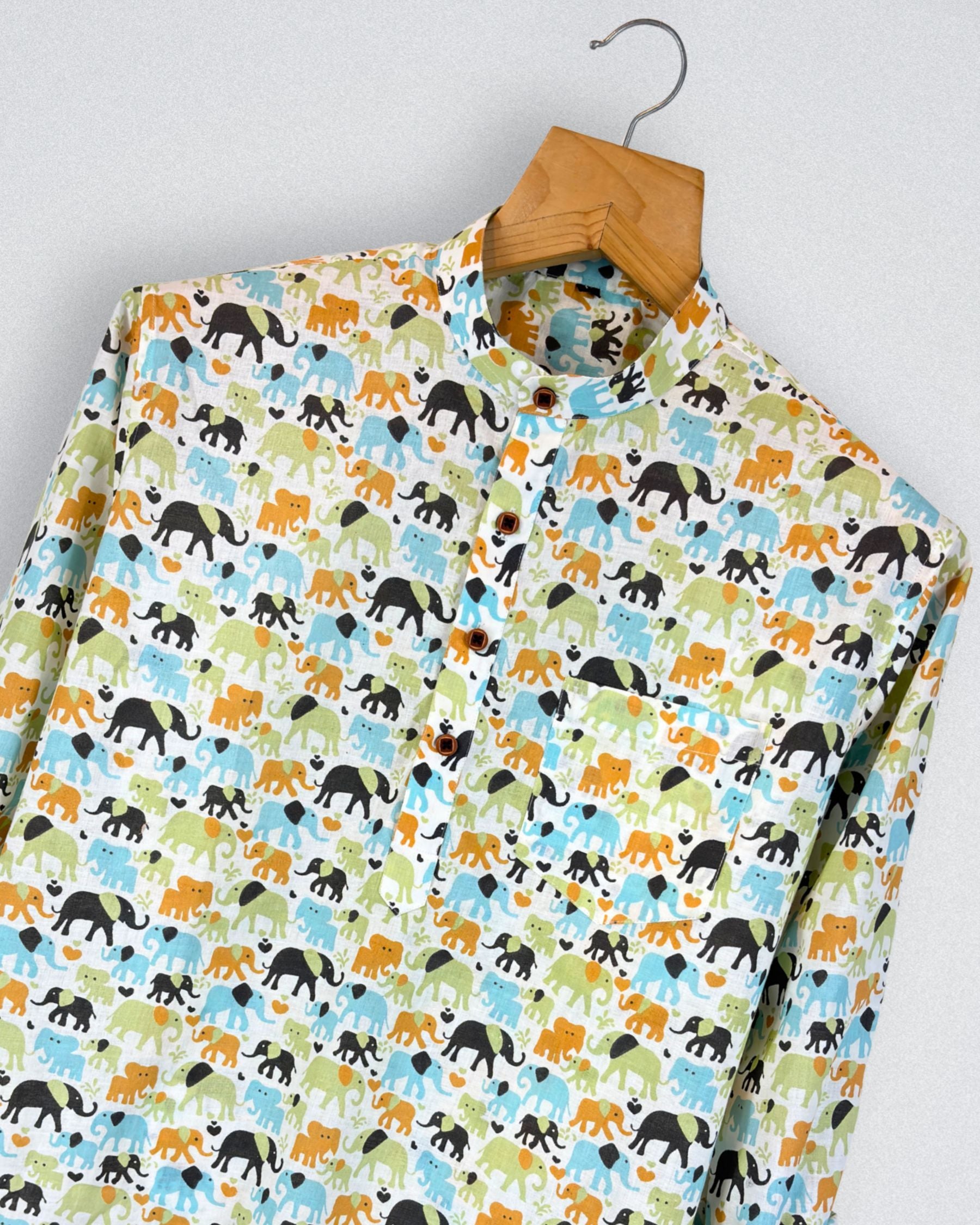 Step into a world of whimsy with Animal Kingdom by Jaipuri Crown – a stylish Short Kurta featuring a playful print of vibrant animals in a spectrum of colors against a light background. Made from 100% Sanganeri cotton, this Kurta ensures a soft and breathable feel, making it perfect for casual outings, family gatherings, or relaxed weekends.