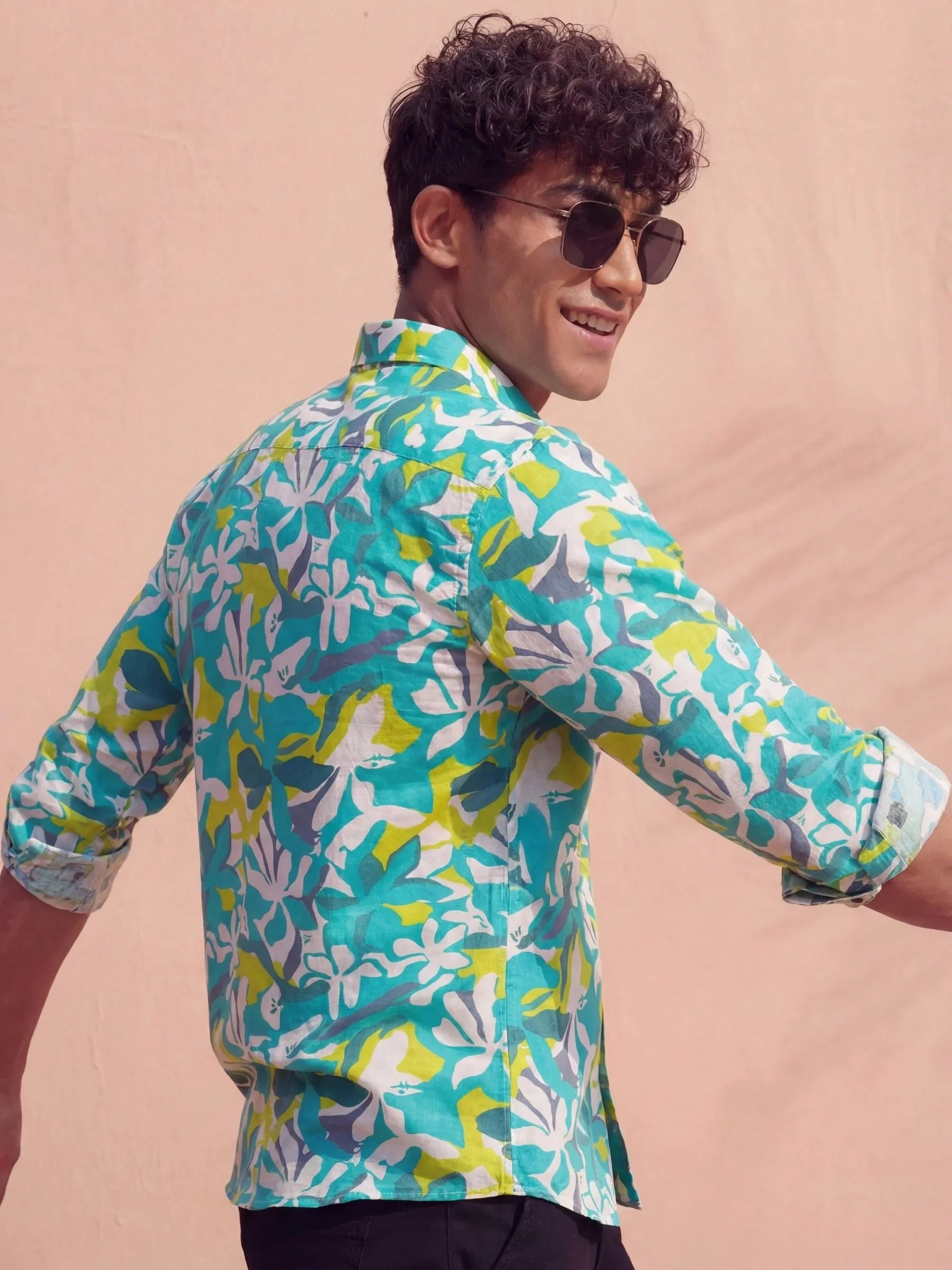 Aqua Bloom – Full Sleeve Printed Shirt
