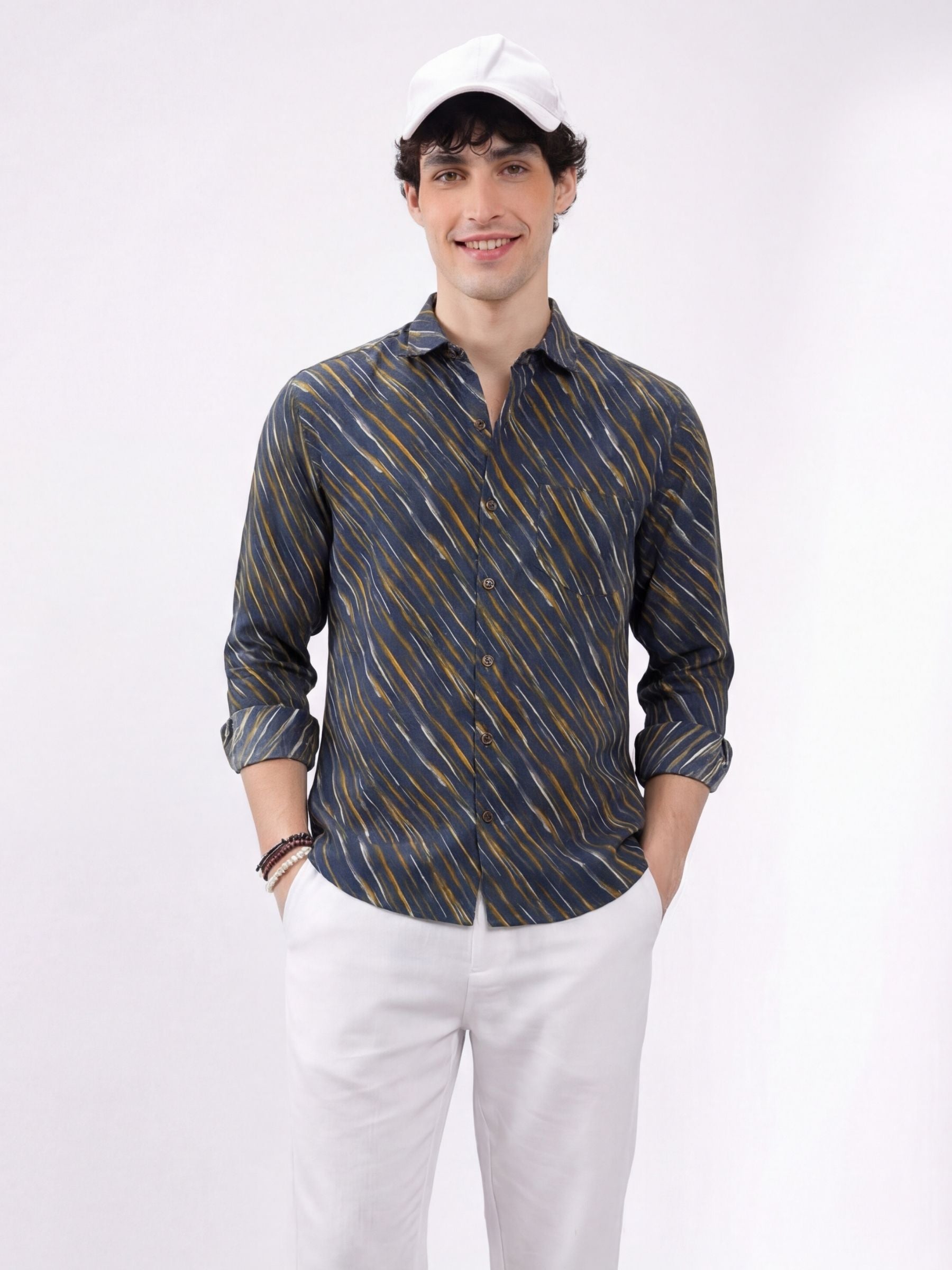 Experience a blend of comfort and style with Bold Streaks by Jaipuri Crown – a trendy Full Sleeve cotton shirt featuring an eye-catching striped design in blue and yellow hues. Made from 100% premium cotton, this shirt ensures softness and breathability, making it an ideal choice for casual gatherings, work, or leisurely weekends.