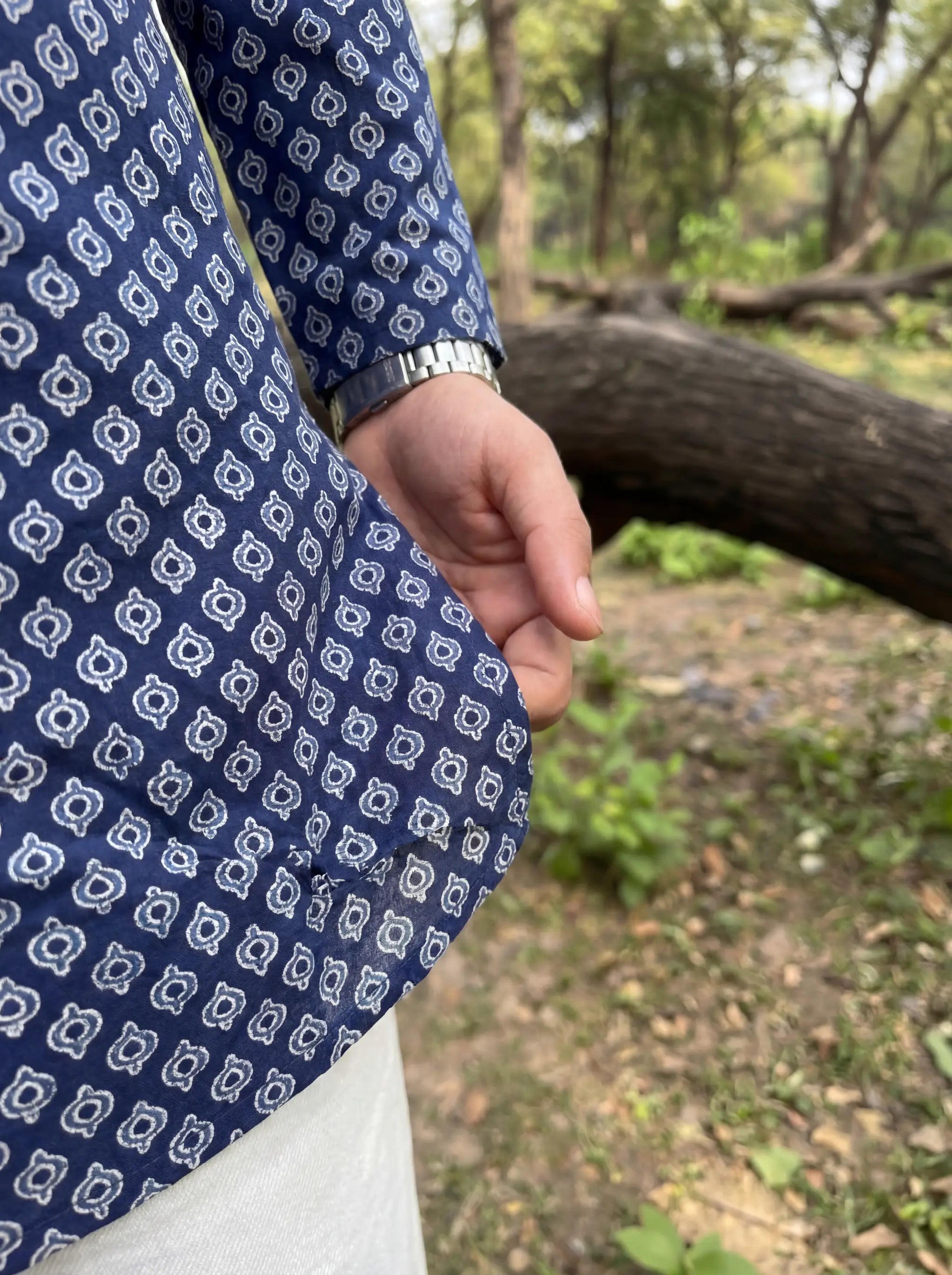 Blue Elegance – Printed Cotton Short Kurta
