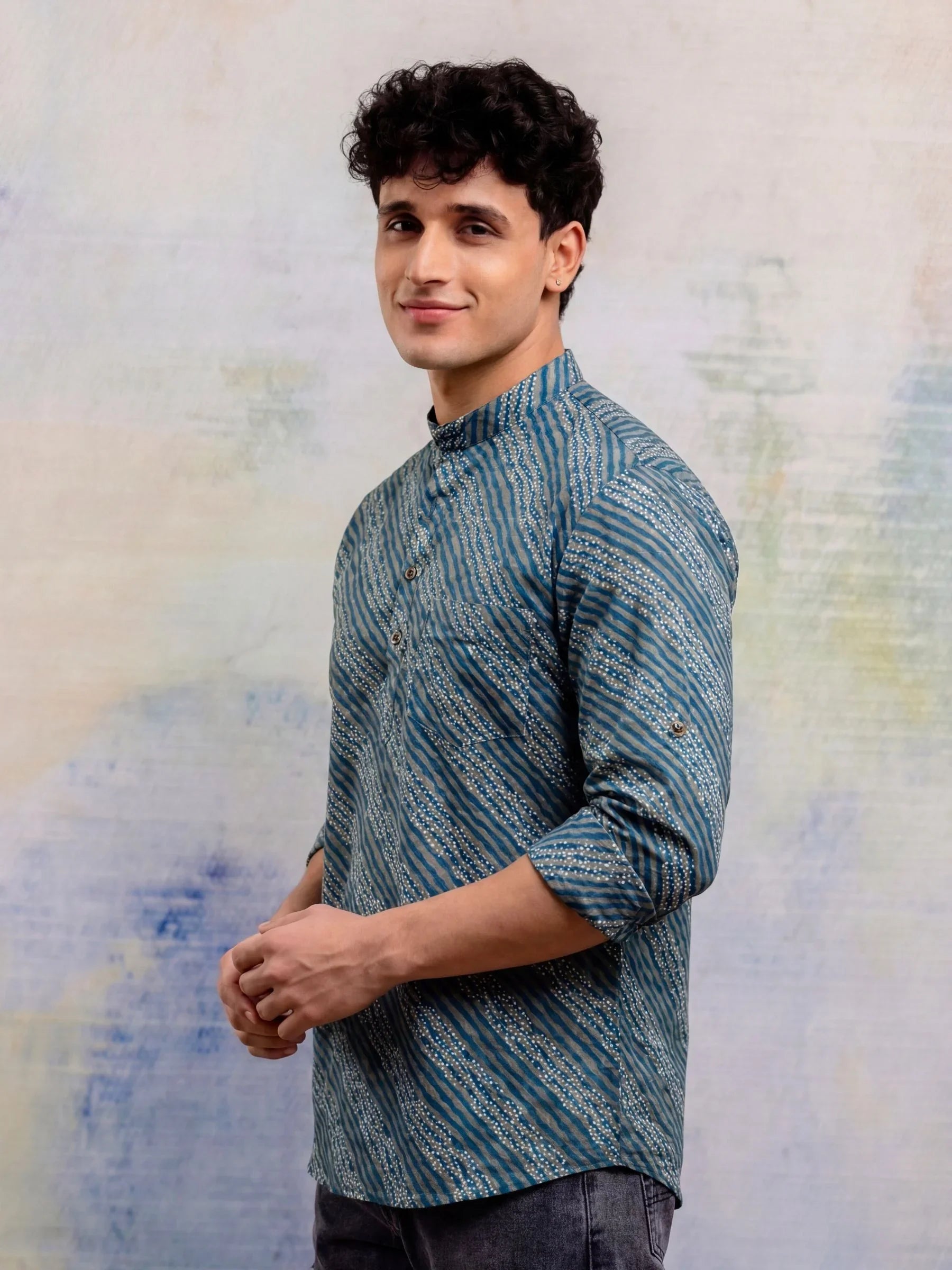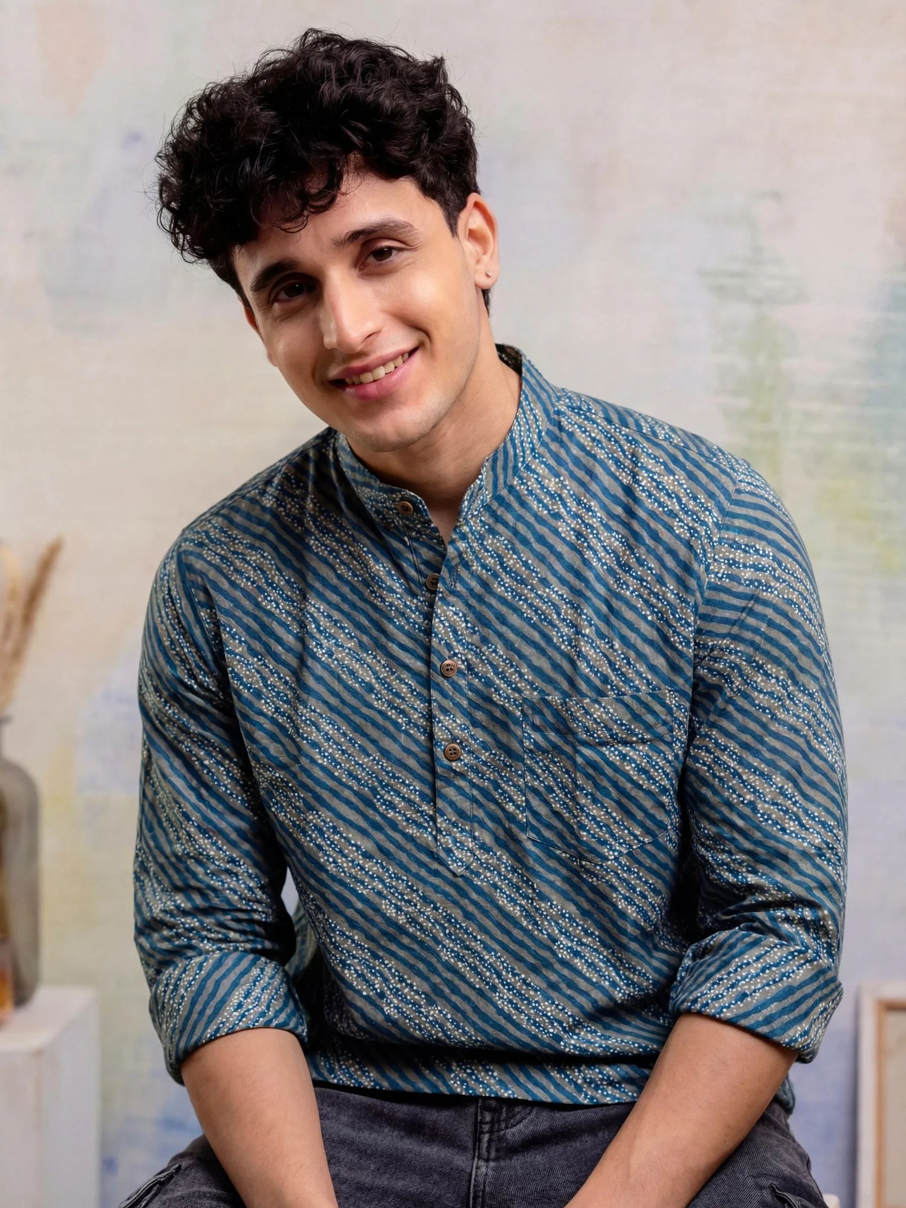 Experience the essence of style with Ocean Vibes by Jaipuri Crown – a fashionable Short Kurta featuring a captivating blue wave pattern against a subtle beige background. Made from 100% breathable cotton, this Kurta ensures comfort and ease, perfect for casual outings, festive gatherings, or relaxed weekends.