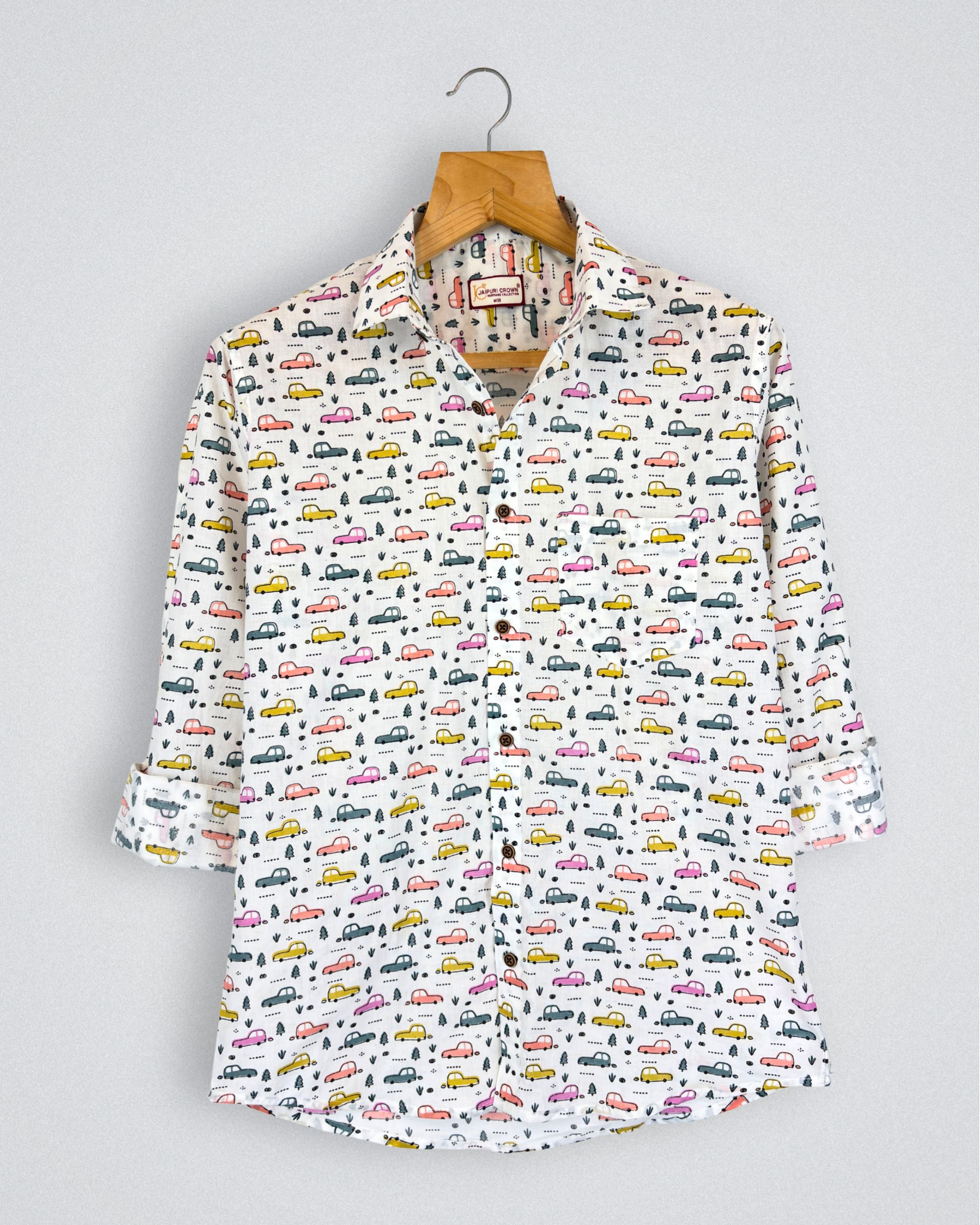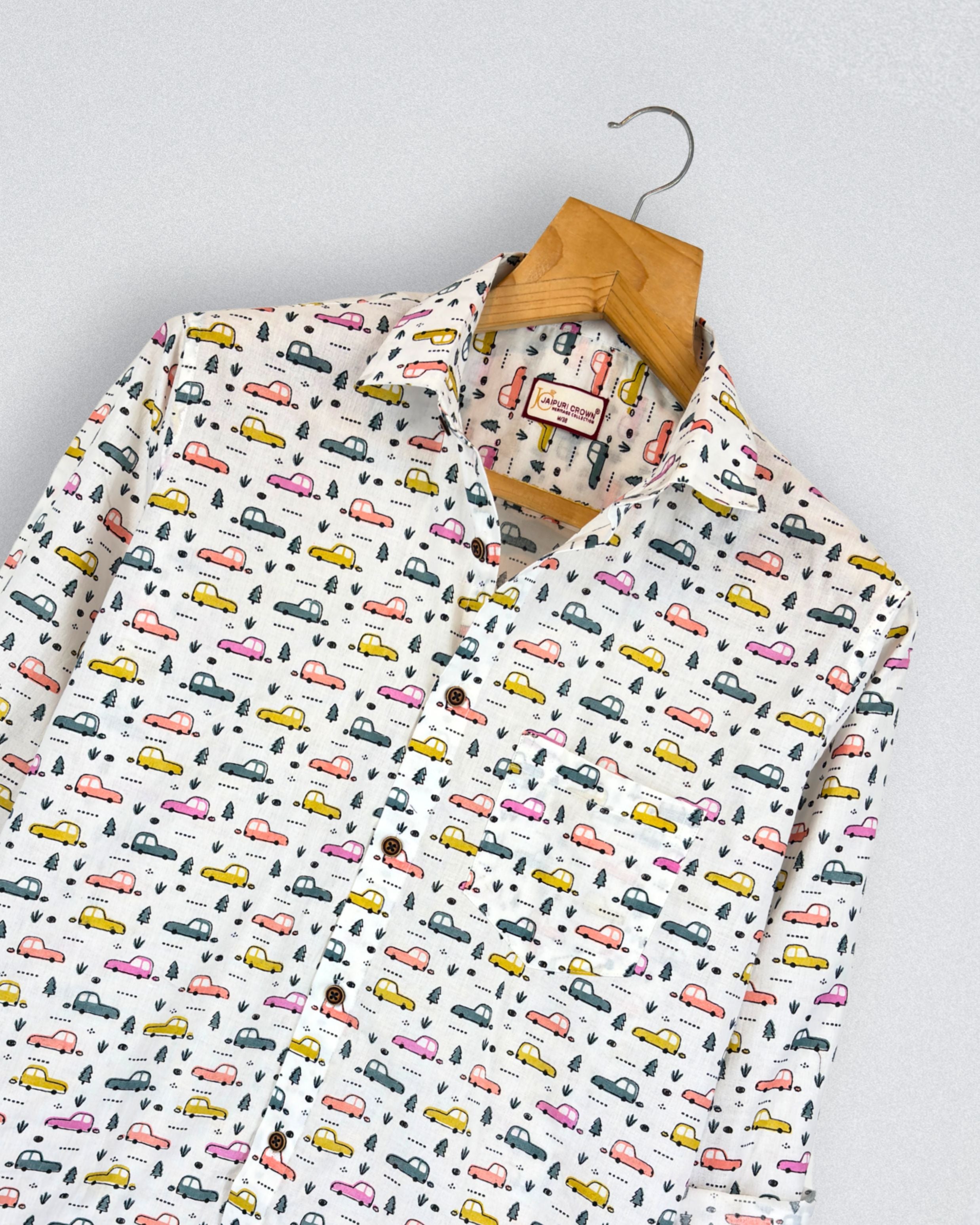 Rev up your style with Car Parade by Jaipuri Crown – a charming Full sleeve cotton shirt featuring a playful print of colorful cars on a crisp white background. Made from 100% Sanganeri cotton, this shirt is not only soft and breathable but also perfect for casual outings, road trips, or relaxed weekends with friends.