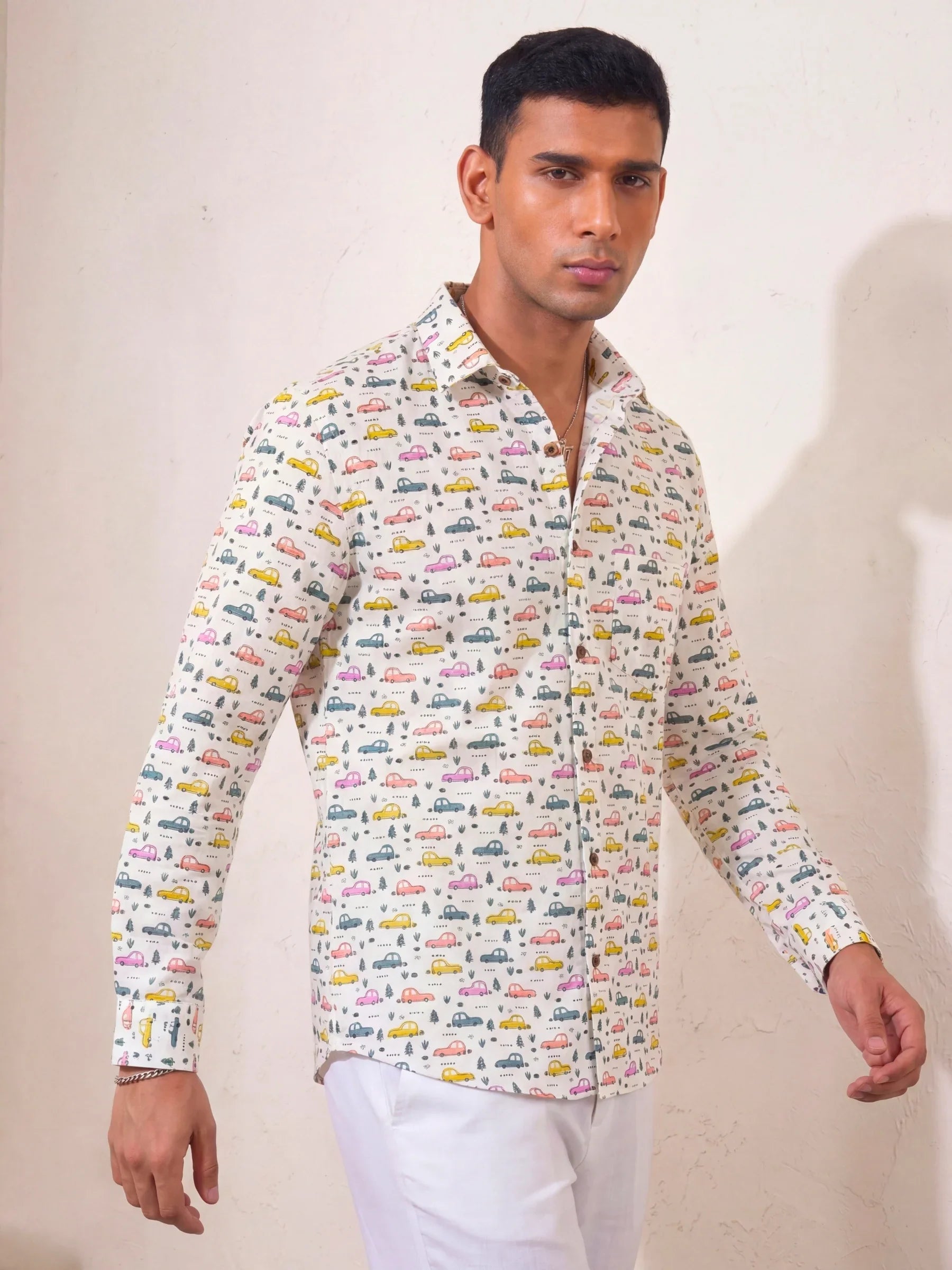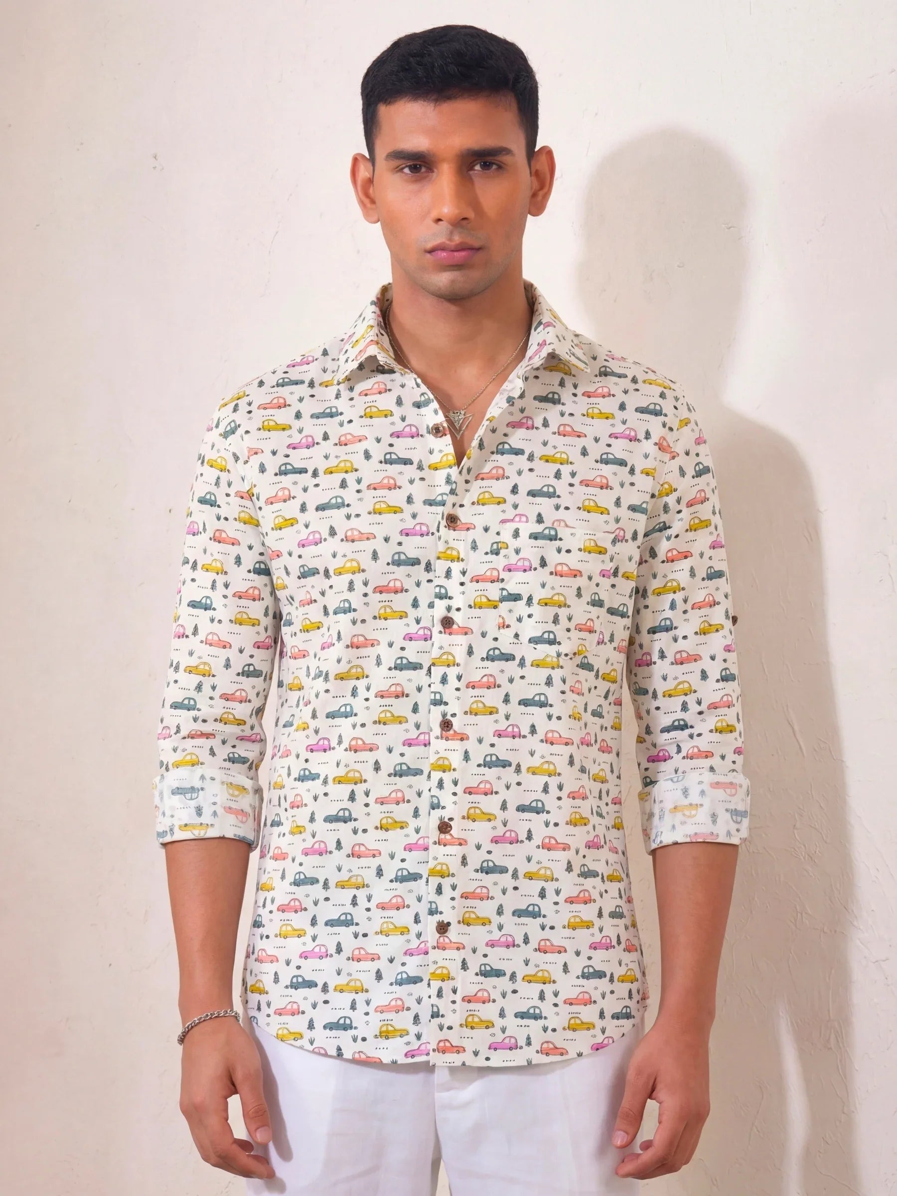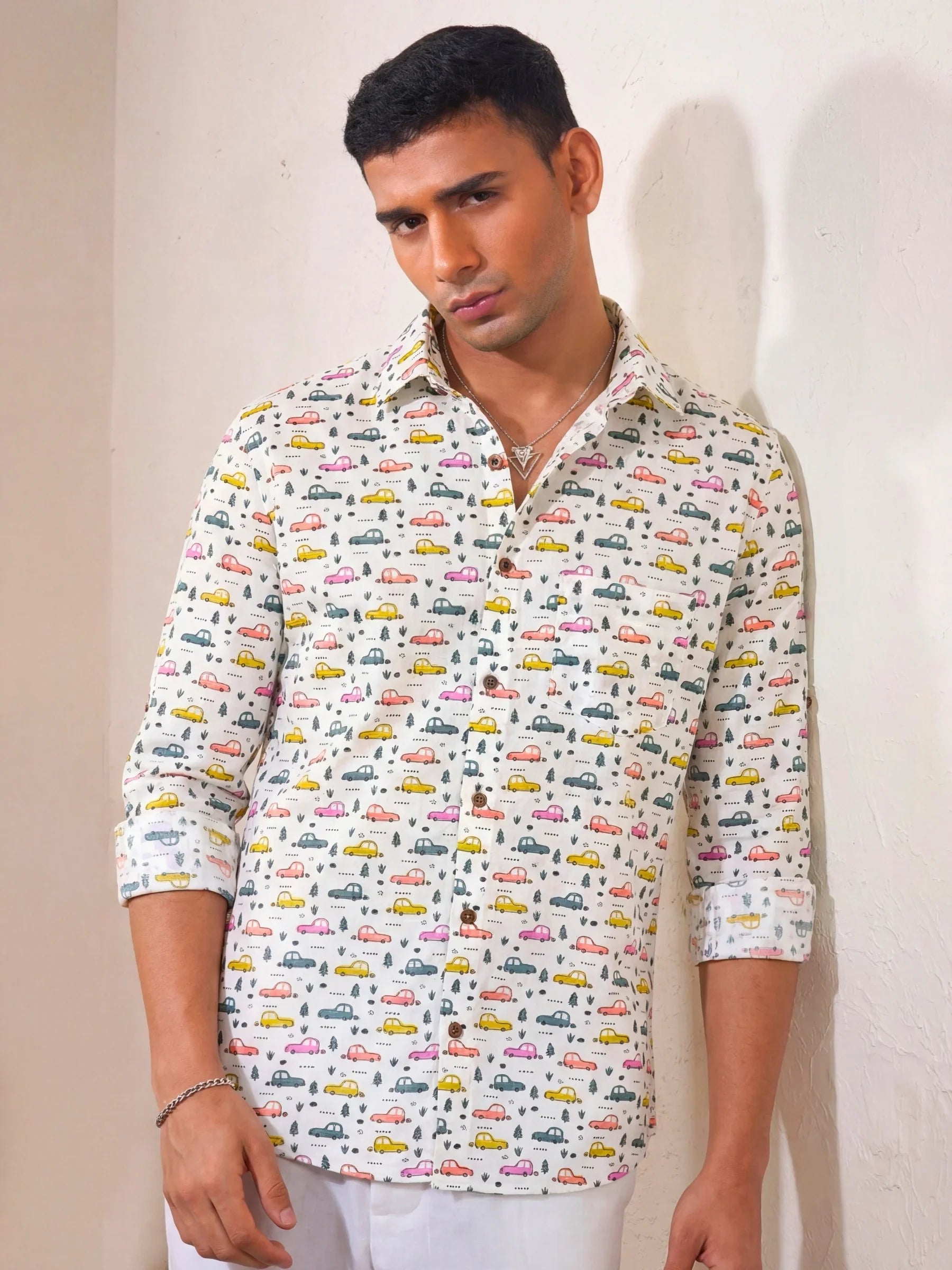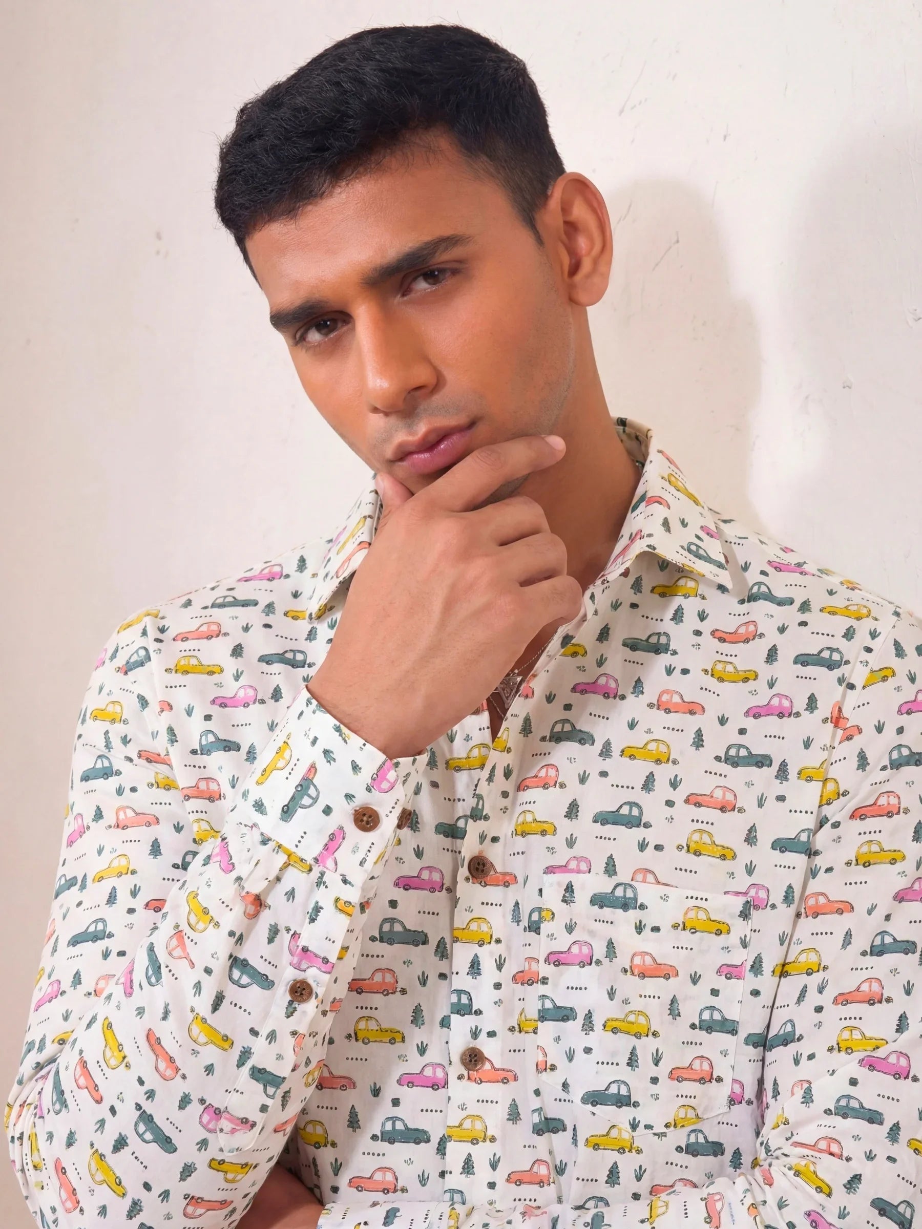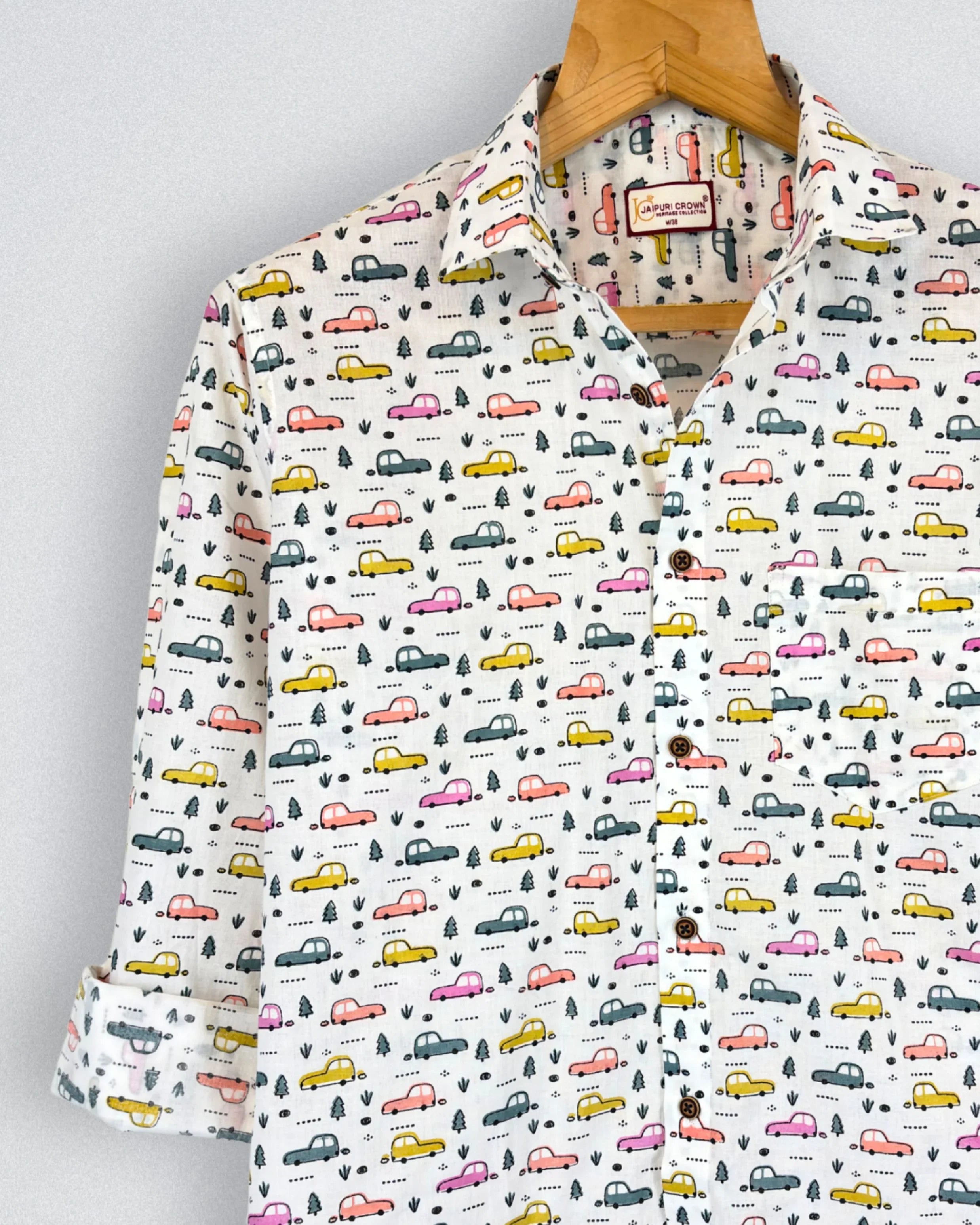 Rev up your style with Car Parade by Jaipuri Crown – a charming Full sleeve cotton shirt featuring a playful print of colorful cars on a crisp white background. Made from 100% Sanganeri cotton, this shirt is not only soft and breathable but also perfect for casual outings, road trips, or relaxed weekends with friends.