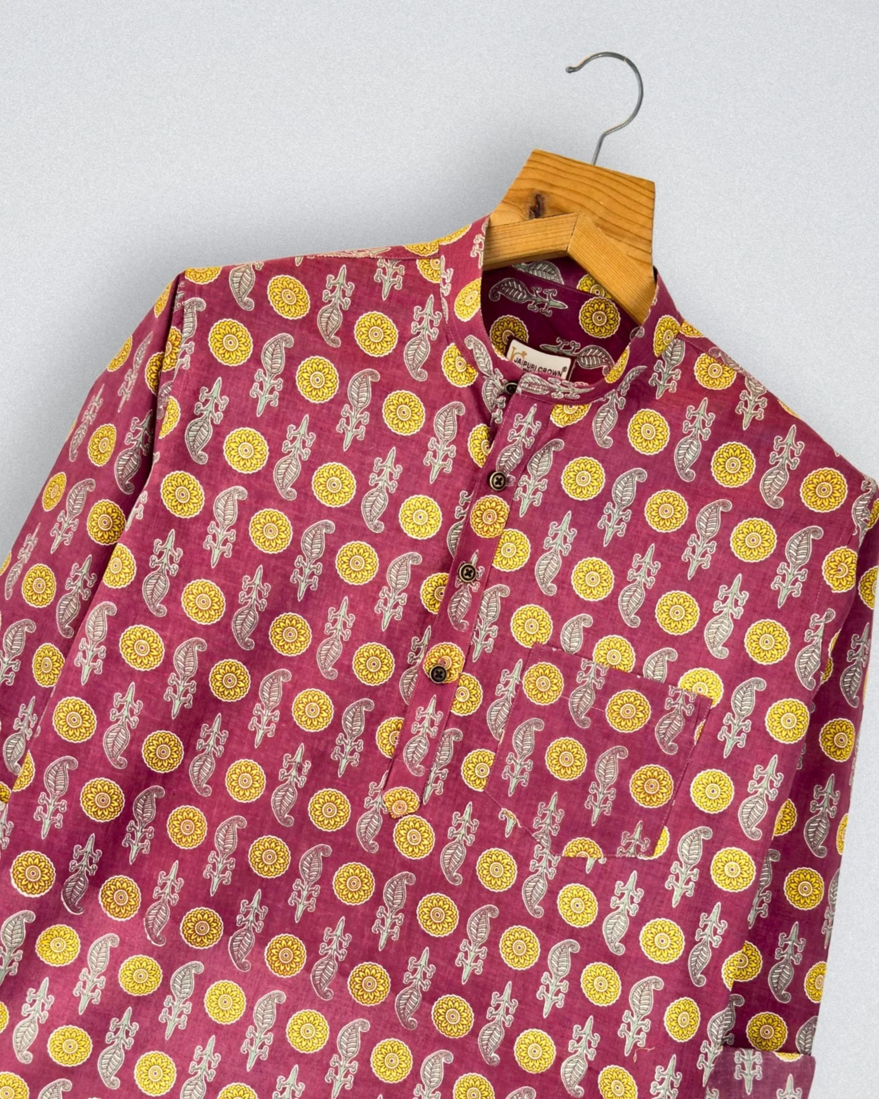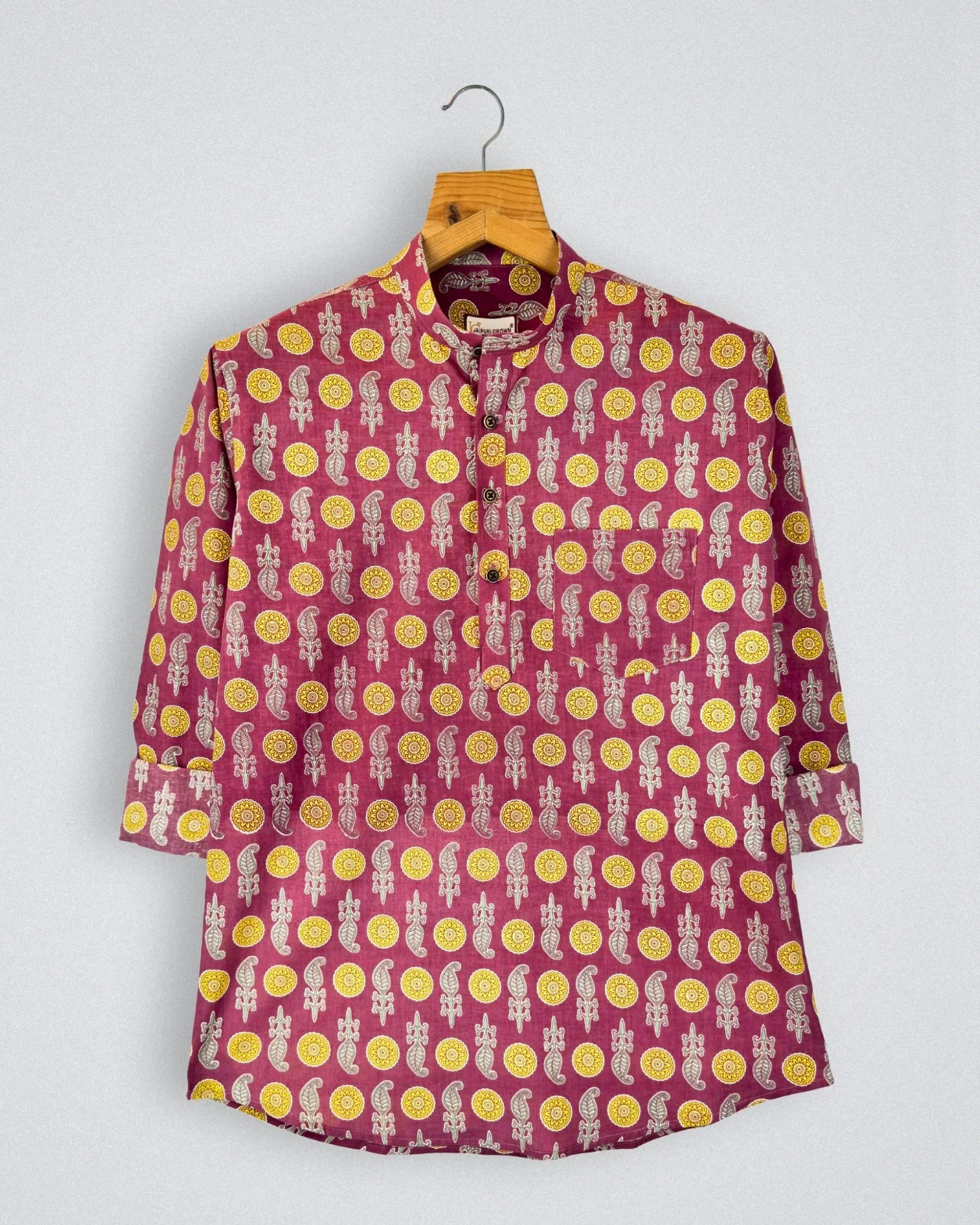 Step into a world of vibrant colors with Floral Harmony by Jaipuri Crown – a stunning Short Kurta featuring an eye-catching floral print in pink and yellow on a rich maroon background. Made from 100% Sanganeri cotton, this Kurta ensures utmost comfort and breathability, making it an ideal choice for festive occasions, brunches, or casual outings.