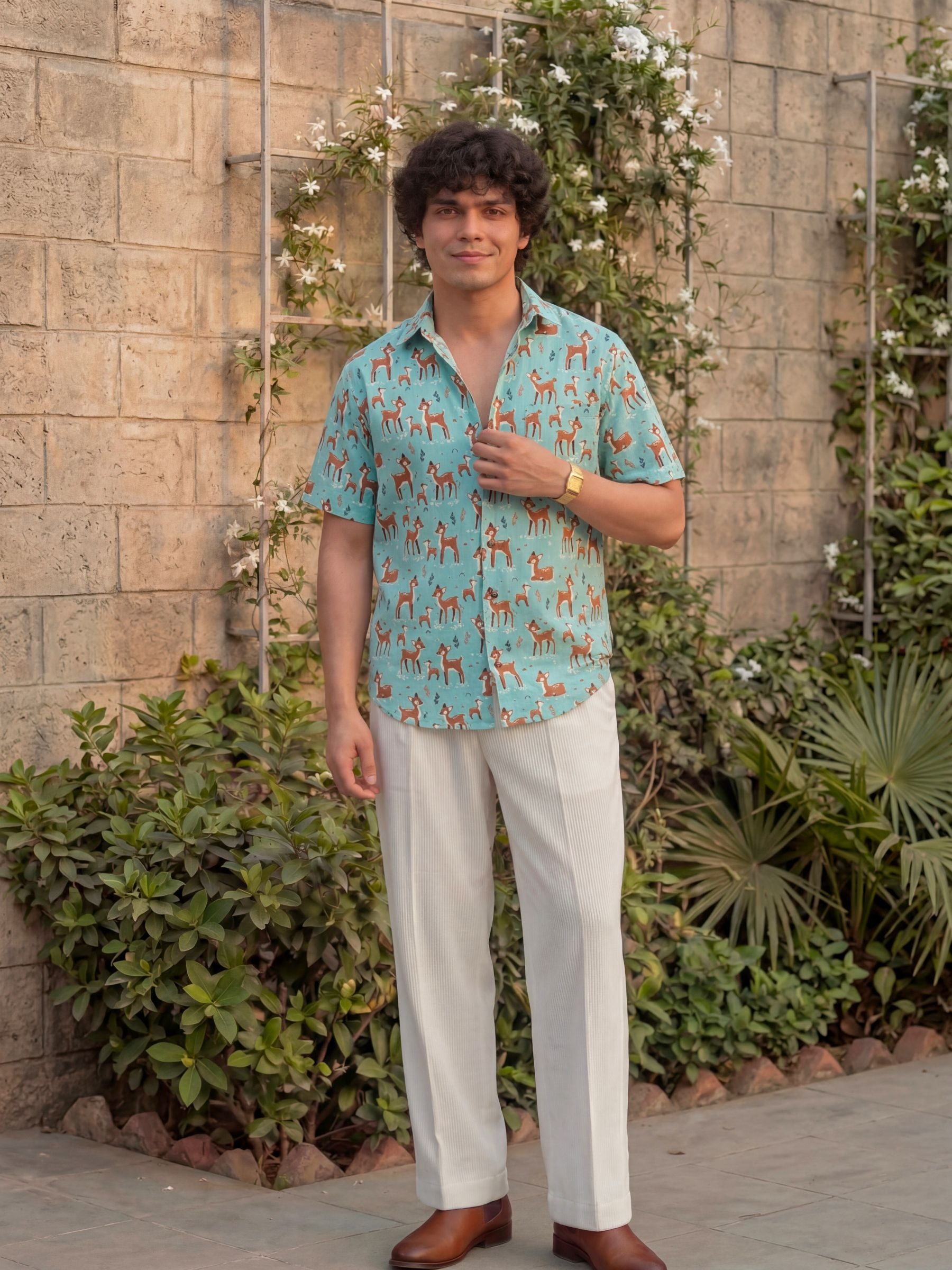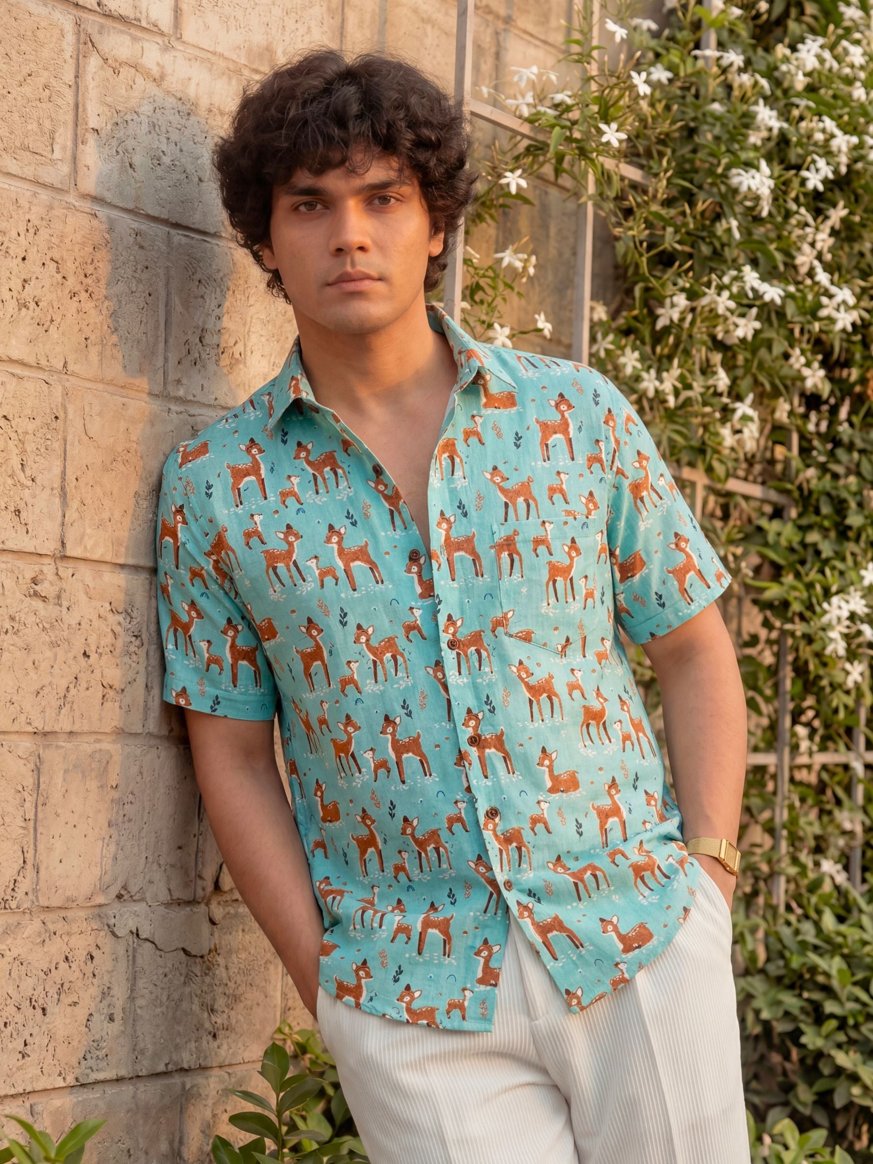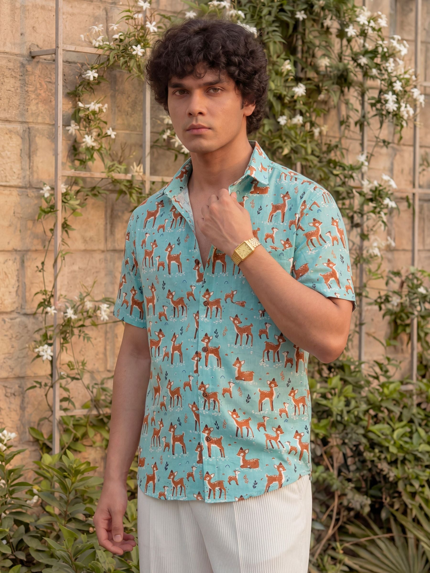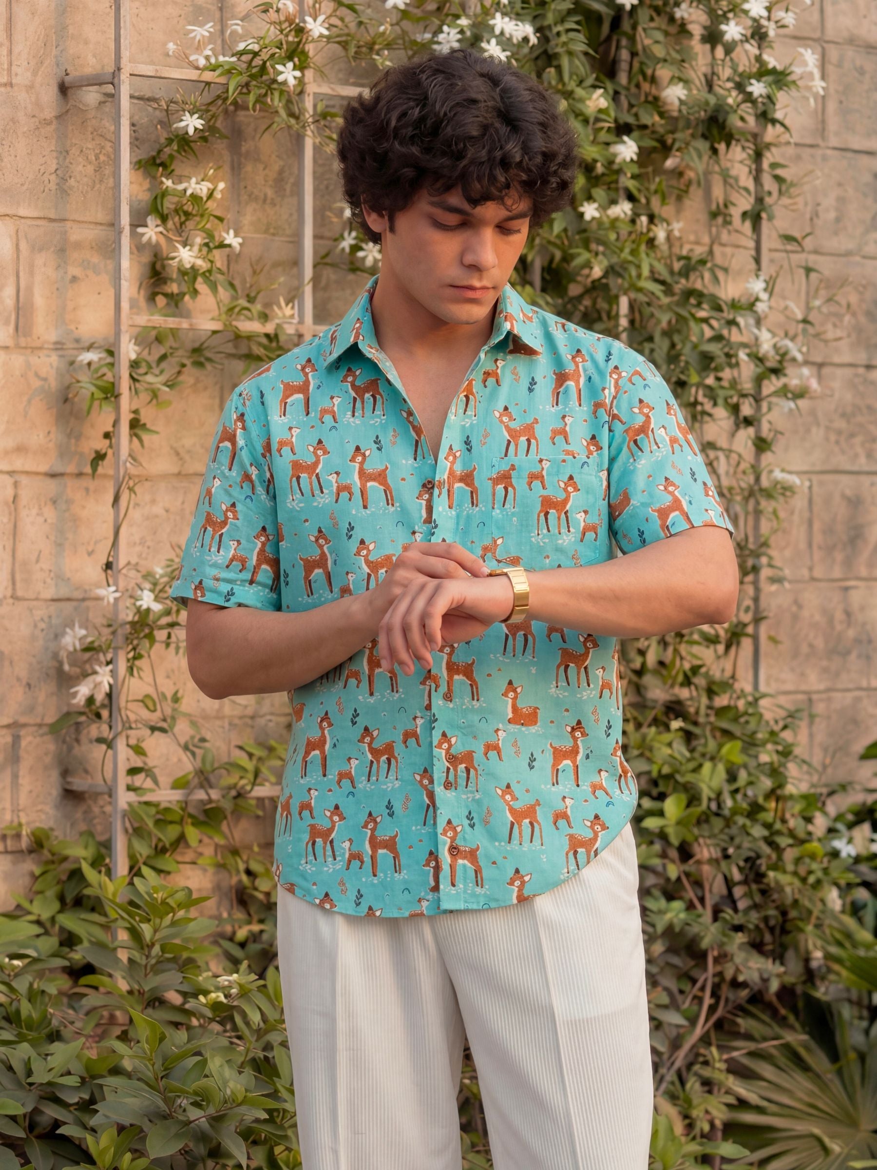 Step out in style with our Deer Dance Half Sleeve Shirt! πΏ Crafted from premium Sanganeri cotton, it ensures breathability and comfort for all-day wear. π¦