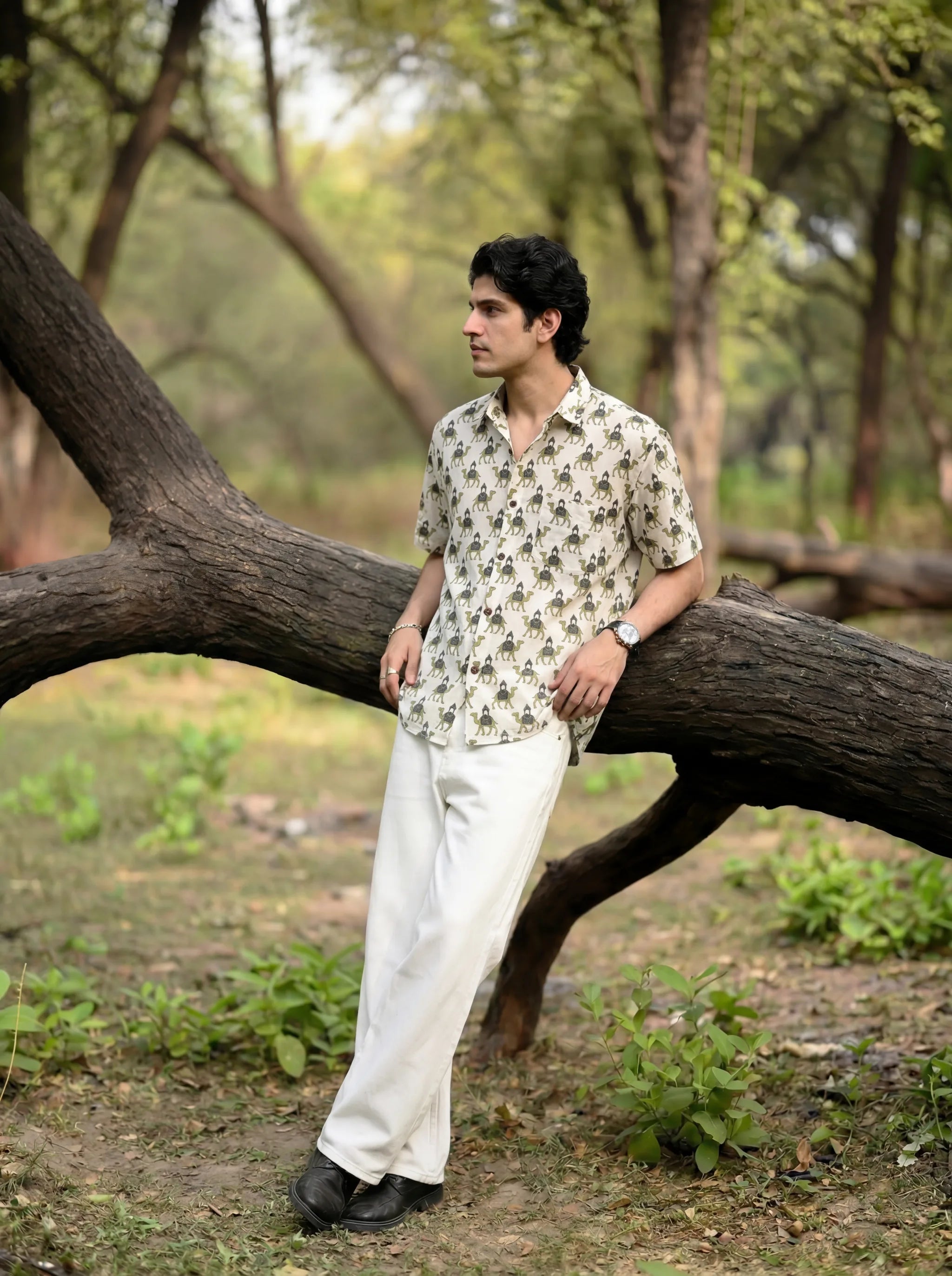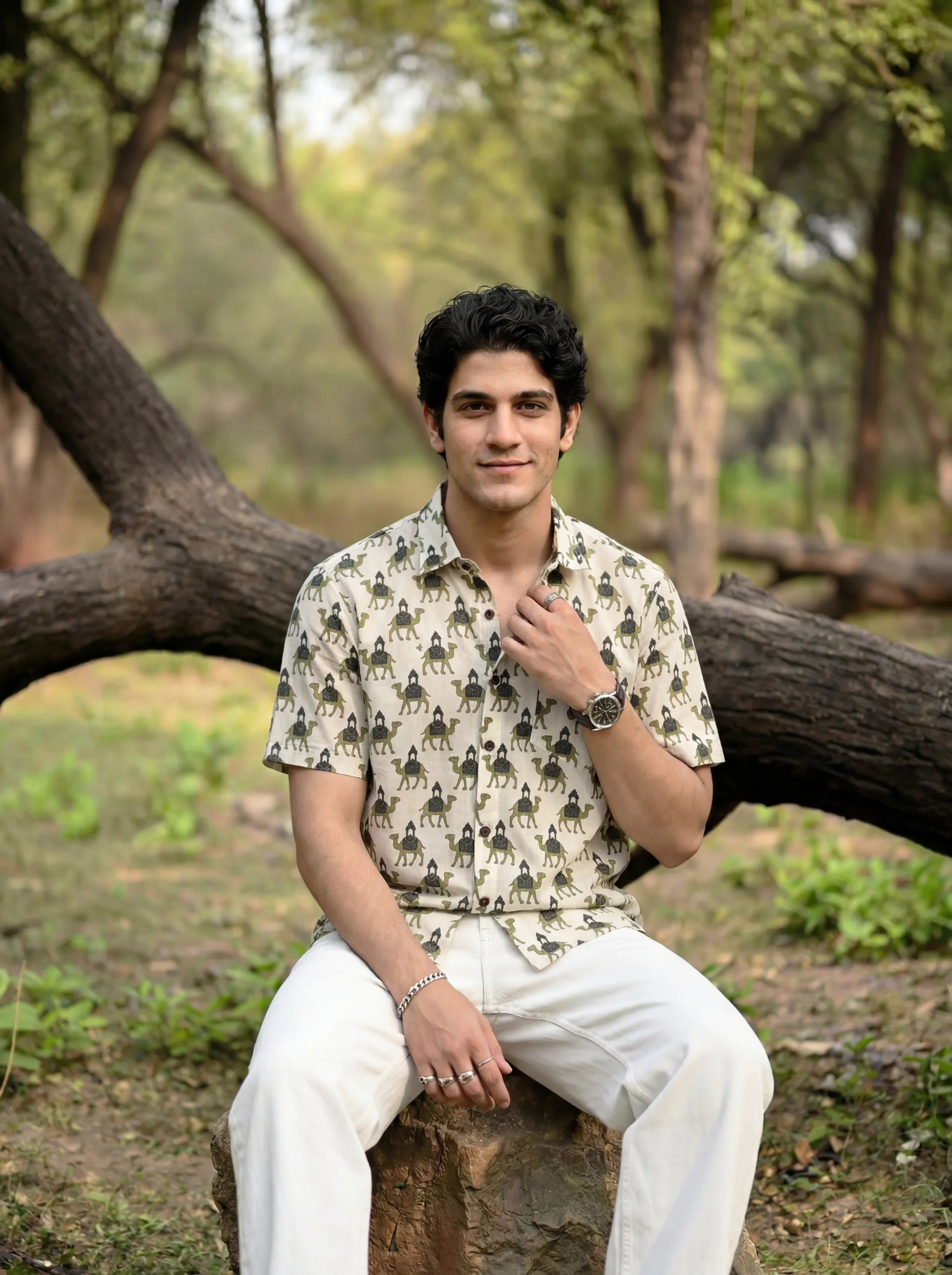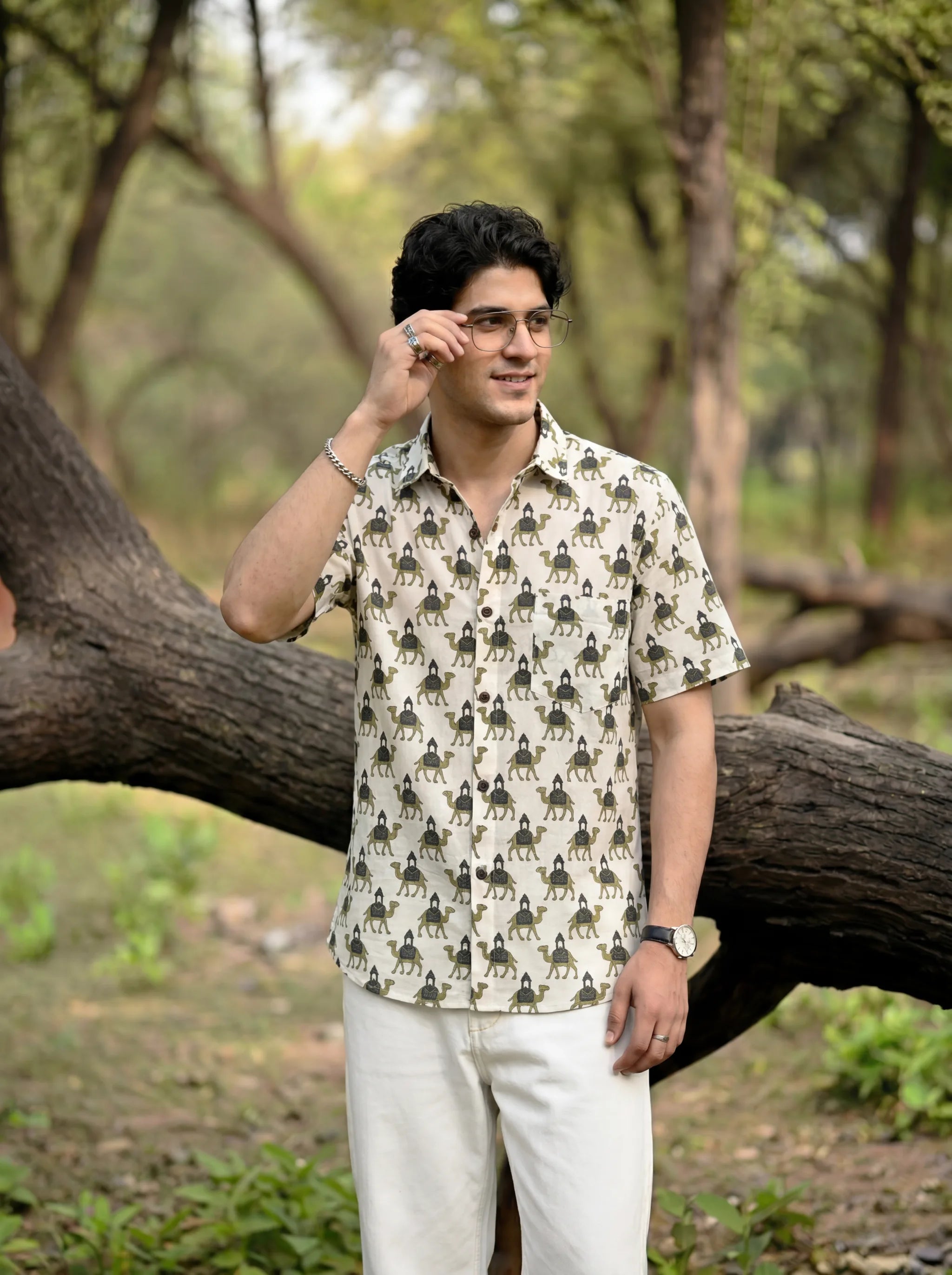 Step into style with our Jaipuri Crown Men's Half Sleeve Shirt, crafted from premium Sanganeri cotton! πΏ This shirt features a unique camel print, inspired by the rich heritage of Rajasthan. πͺ