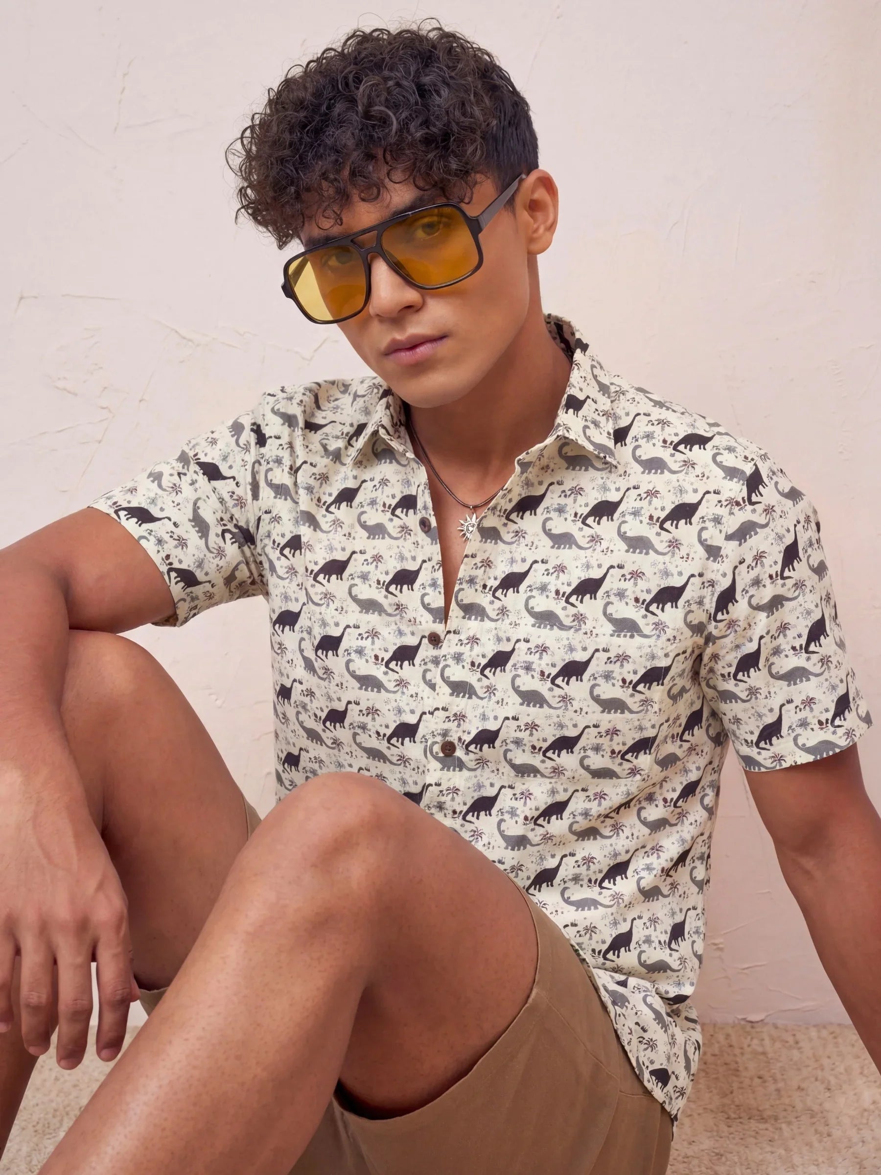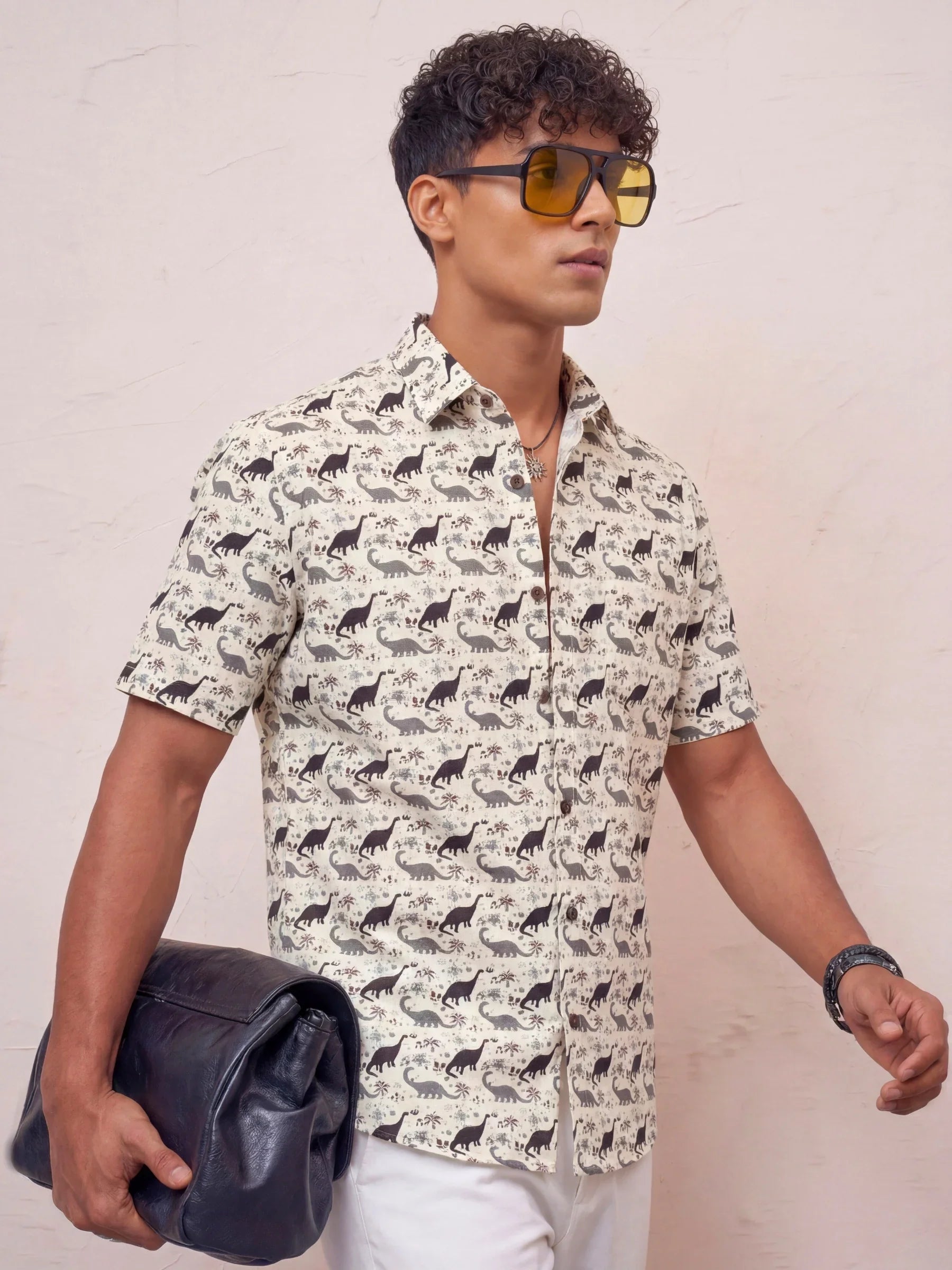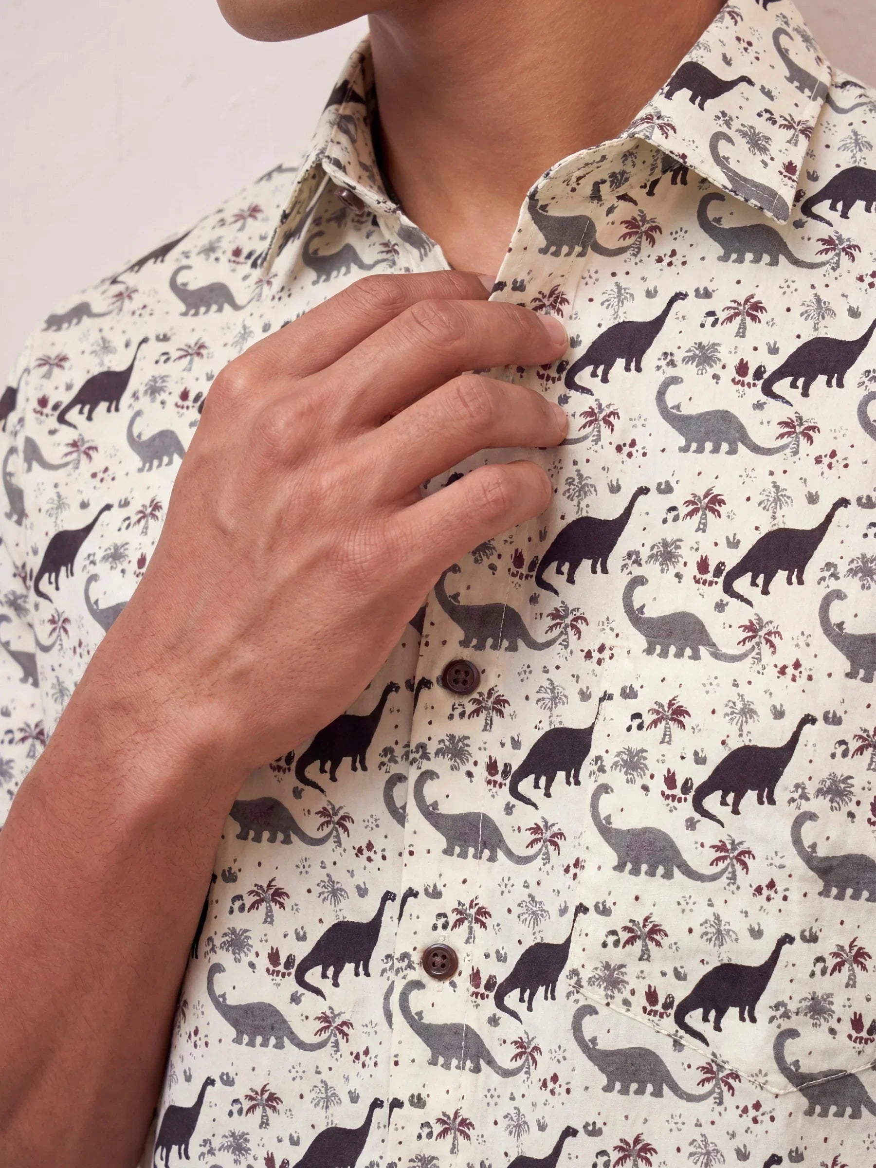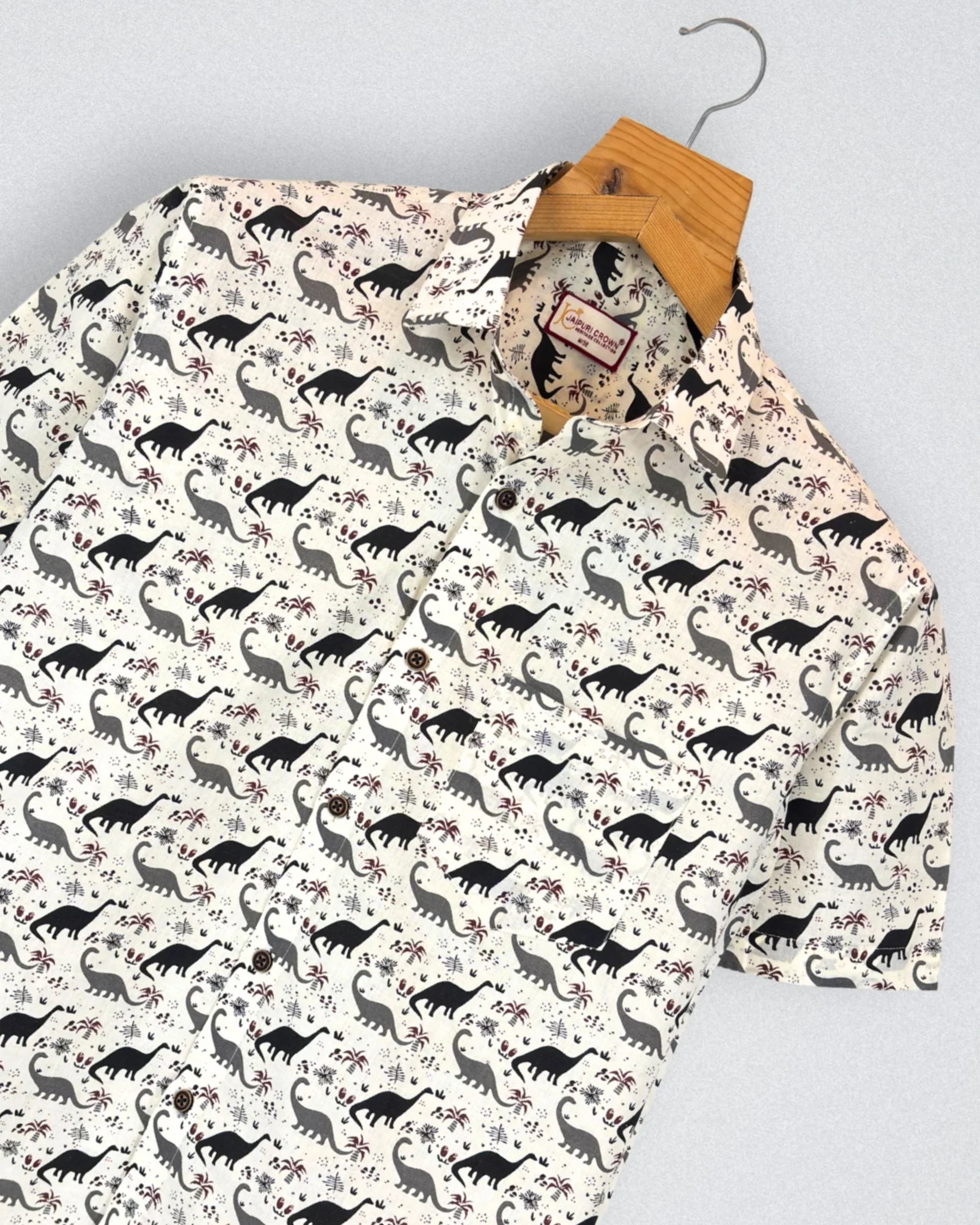 Step into a world of fun with Dino Adventure by Jaipuri Crown – a playful half sleeve cotton shirt featuring a whimsical dinosaur print in black on a soft cream background. Made from 100% Sanganeri cotton, this shirt ensures a comfortable and breathable fit, perfect for casual outings, family gatherings, or laid-back weekends.