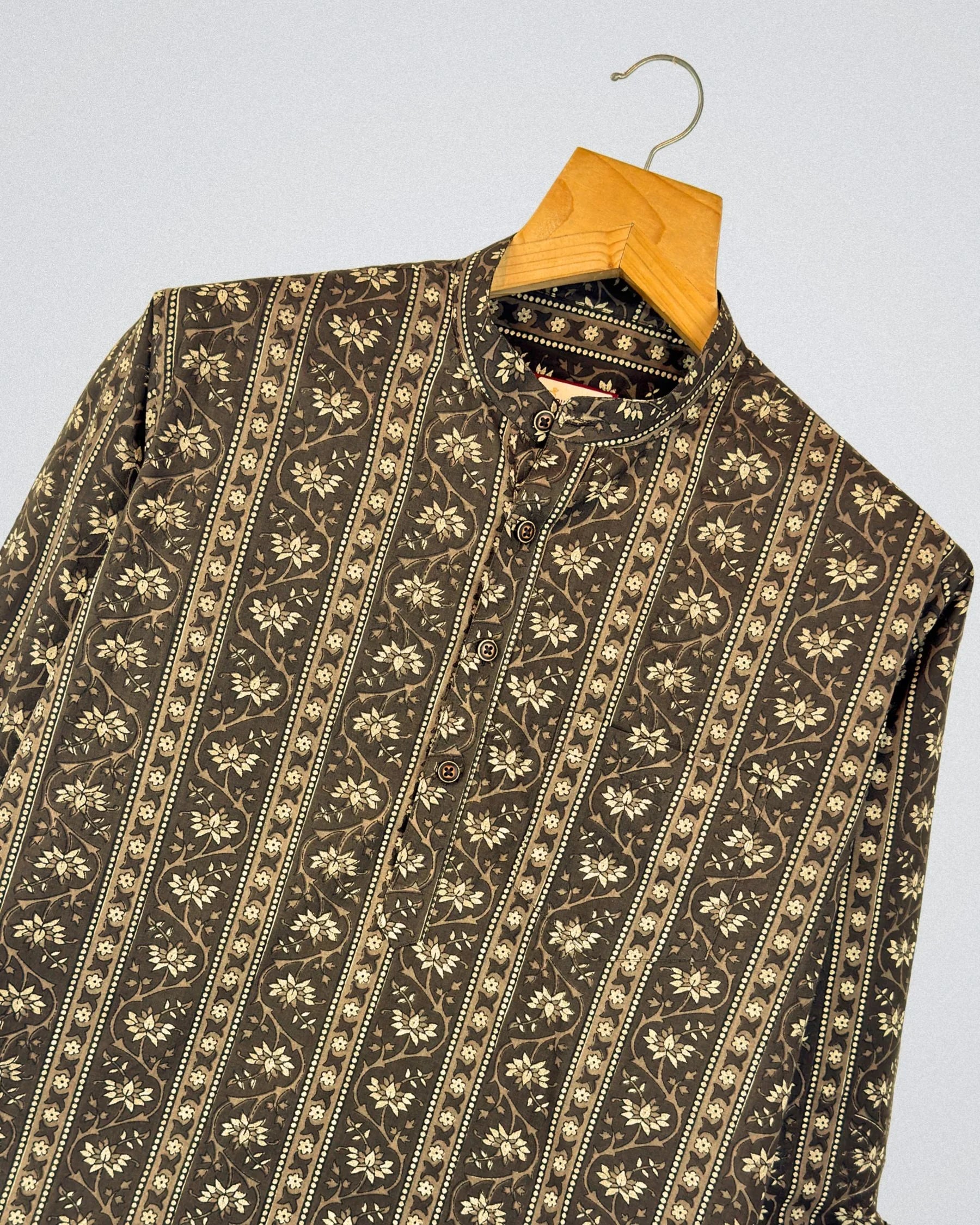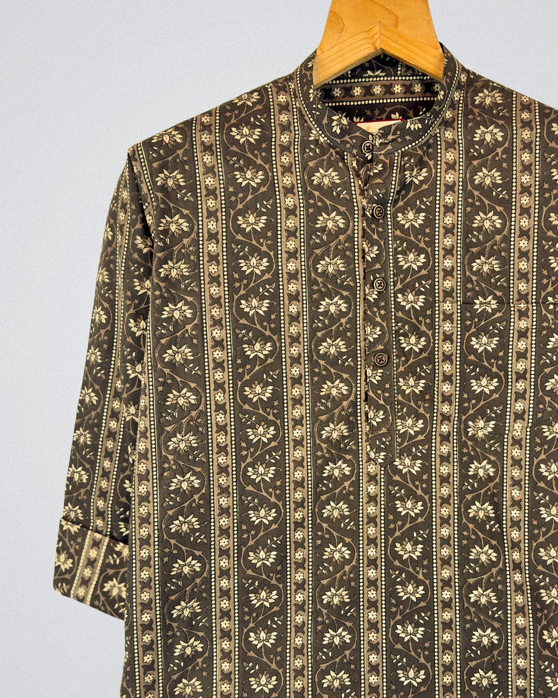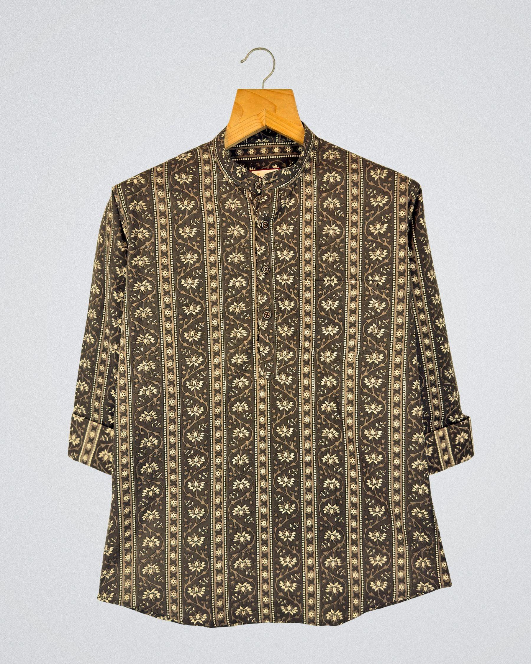 Step into comfort with Floral Harmony by Jaipuri Crown – a chic Short Kurta featuring a beautiful floral print in earthy tones against a rich brown background. Made from 100% Sanganeri cotton, this Kurta is not only stylish but also offers breathability and softness for all-day wear. Perfect for festive occasions or casual gatherings, it seamlessly blends tradition with modern flair.