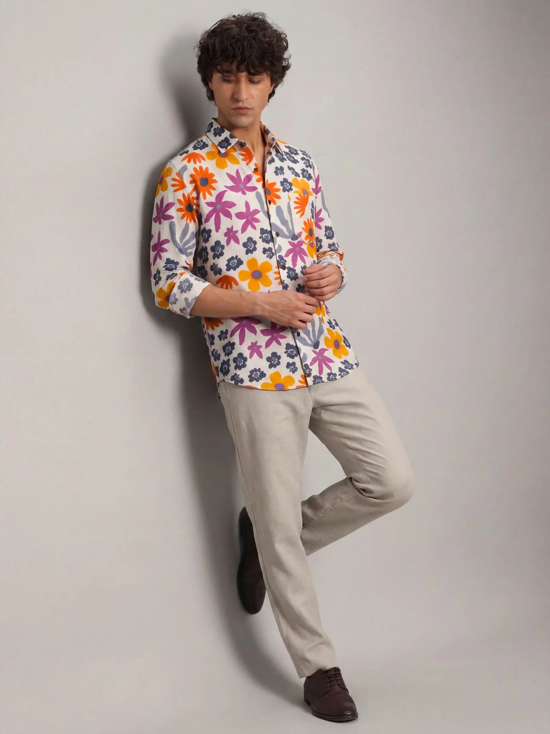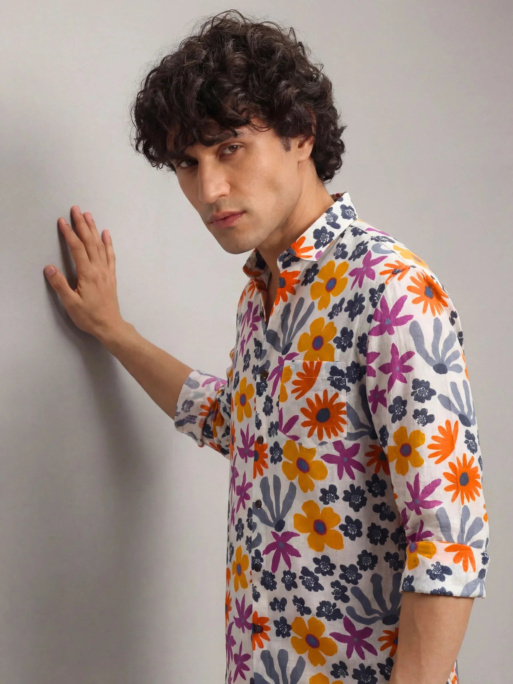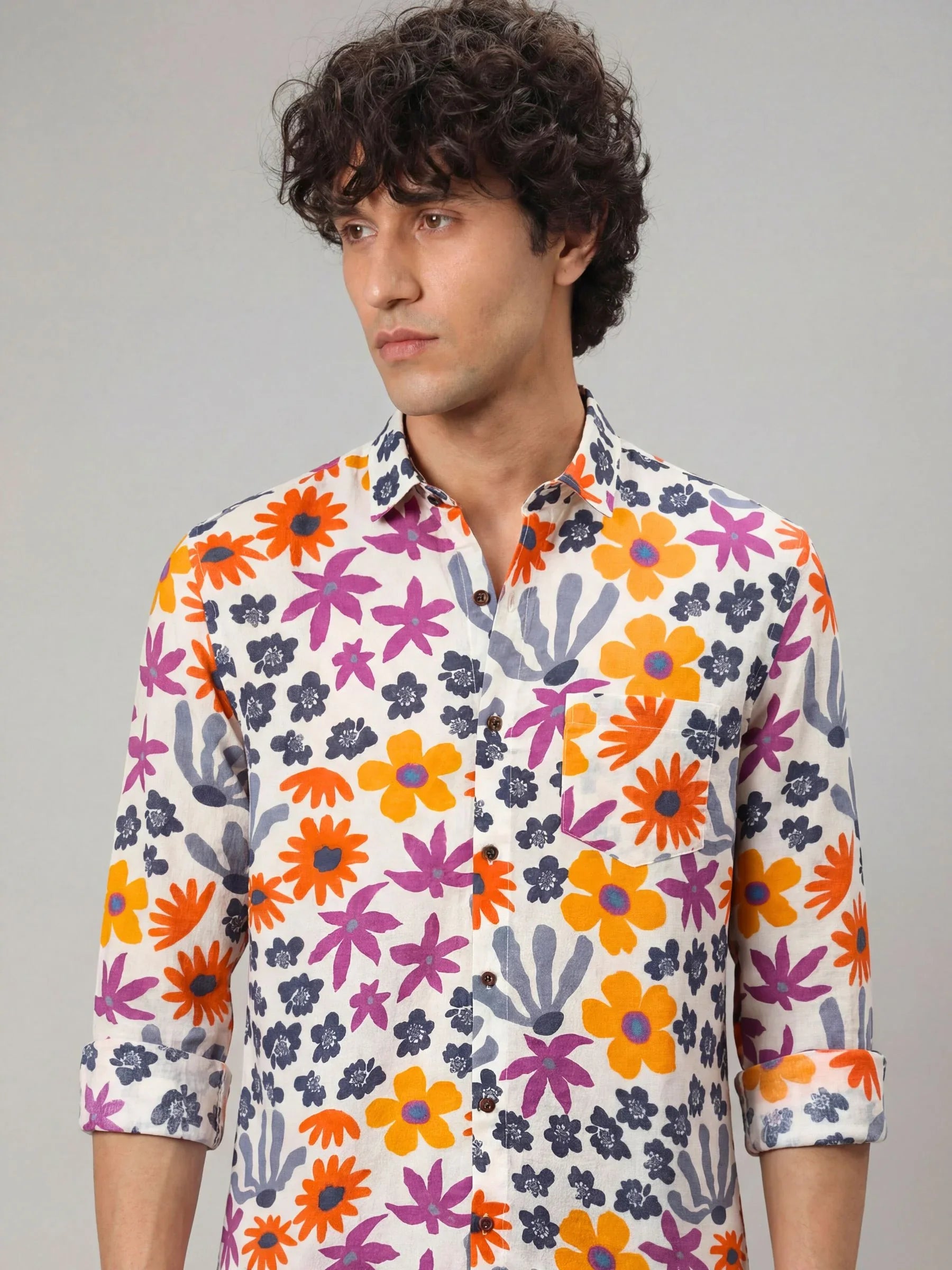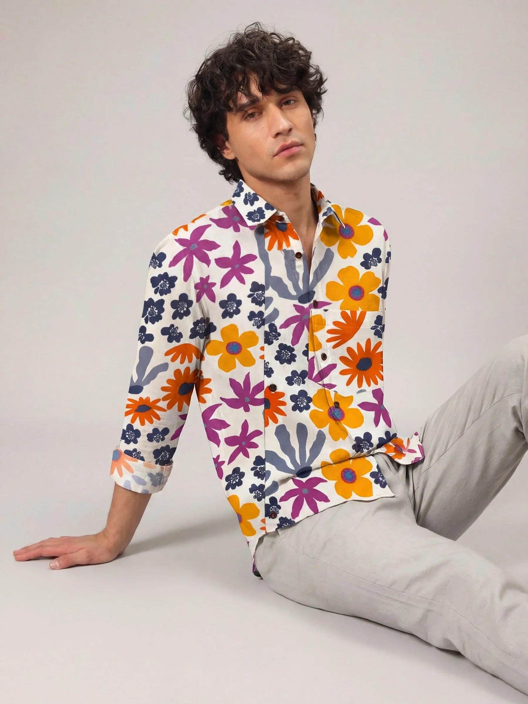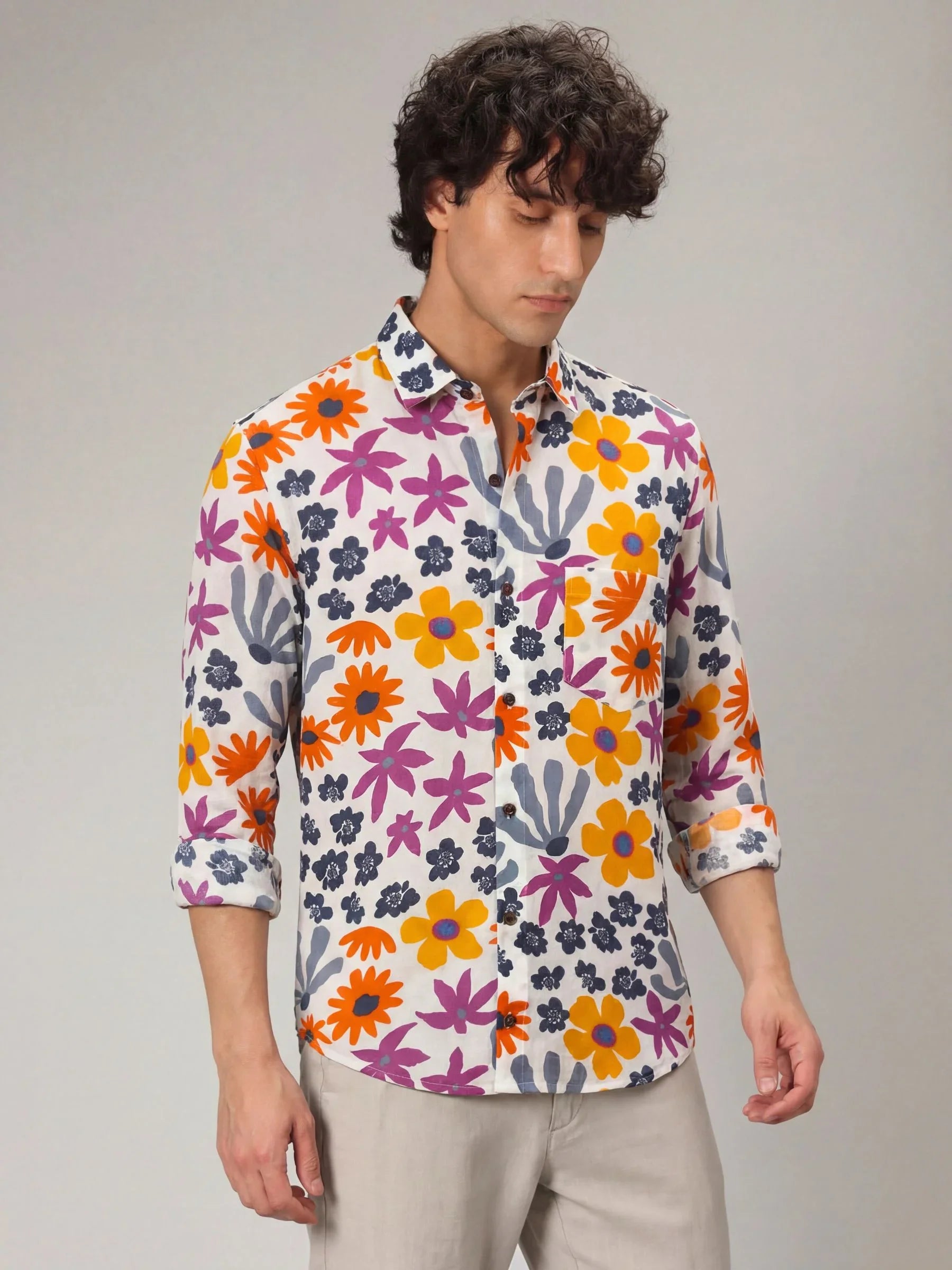 Step into a world of color with Floral Breeze by Jaipuri Crown – a stunning Full sleeve cotton shirt featuring a playful floral print in vibrant blue, orange, and pink hues against a light backdrop. Made from 100% Sanganeri cotton, this shirt ensures a soft, breathable feel, perfect for casual outings, get-togethers, or laid-back weekends.