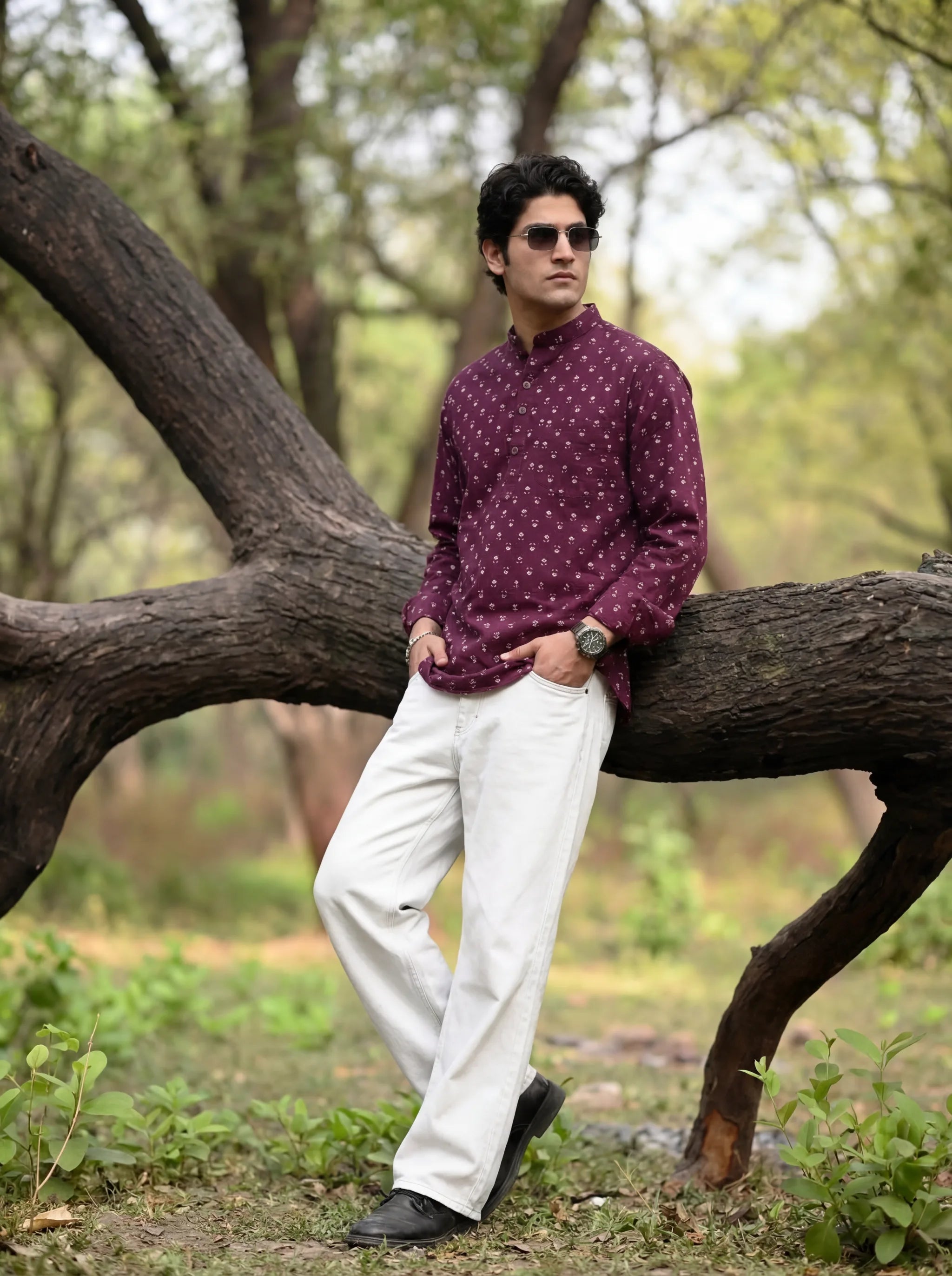 Step into style with Floral Charm by Jaipuri Crown – a sophisticated Short Kurta featuring an intricate floral print in deep purple. Designed with 100% Sanganeri cotton, this kurta ensures a soft and breathable fit, making it ideal for casual gatherings, family events, or festive occasions.