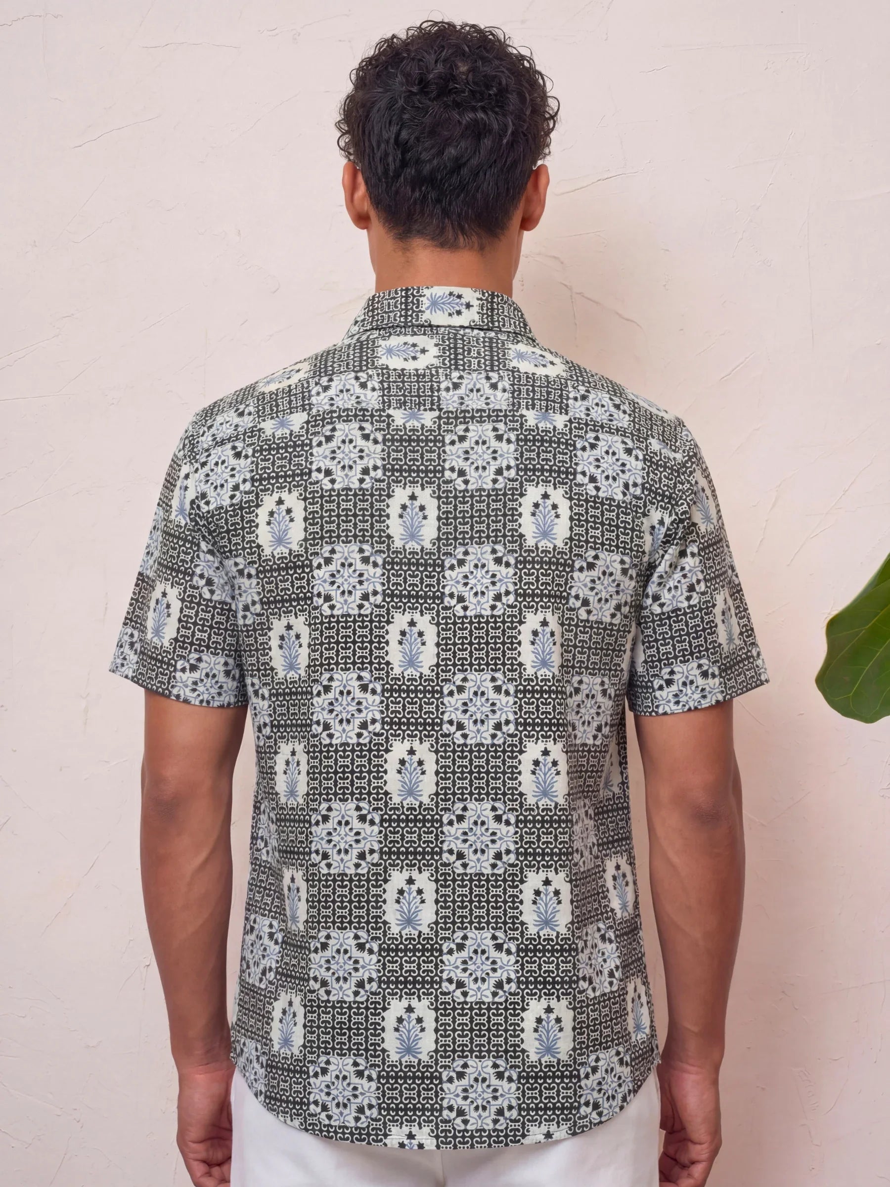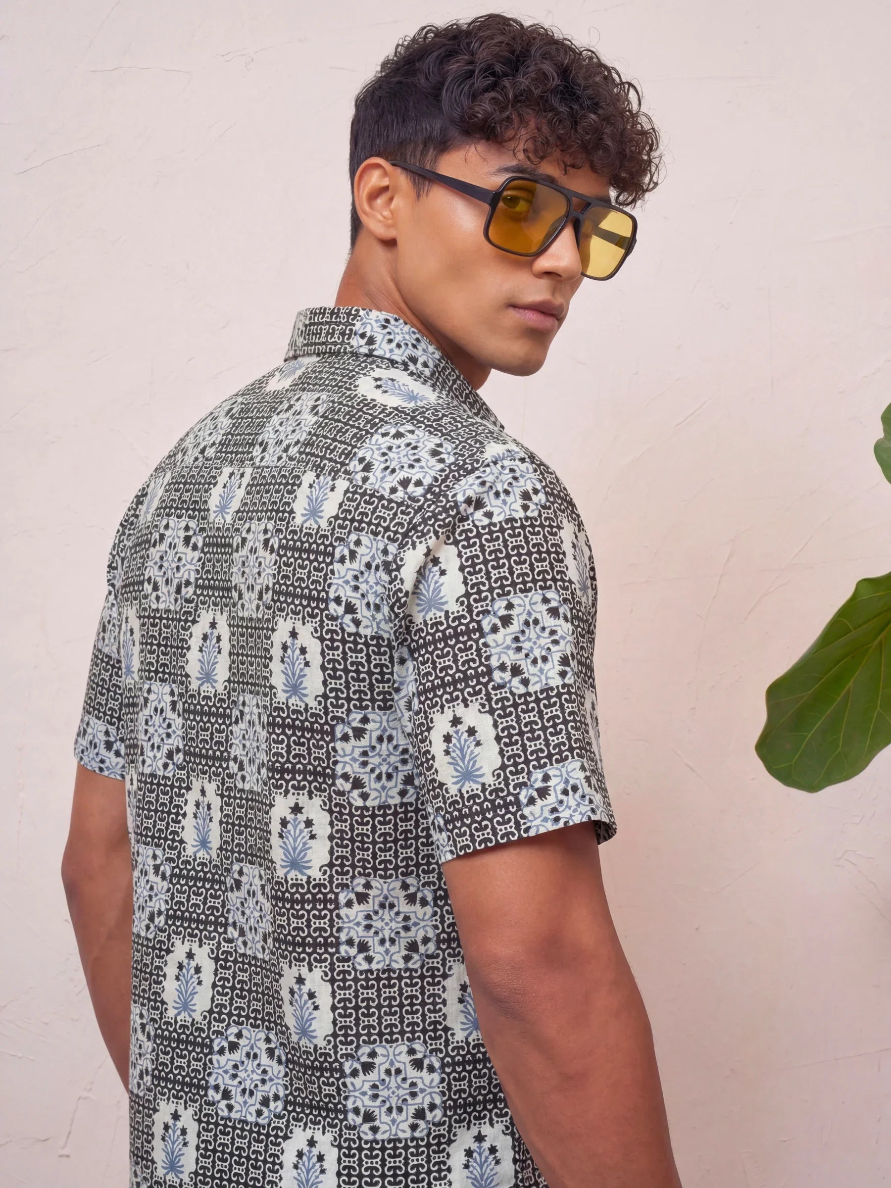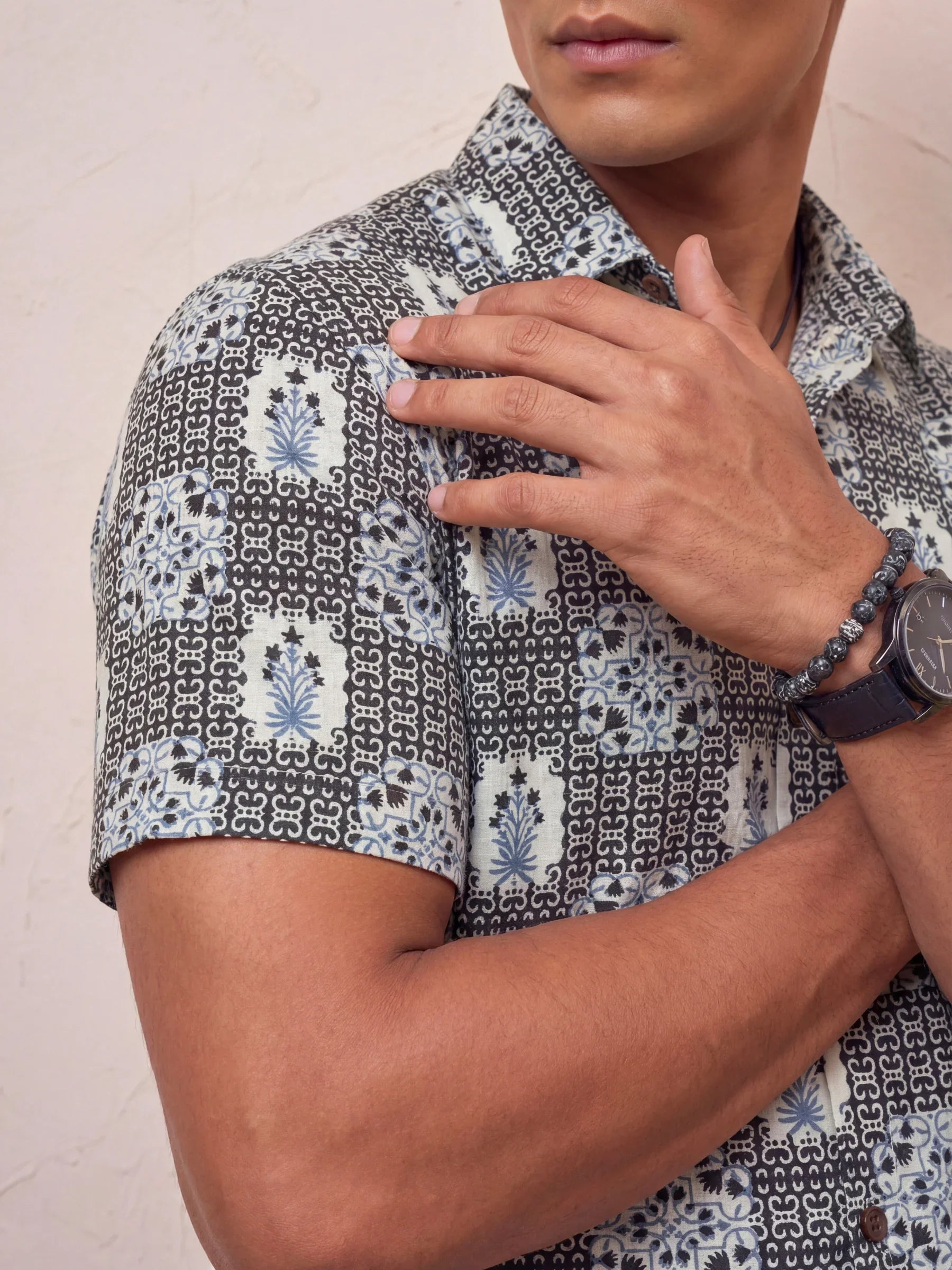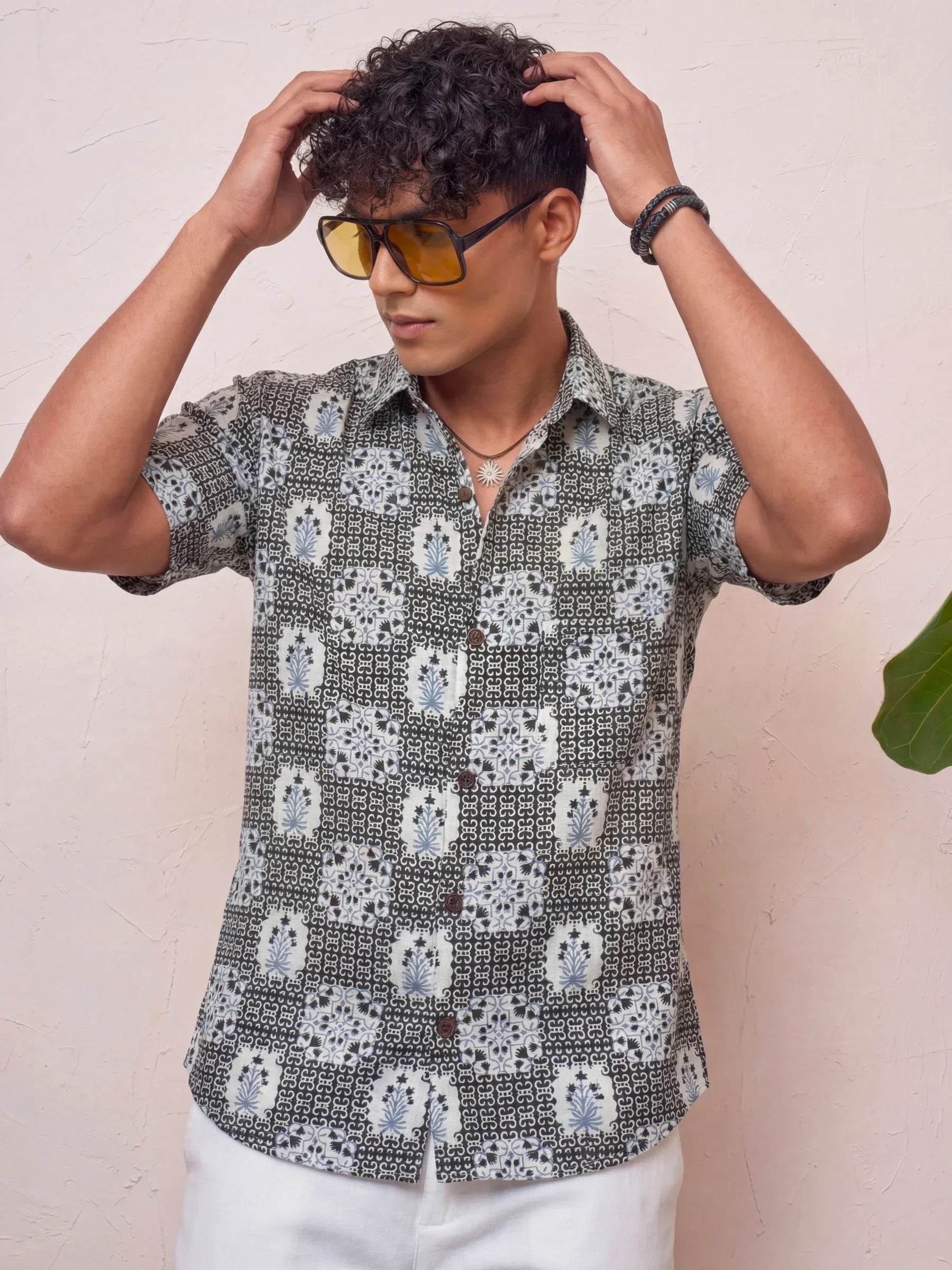 Step up your style game with Botanical Bliss by Jaipuri Crown – a chic half sleeve cotton shirt featuring an eye-catching floral pattern in soothing shades of blue on a classic black base. Crafted from 100% breathable cotton, this shirt ensures comfort all day long, making it the ideal choice for casual outings, brunches, or weekend adventures.