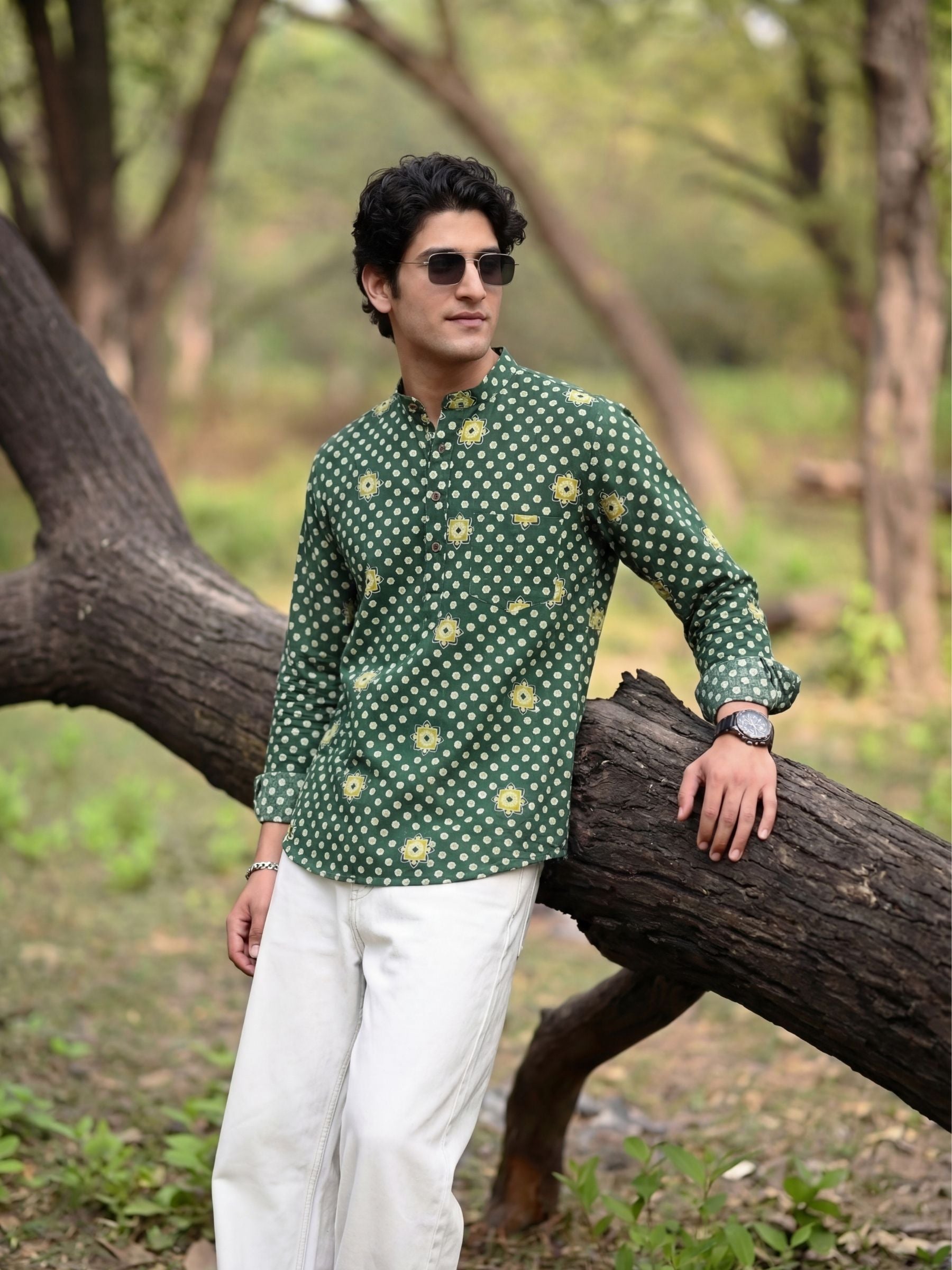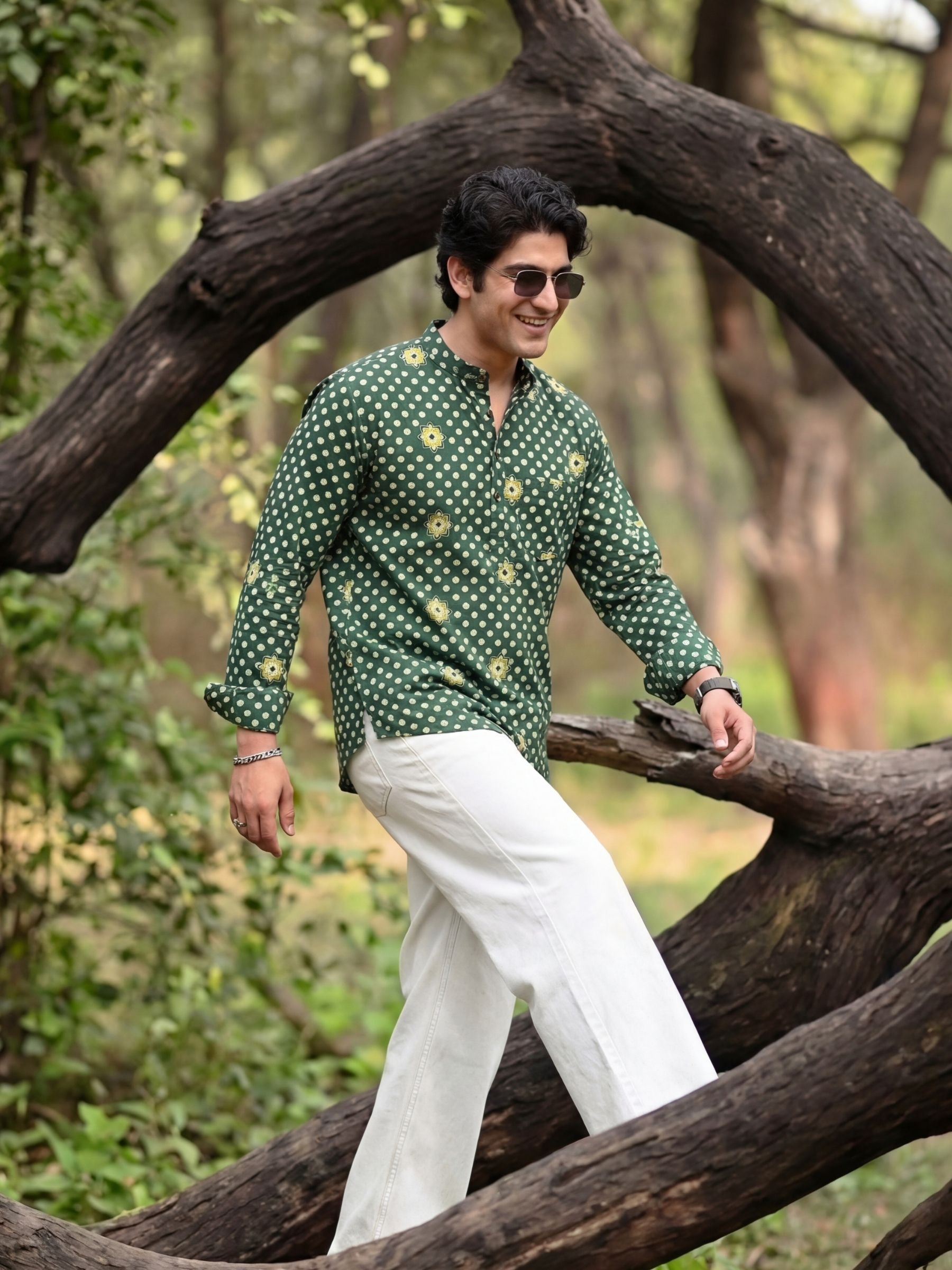 Step into style with Floral Fusion by Jaipuri Crown – a trendy Short Kurta featuring a stunning floral print in green and cream. Made from 100% Sanganeri cotton, this Kurta ensures a soft and breathable fit, making it an ideal choice for casual gatherings, festive occasions, or everyday wear.