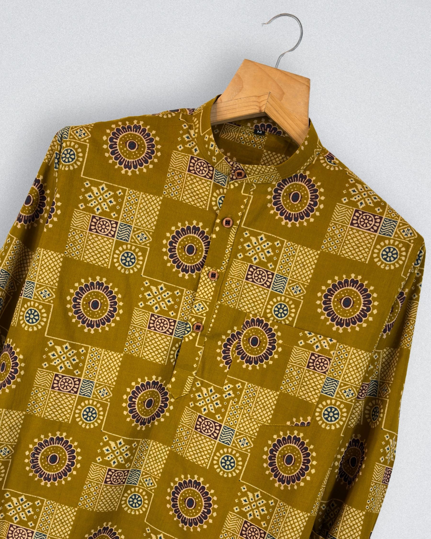 Step into a realm of vibrant style with Floral Fusion by Jaipuri Crown – a stunning Short Kurta featuring an intricate floral print in rich mustard and deep purple tones. Made from 100% breathable cotton, this Kurta ensures comfort while keeping you stylish, perfect for festive occasions or casual gatherings.