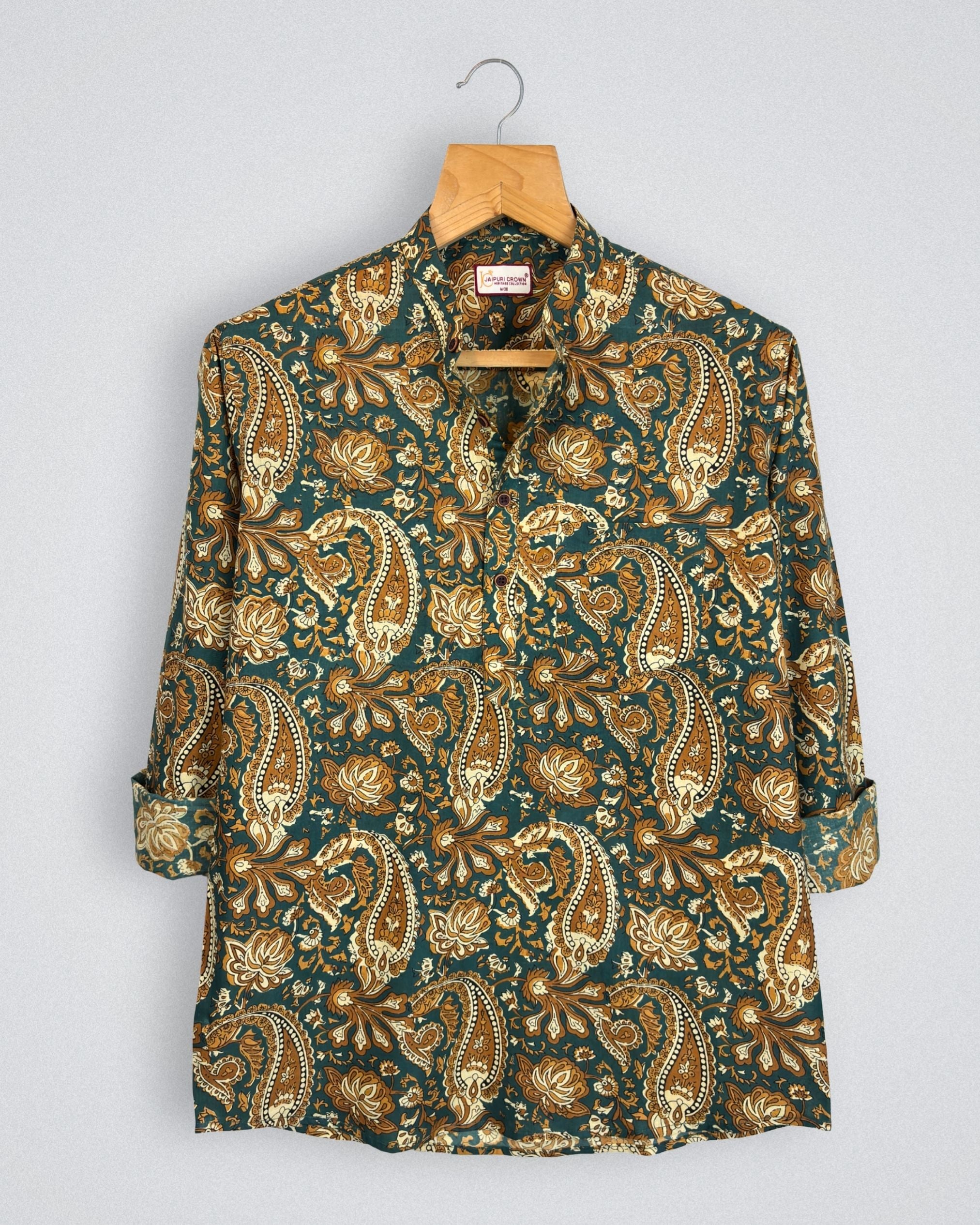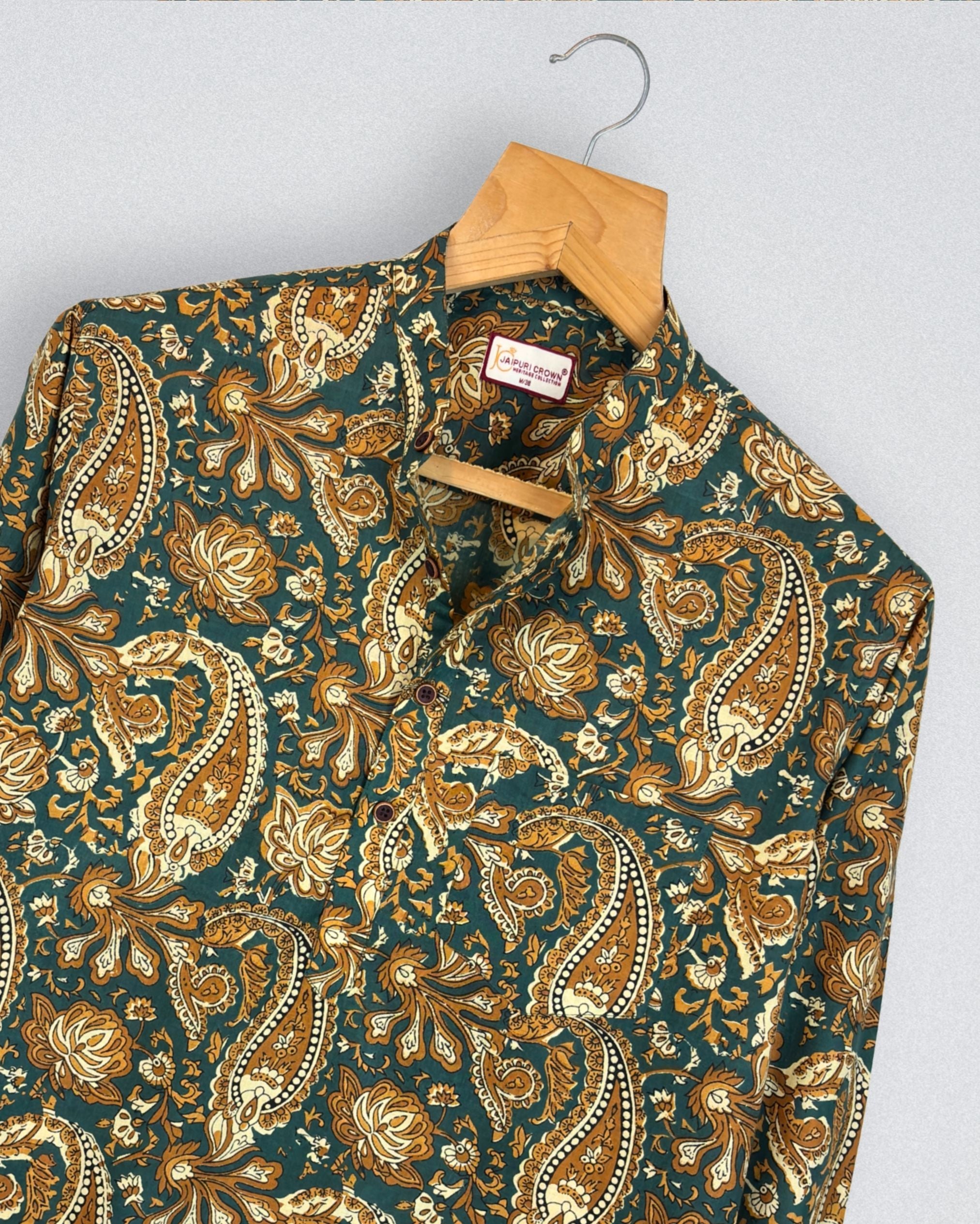 Step into a world of elegance with Paisley Charm by Jaipuri Crown – a stunning Short Kurta featuring an intricate paisley design in rich greens and golds. Made from 100% Sanganeri cotton, this Kurta ensures a soft, breathable fit that is perfect for festive occasions, family gatherings, or casual outings with friends.