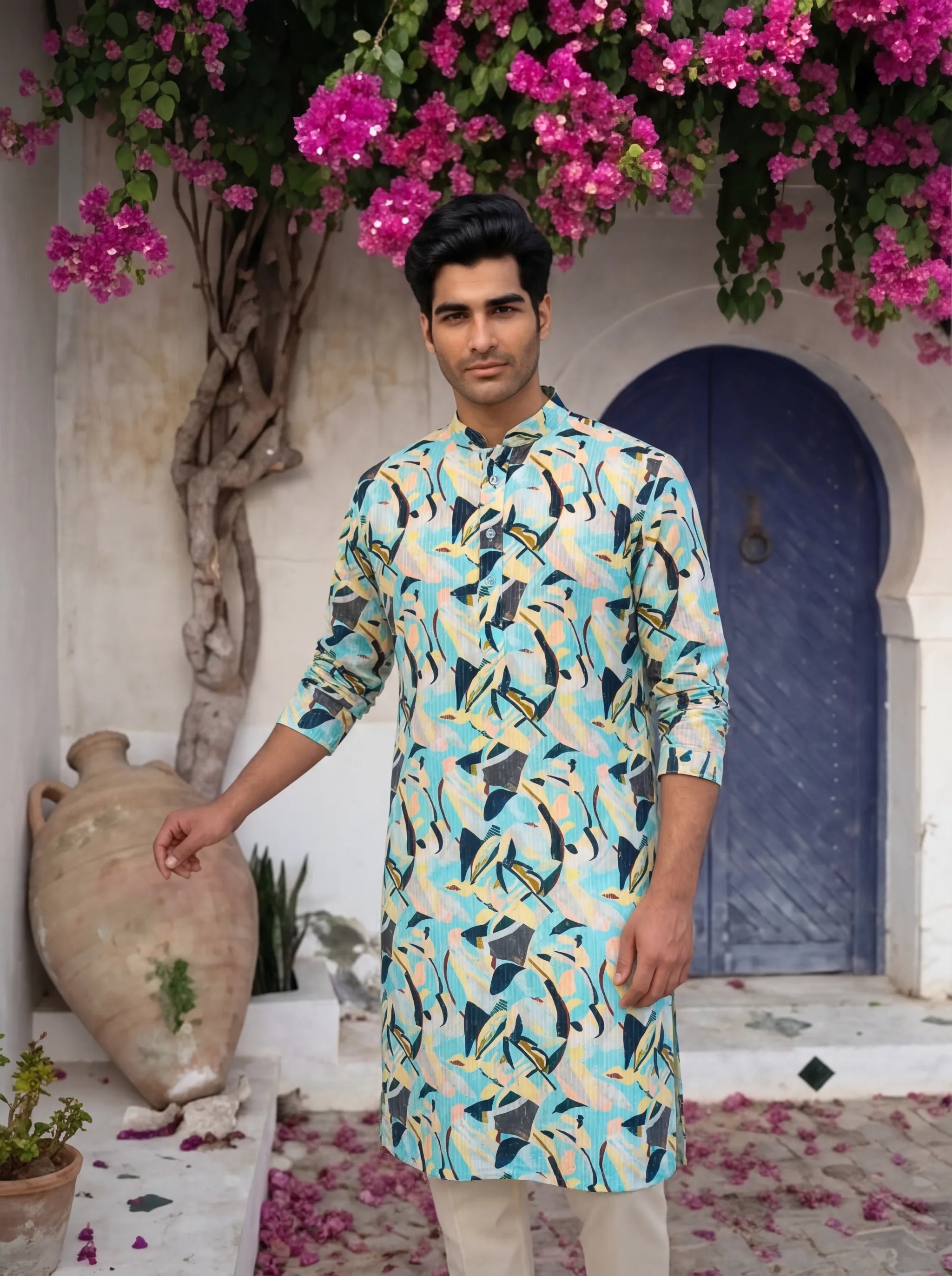 Exude confidence and sophistication with the Indigo Raas, a wardrobe staple that blends elegance with versatility. Perfect for every occasion, this kurta is the ultimate expression of style and tradition.