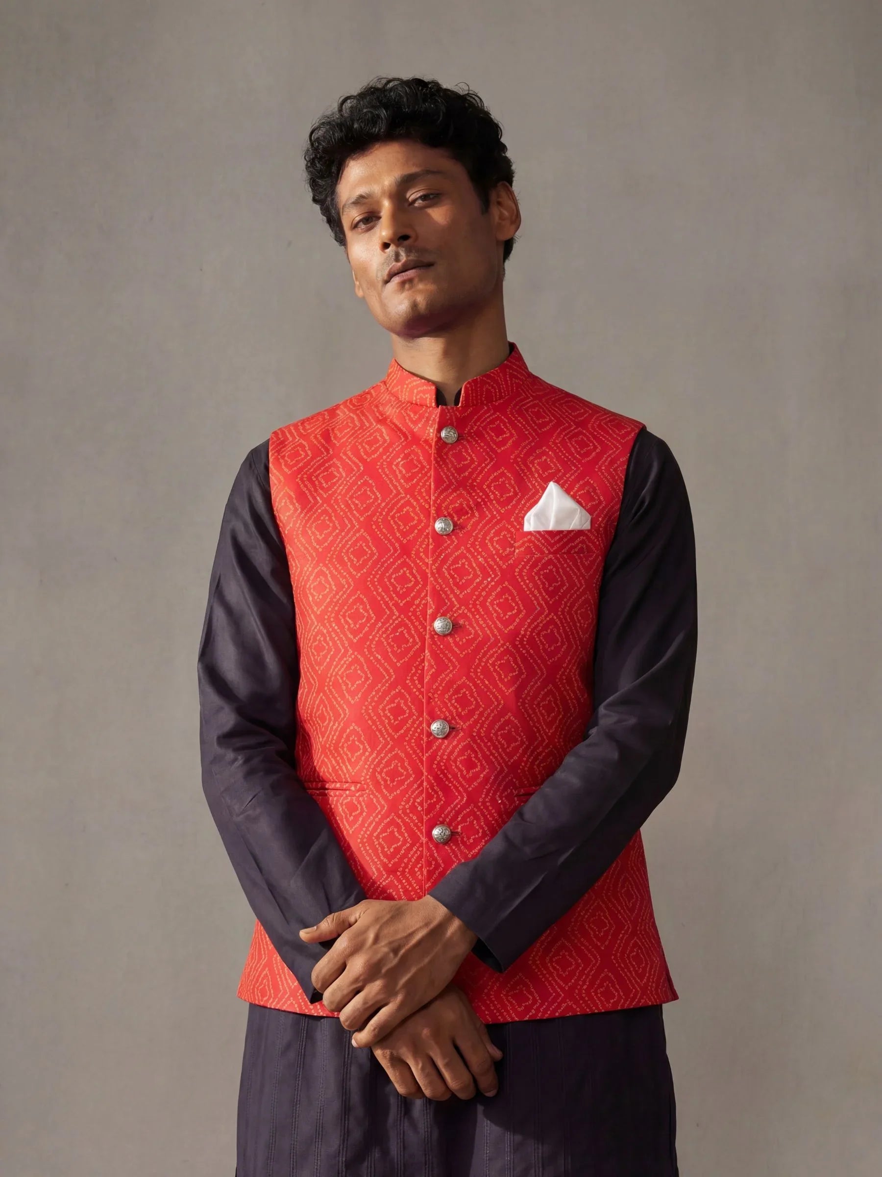 Jaipuri Bandhej Modi Jacket"Embody the purity and grace of the lotus flower with garments adorned in delicate Lotus Legacy textile prints."