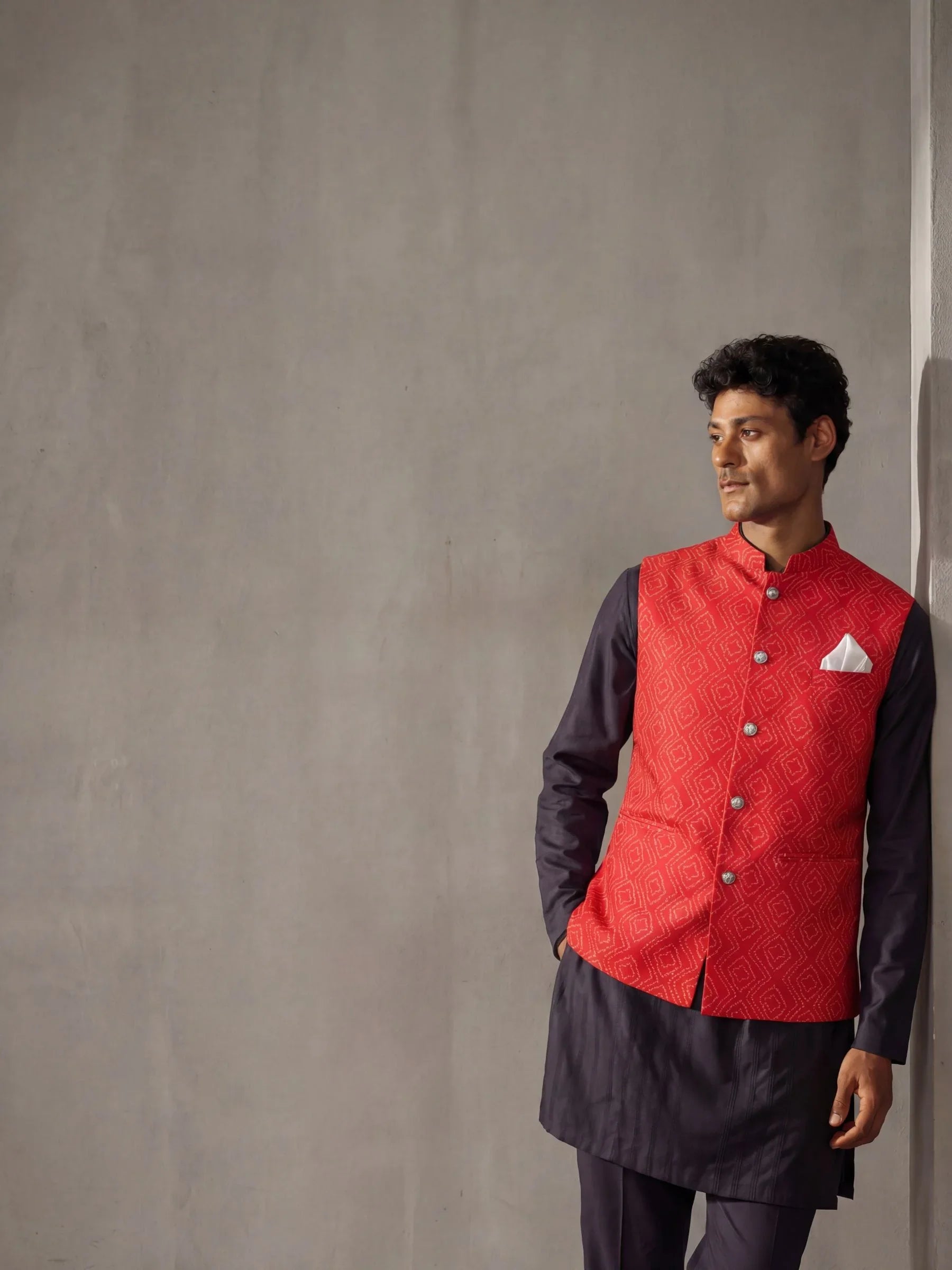 Our Modi Jacket boasts a traditional print that captures the essence of rich heritage and cultural vibrancy. 🌟 This timeless design infuses your attire with elegance, perfect for celebrating cultural occasions with flair.
