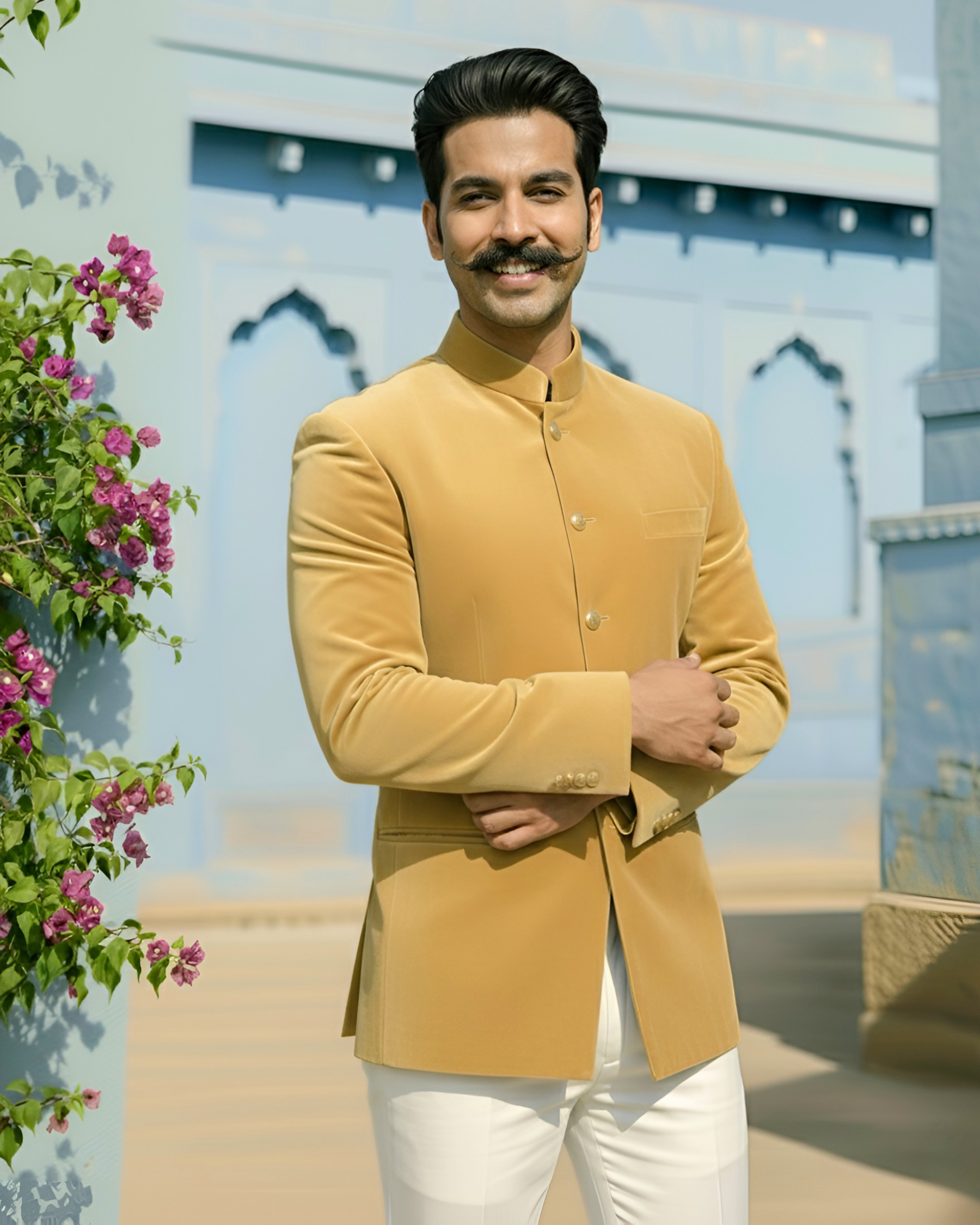 Made from premium velvet fabric, this Bandhgala showcases a luxurious texture that enhances its royal appeal. The intricate craftsmanship uses traditional tailoring techniques to ensure durability and strength, while the adds a touch of comfort with its smooth, lightweight, and breathable quality. A true timeless classic, this piece belongs in every sophisticated wardrobe.