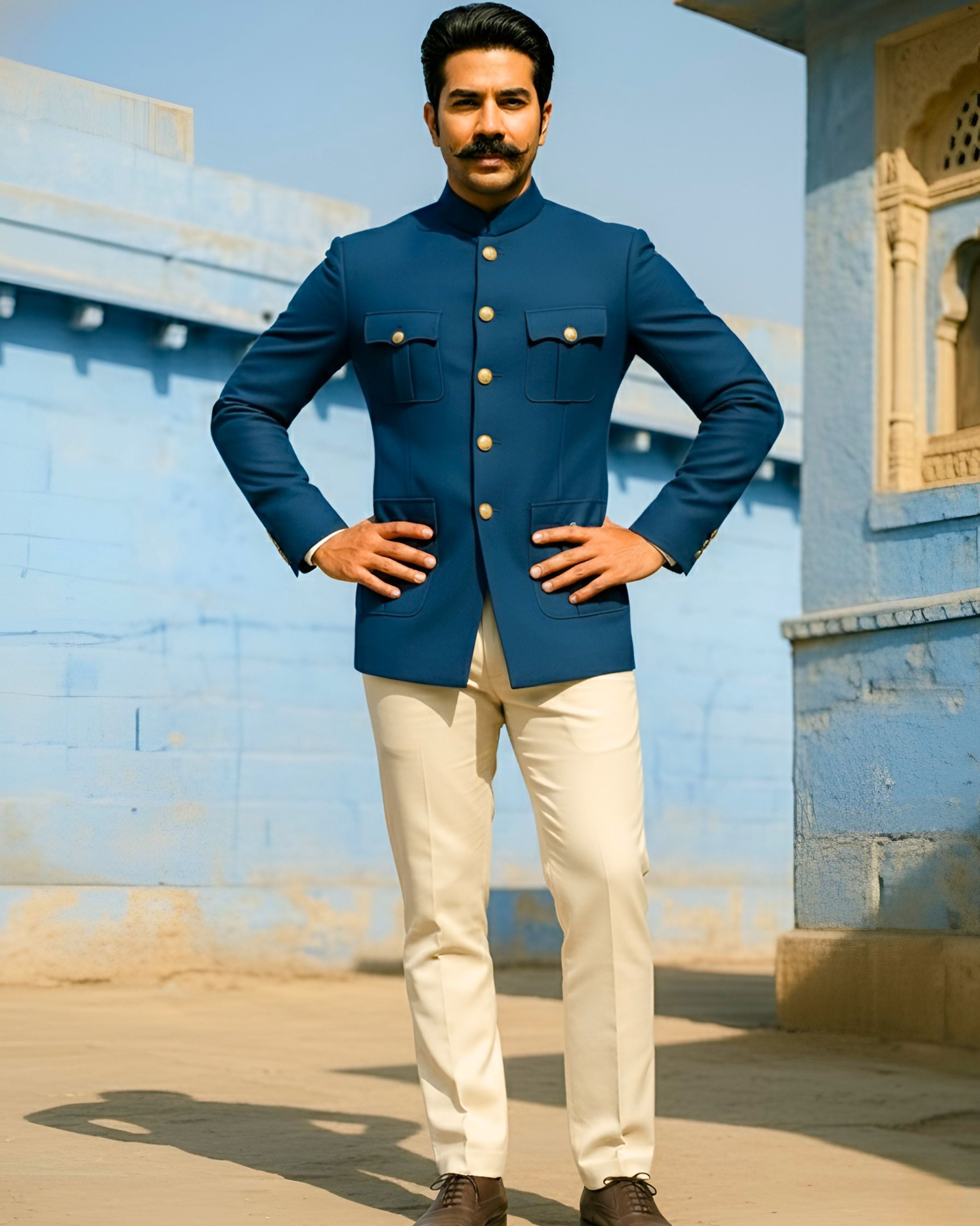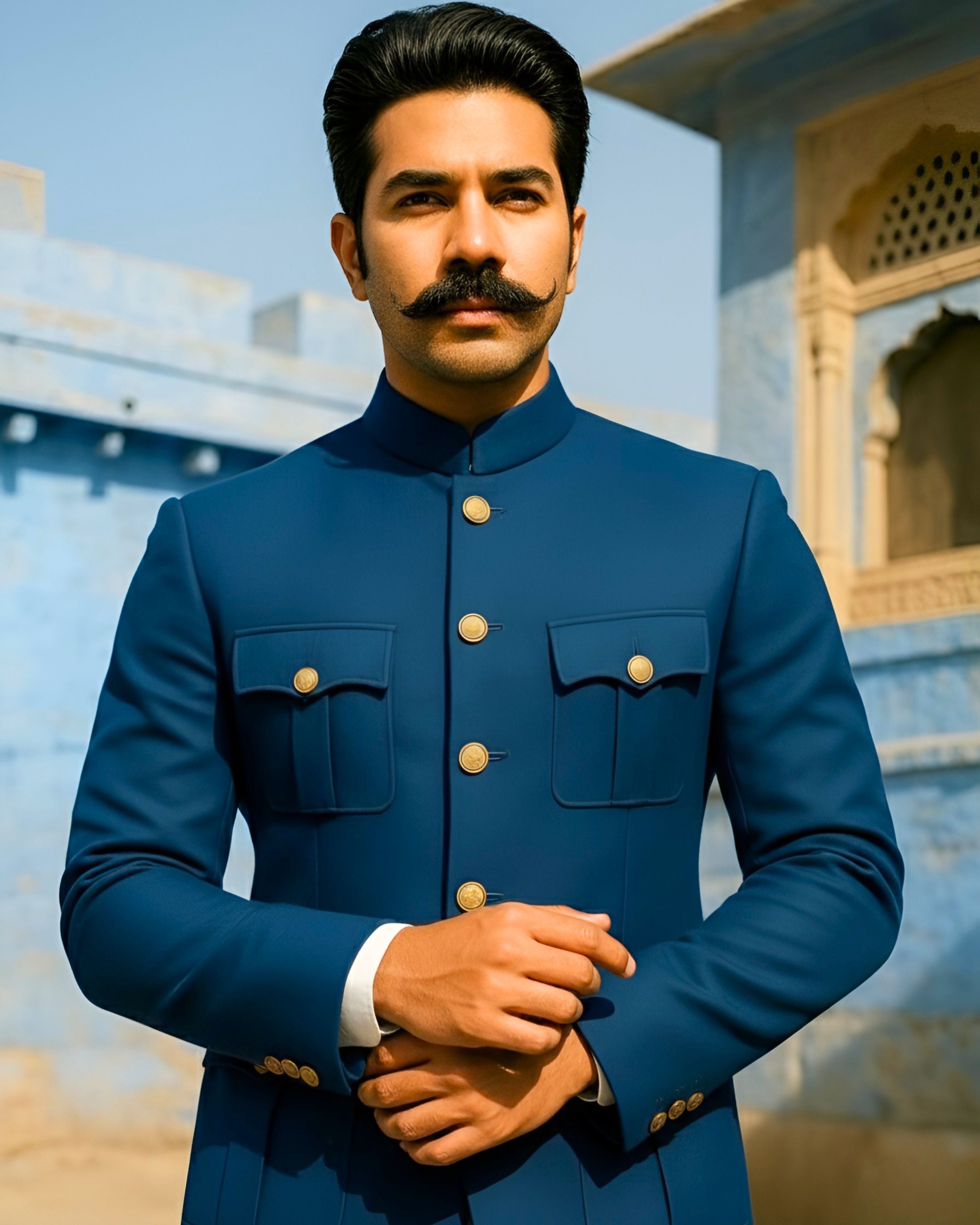 Made from premium Crepe fabric, this Bandhgala showcases a luxurious texture that enhances its royal appeal. The intricate craftsmanship uses traditional tailoring techniques to ensure durability and strength, while the adds a touch of comfort with its smooth, lightweight, and breathable quality. A true timeless classic, this piece belongs in every sophisticated wardrobe.