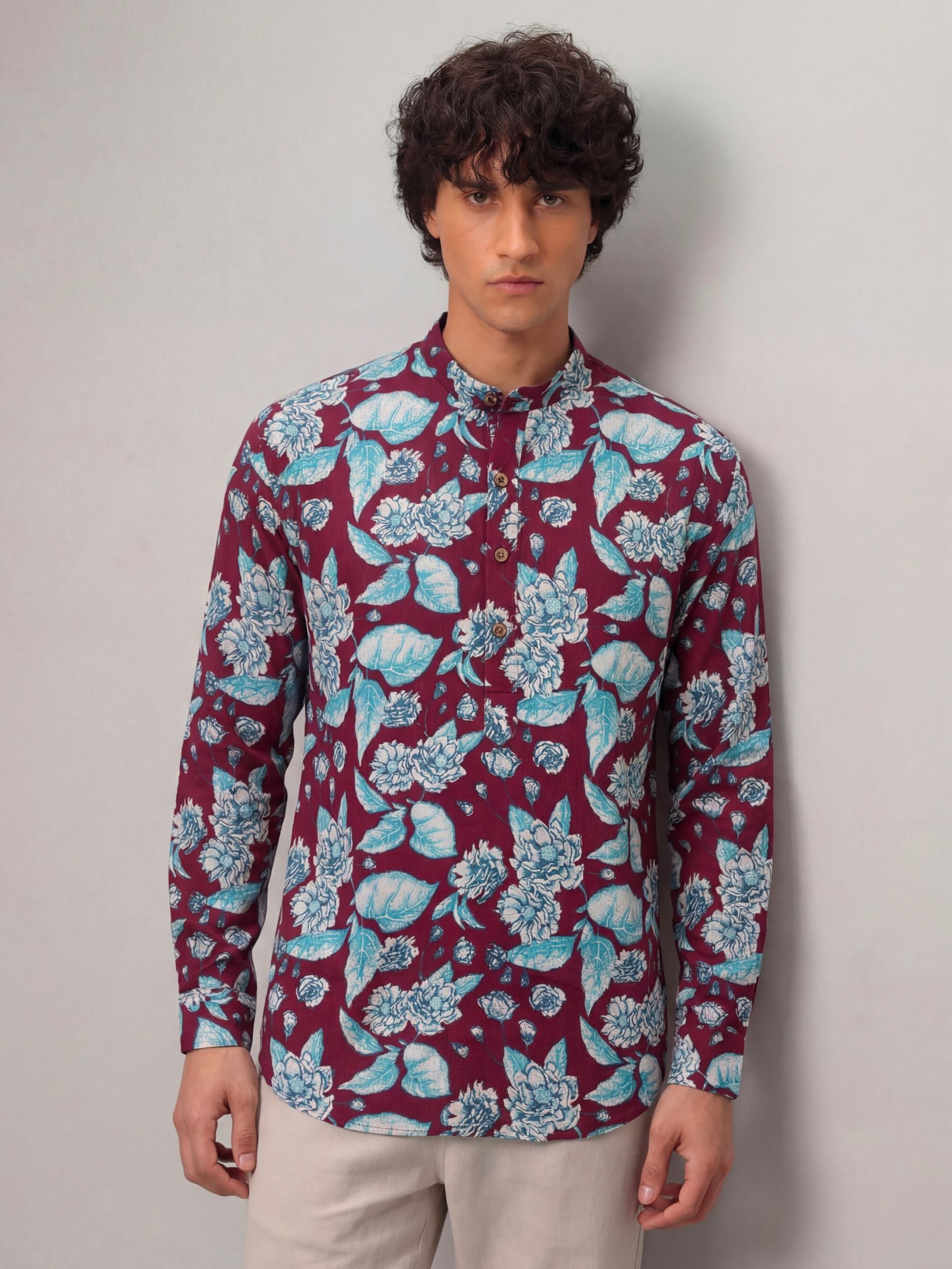 Step out in style with Floral Charm by Jaipuri Crown – a stunning Short Kurta featuring an eye-catching floral print in vibrant blue against a rich maroon background. Made from 100% Sanganeri cotton, this kurta not only ensures comfort but also adds a splash of color to your wardrobe. Perfect for festive occasions, casual gatherings, or laid-back weekends, it combines tradition with contemporary flair.