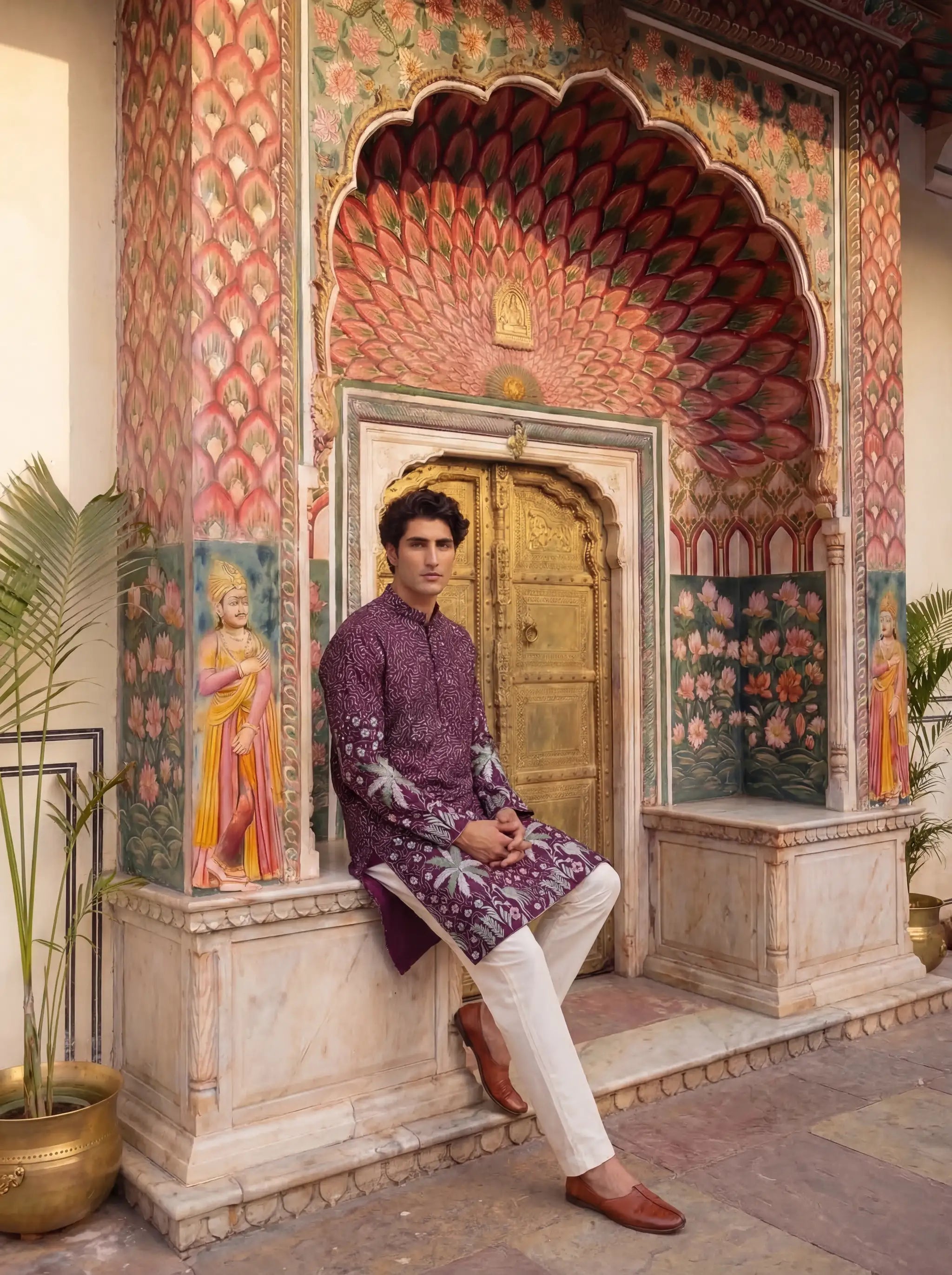 Step into regal elegance with our Men’s Heavy Designer Long Kurta by Jaipuri Crown.