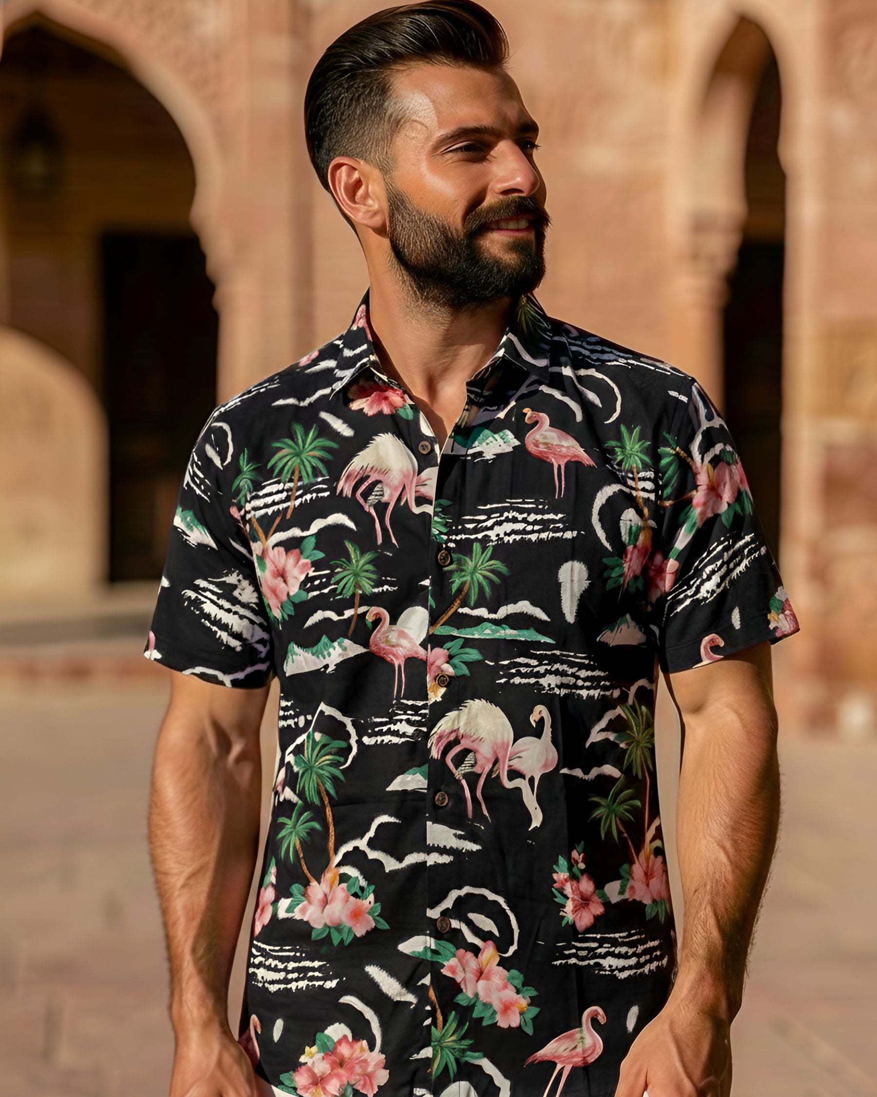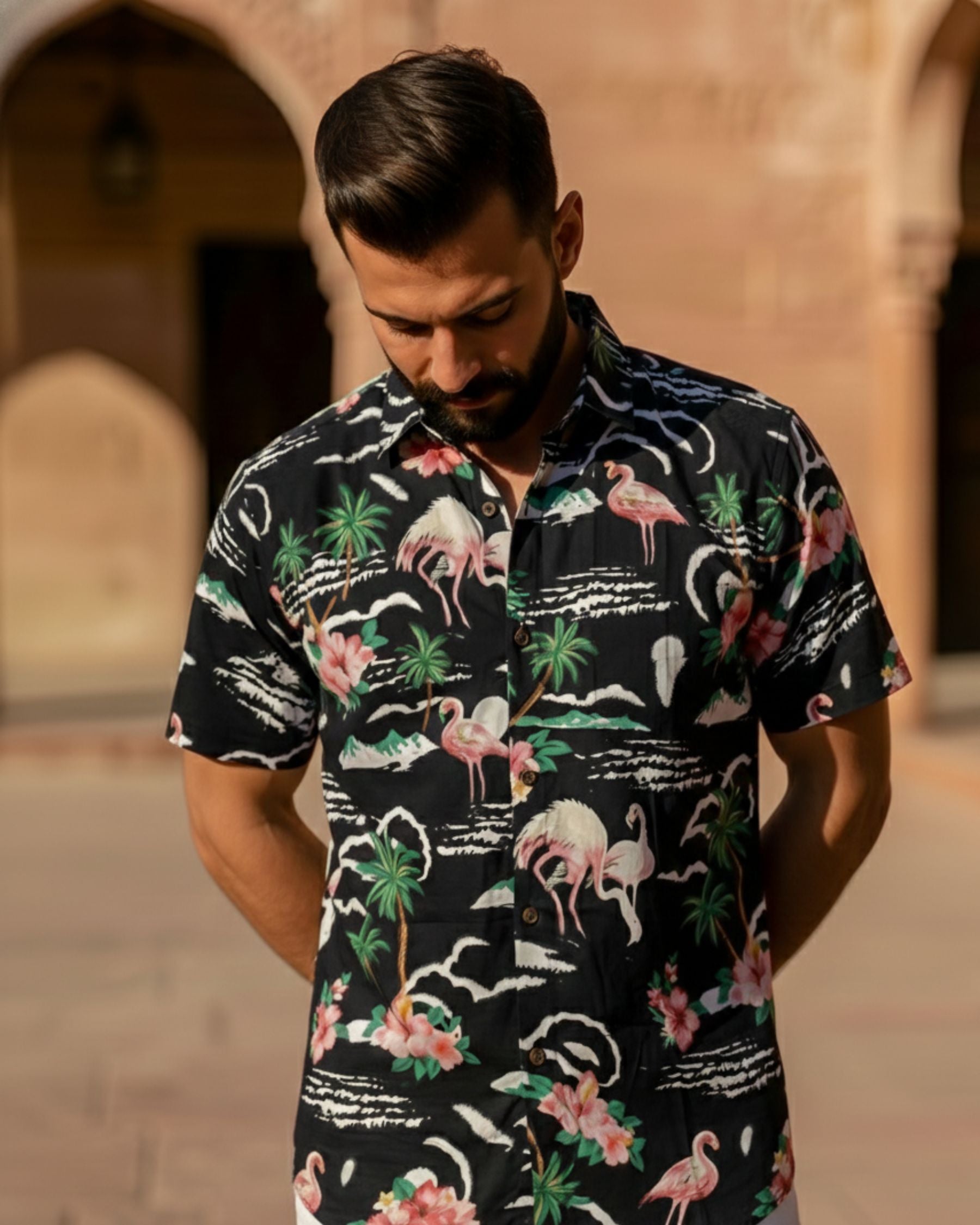 Style Note: Our Midnight Bloom Shirt, adorned with delicate floral patterns against a dark canvas, captures the essence of elegance and nocturnal beauty. With half sleeves and a relaxed fit, it’s the perfect choice for evening outings, celebrations, or adding a refined touch to your wardrobe. 🌿🌺🌌