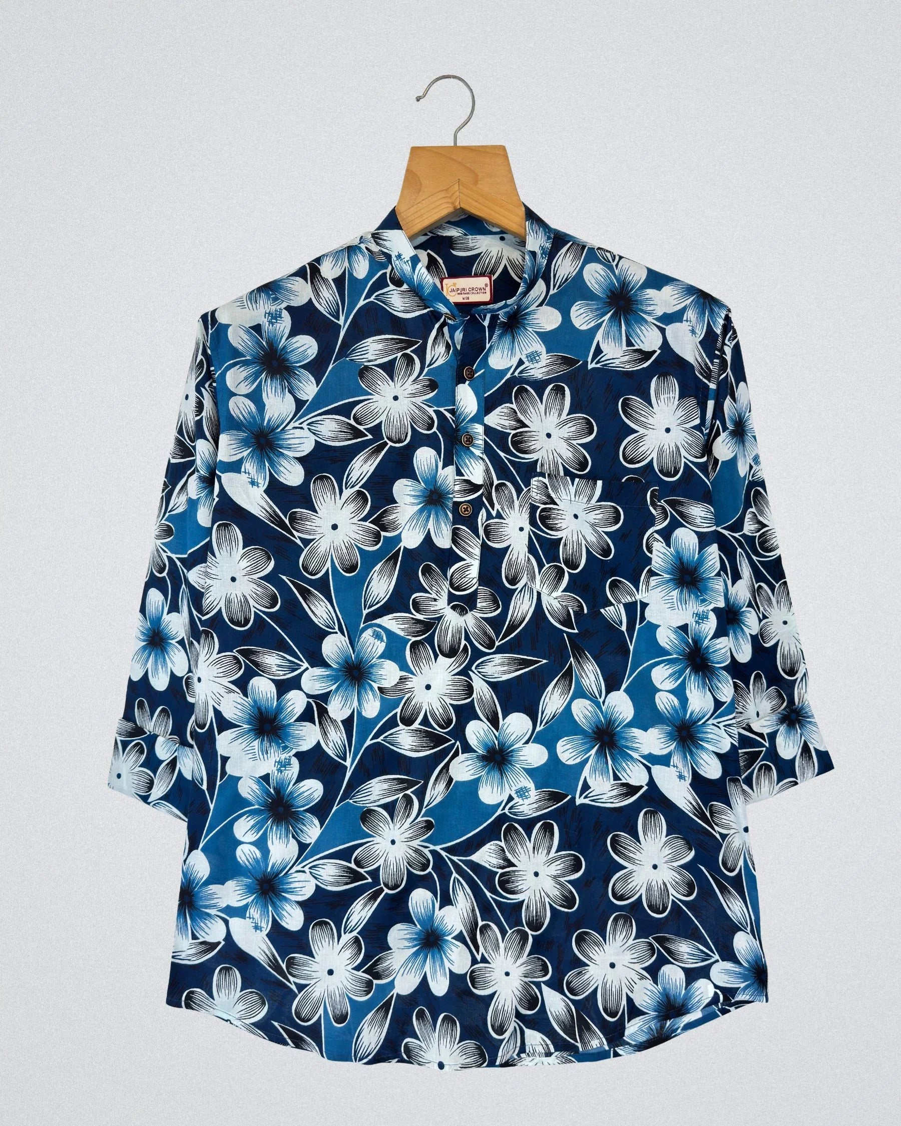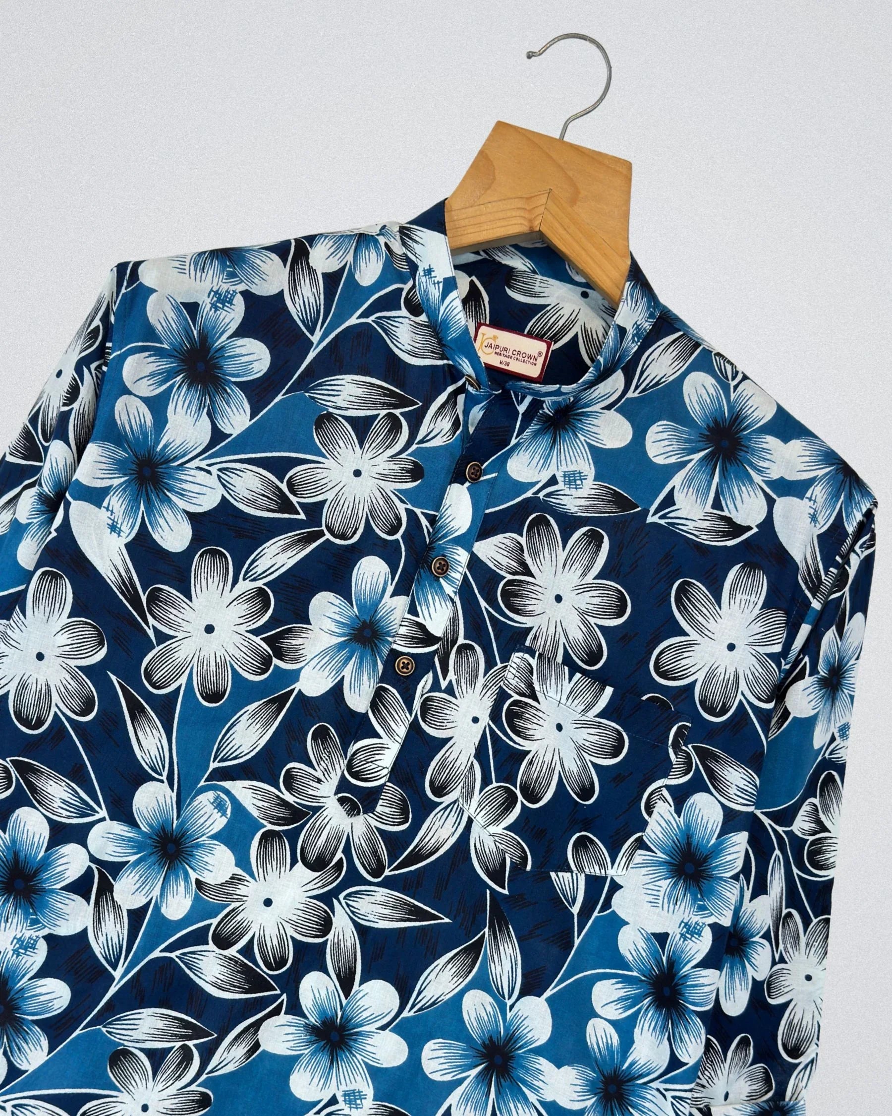 Step out in style with Floral Symphony by Jaipuri Crown – a charming Short Kurta featuring a stunning floral print in white and black against a deep navy backdrop. Made from 100% Sanganeri cotton, this Kurta ensures a soft, breathable fit, making it ideal for casual gatherings, festive occasions, or laid-back weekends.