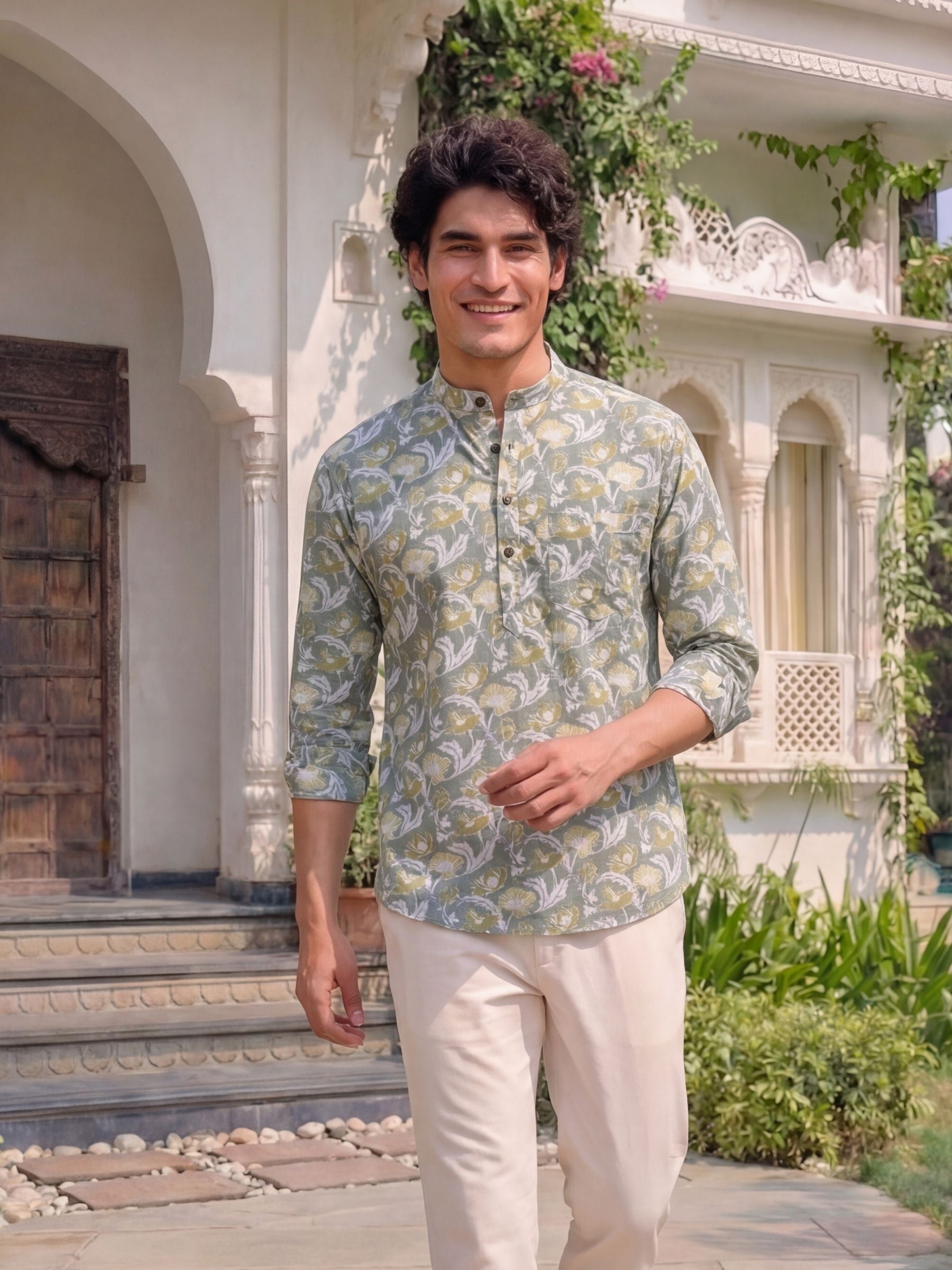 Step into the world of vibrant fashion with Floral Harmony by Jaipuri Crown – a captivating Short Kurta featuring a stunning floral print in shades of green and cream. Made from 100% Sanganeri cotton, this Kurta is not only soft and breathable but also perfect for casual outings, festivals, or any relaxed occasion.