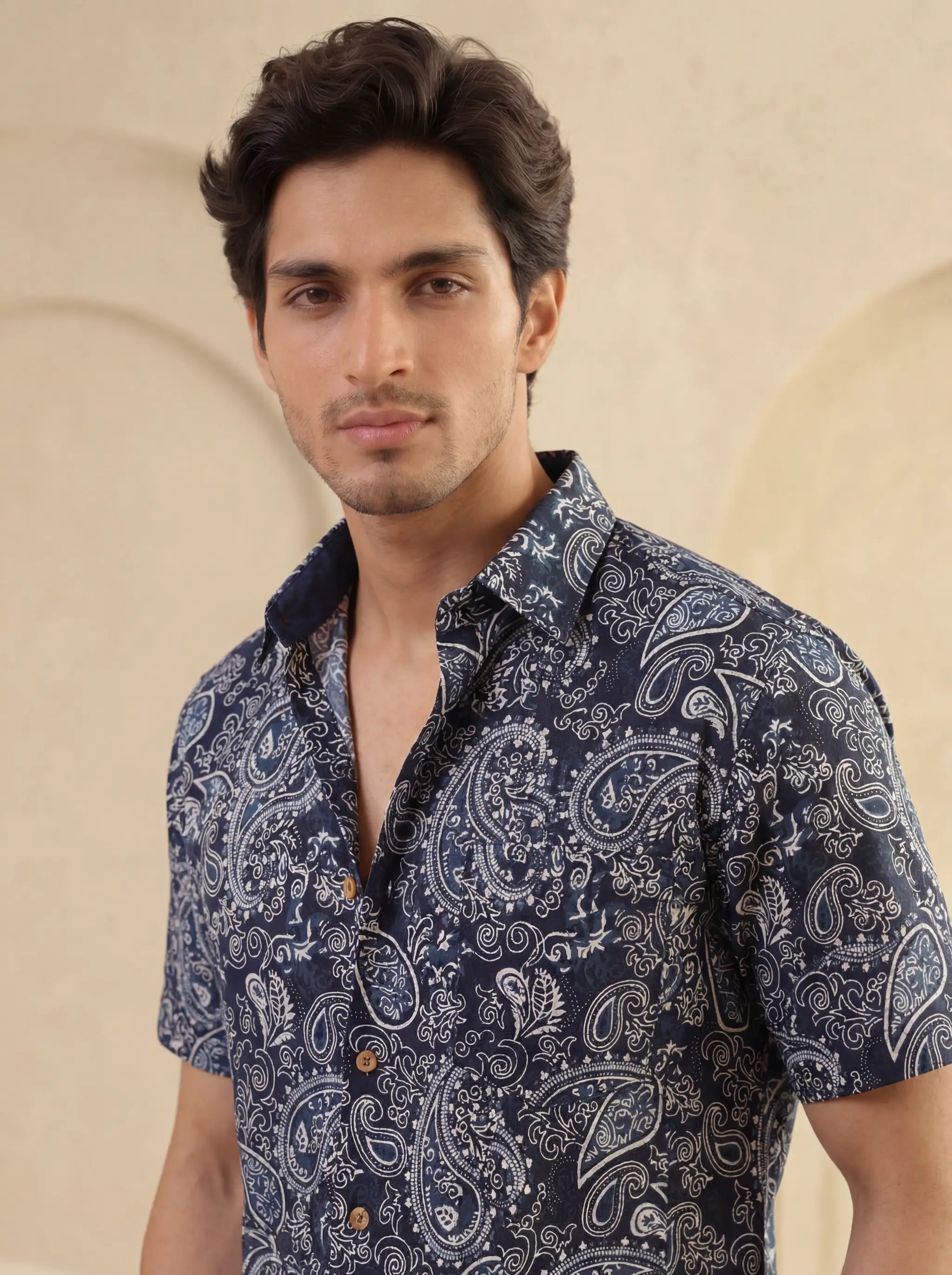 Elevate your style with our Navy Elegance Half Sleeve Shirt! π Crafted from premium Sanganeri cotton, this shirt ensures comfort and breathability all day long. Perfect for casual outings or festive occasions, its intricate paisley print adds a touch of sophistication to any wardrobe. π¨