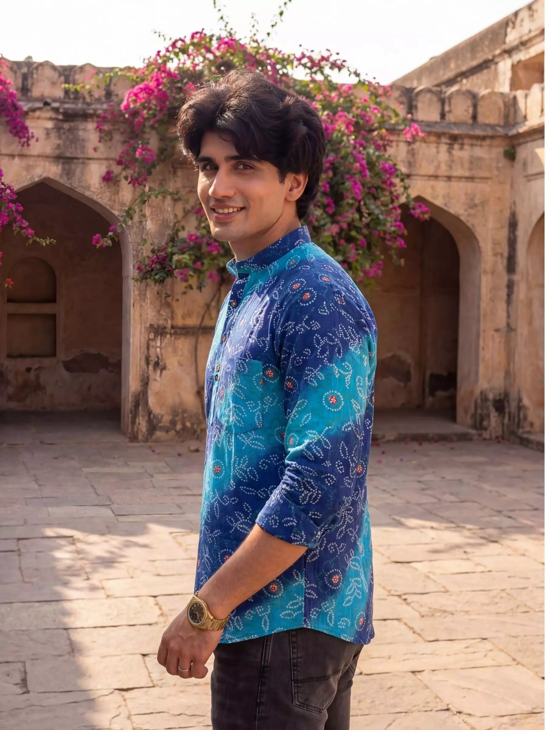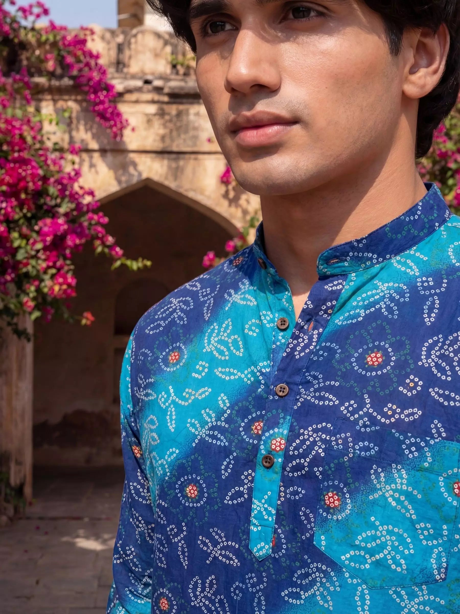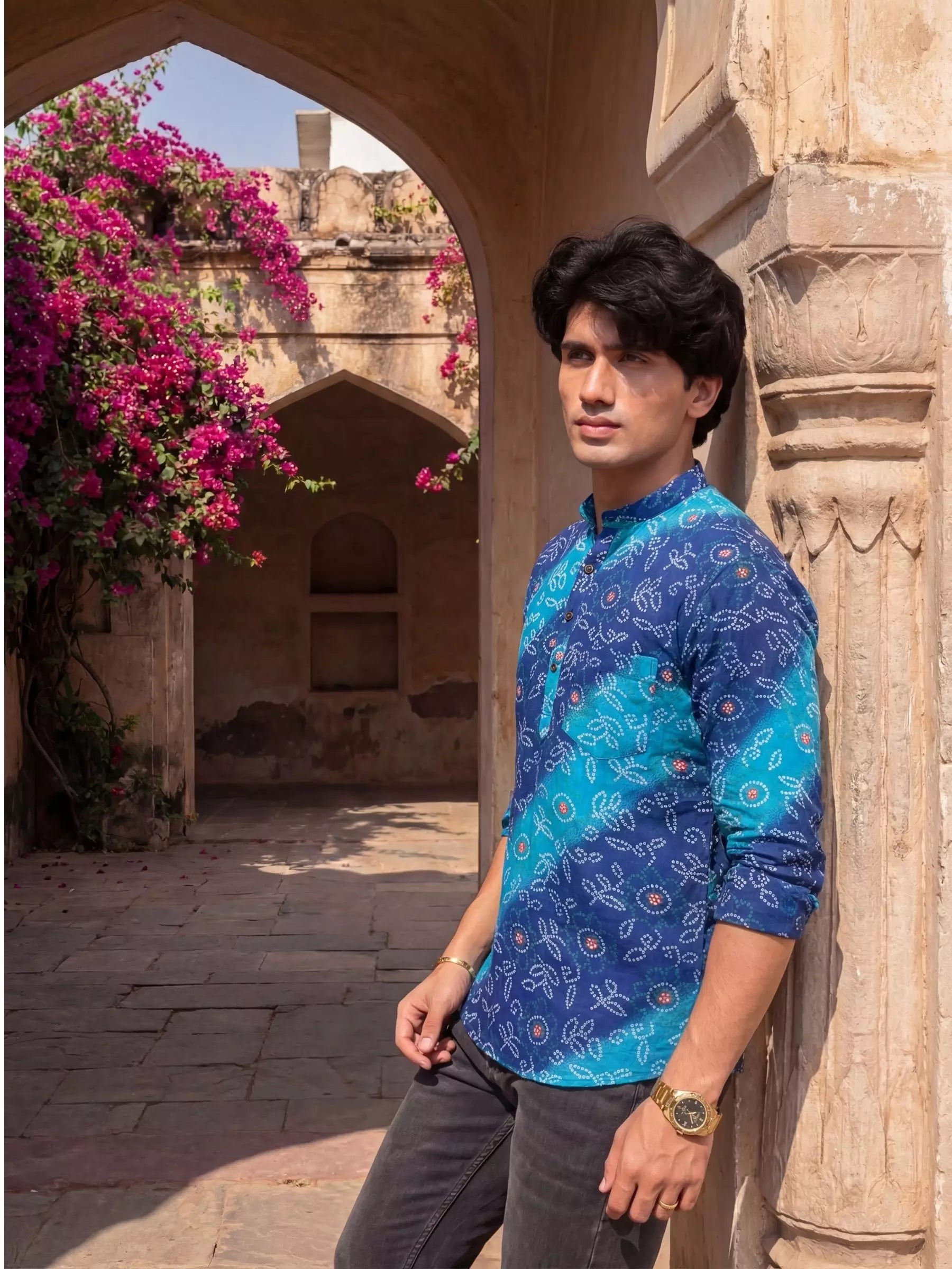 Make a splash with Ocean Blossom by Jaipuri Crown – a vibrant Short Kurta featuring an eye-catching floral print in shades of blue and pink. Crafted from 100% Sanganeri cotton, this Kurta ensures a soft and breathable feel, ideal for casual gatherings, festive occasions, or leisurely weekends with friends.