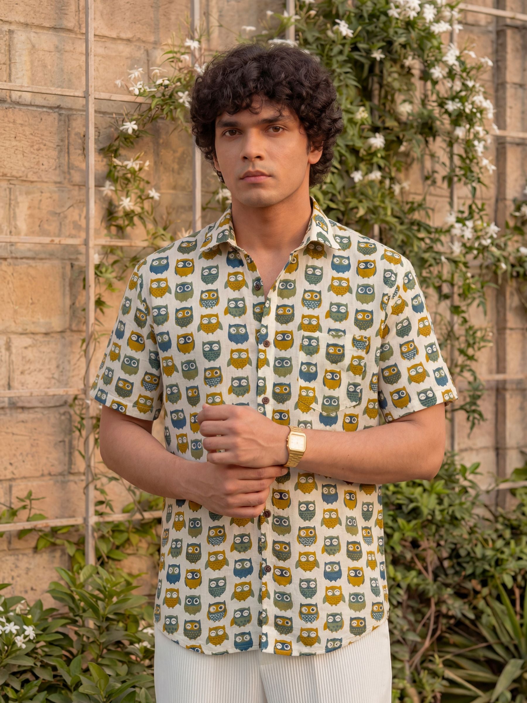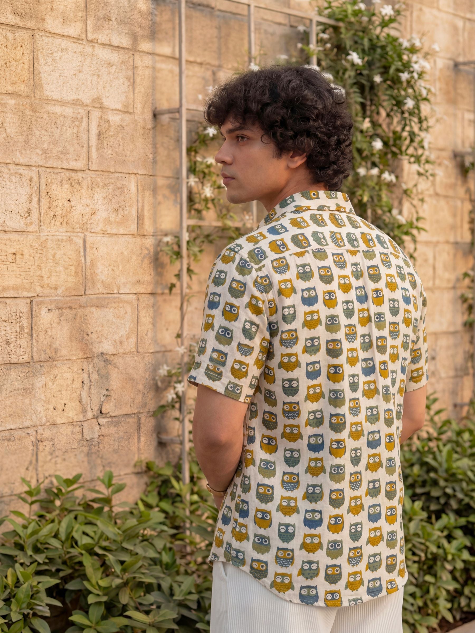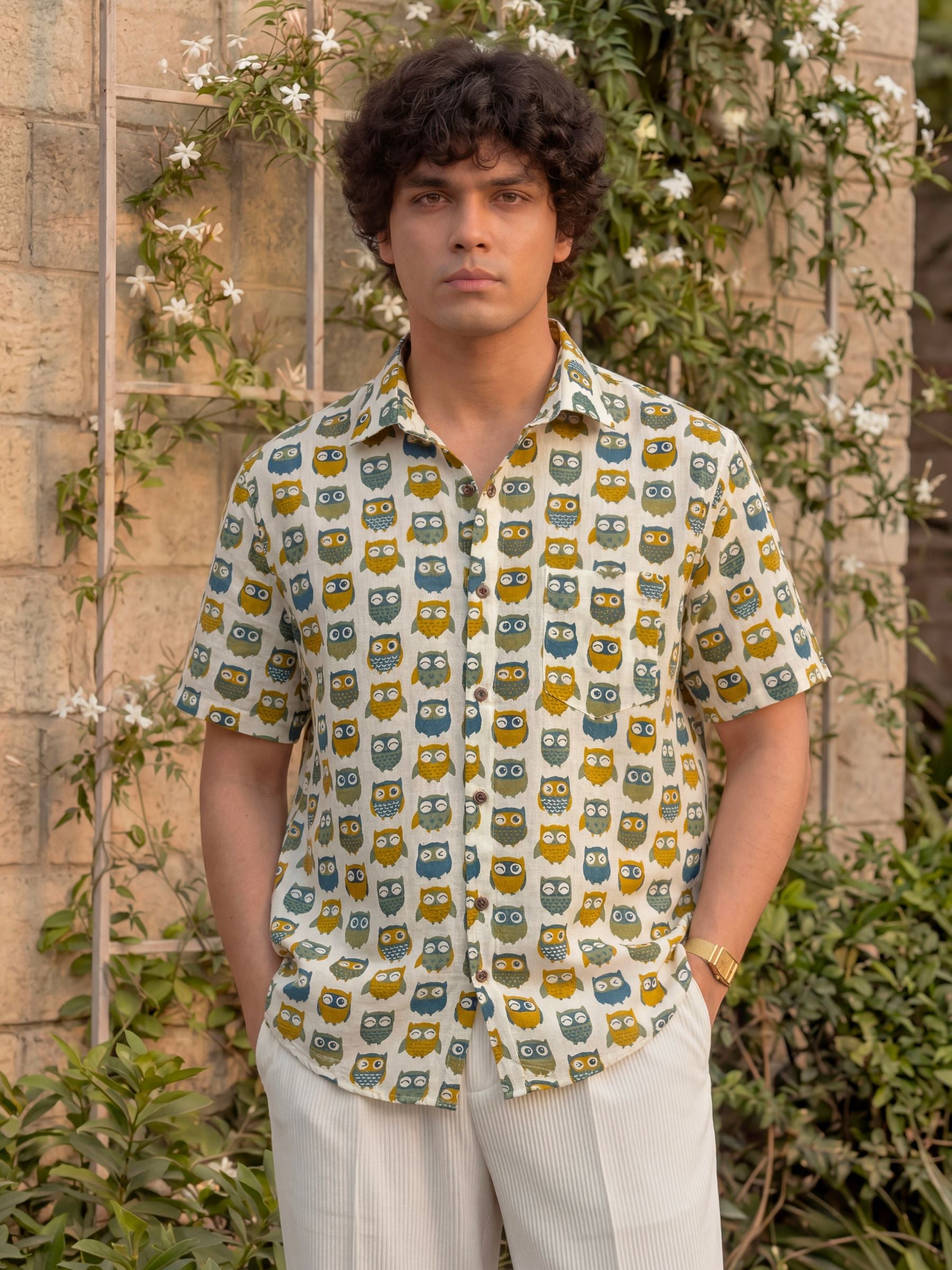 Elevate your style with our Owl Affair Half Sleeve Shirt! 🦉 Crafted from premium Sanganeri cotton, this shirt offers ultimate comfort and breathability. 🌬️