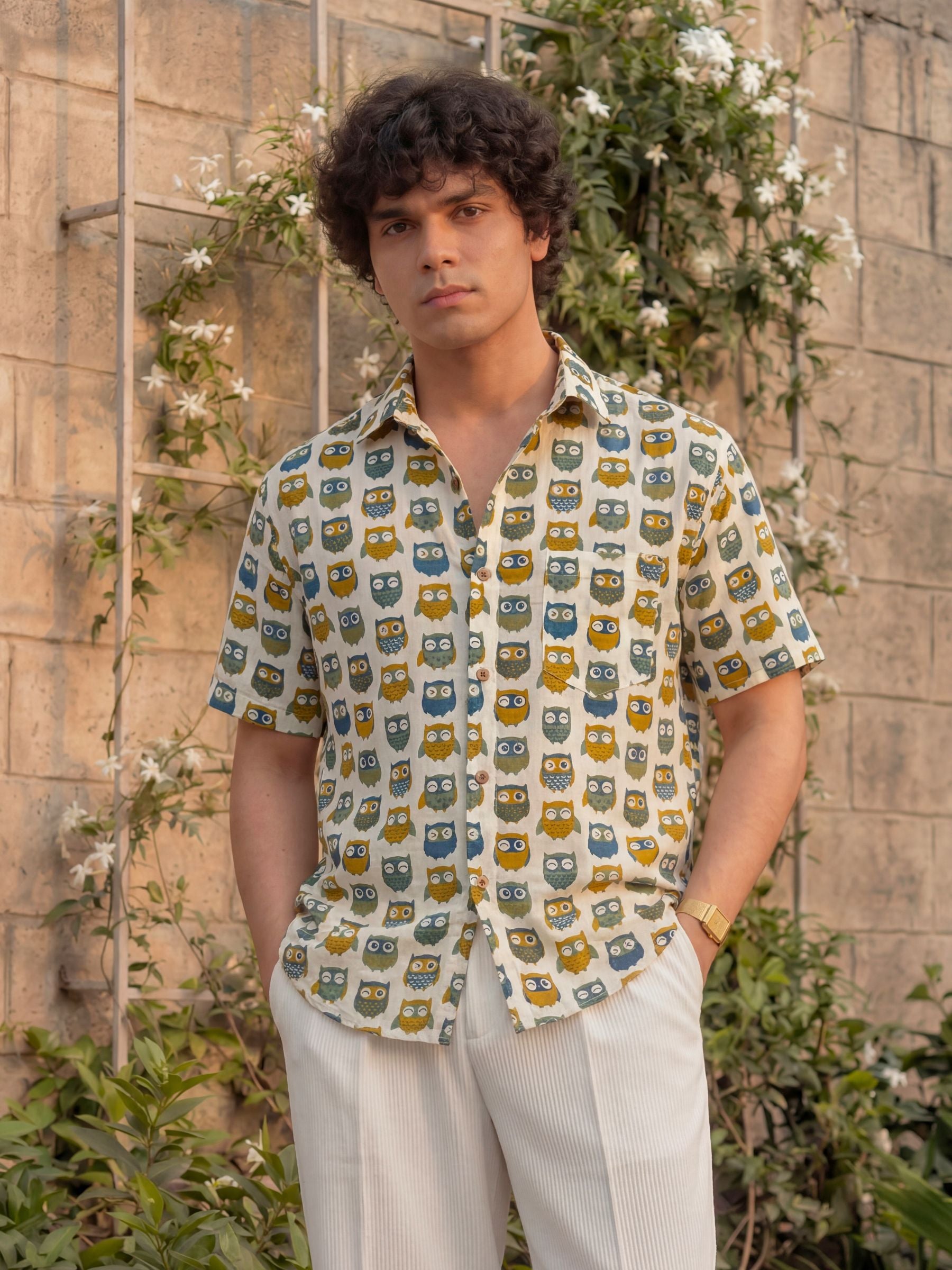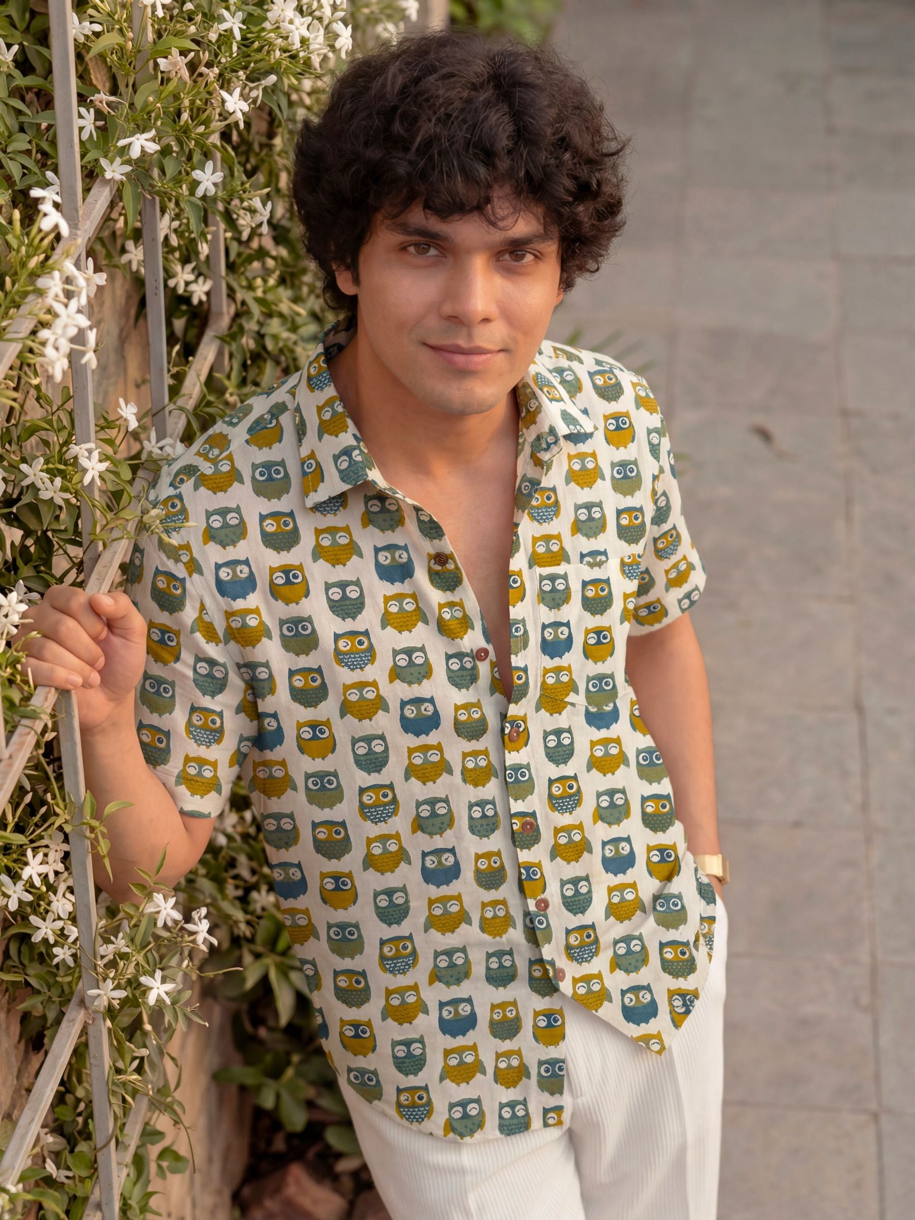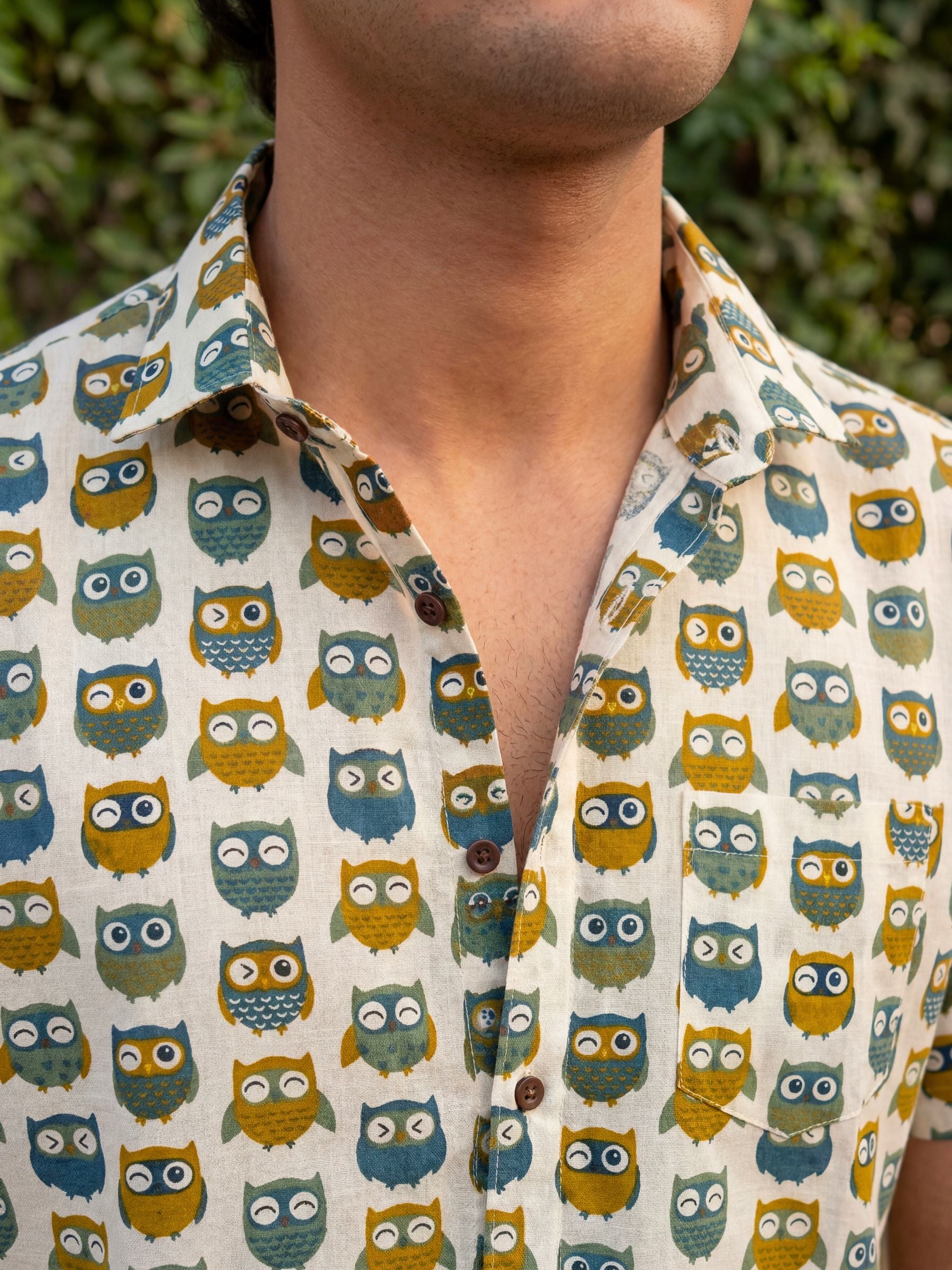 Elevate your style with our Owl Affair Half Sleeve Shirt! 🦉 Crafted from premium Sanganeri cotton, this shirt offers ultimate comfort and breathability. 🌬️