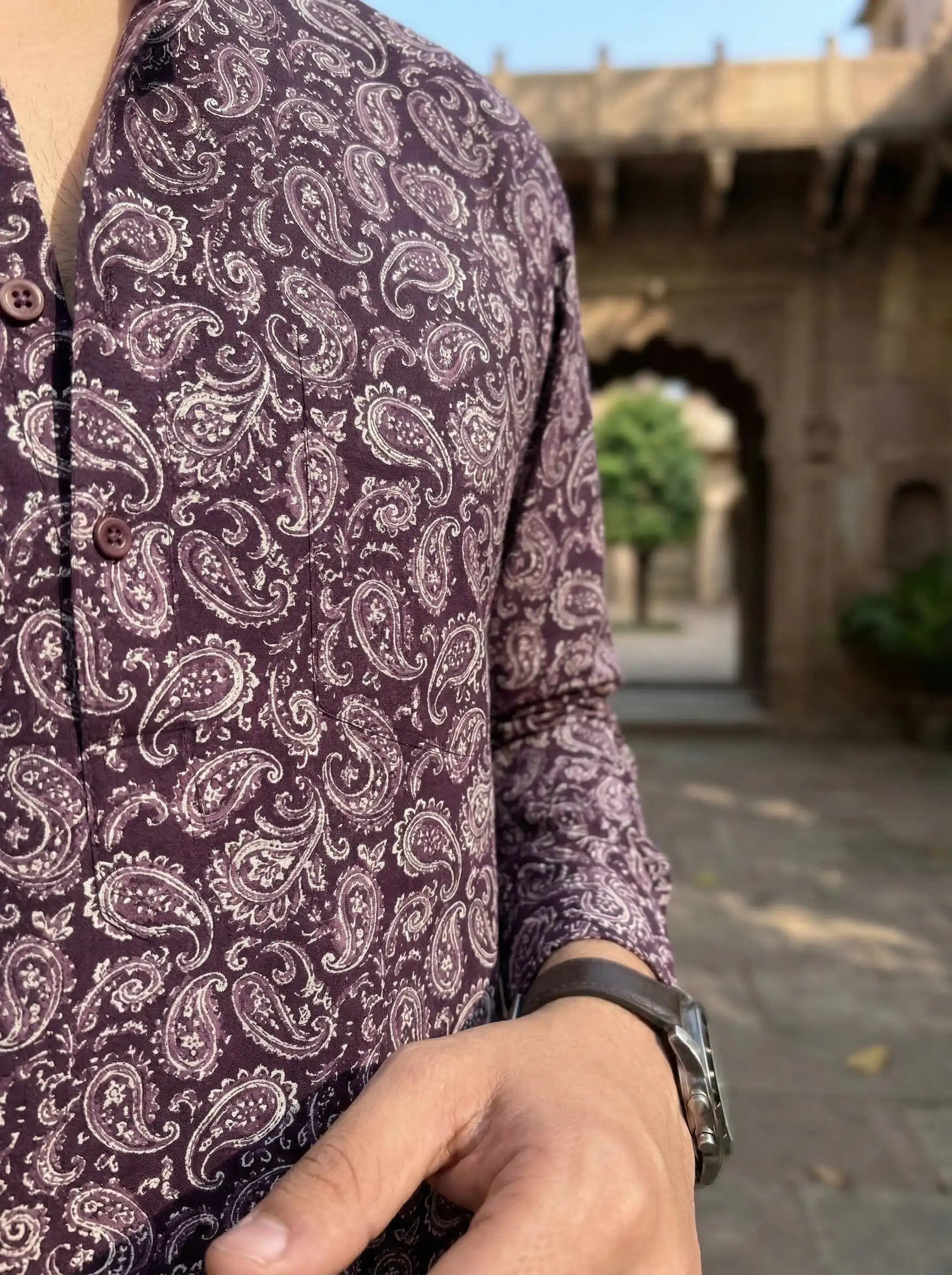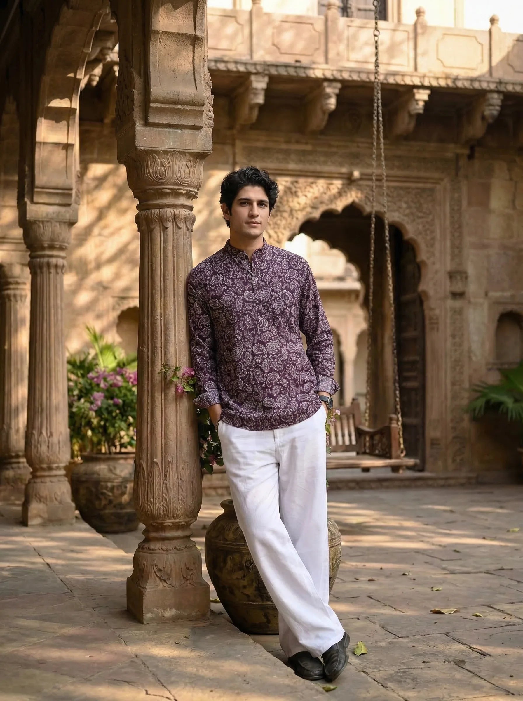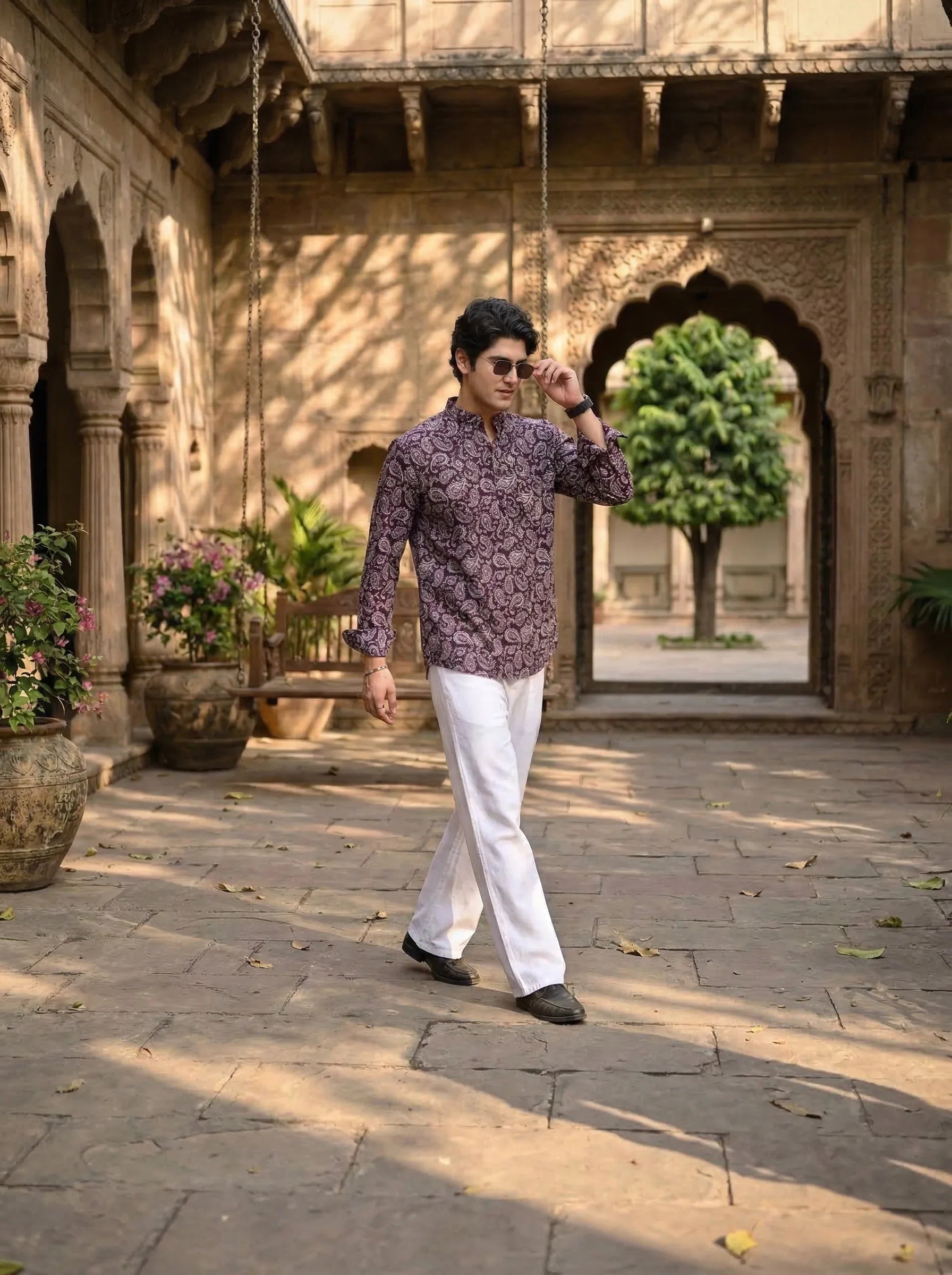 Step out in style with the Royal Paisley by Jaipuri Crown – a chic Short Kurta featuring an eye-catching paisley print in rich purple hues. Made from 100% Sanganeri cotton, this Kurta is designed for comfort and breathability, making it an ideal choice for festive occasions, casual gatherings, or everyday wear.