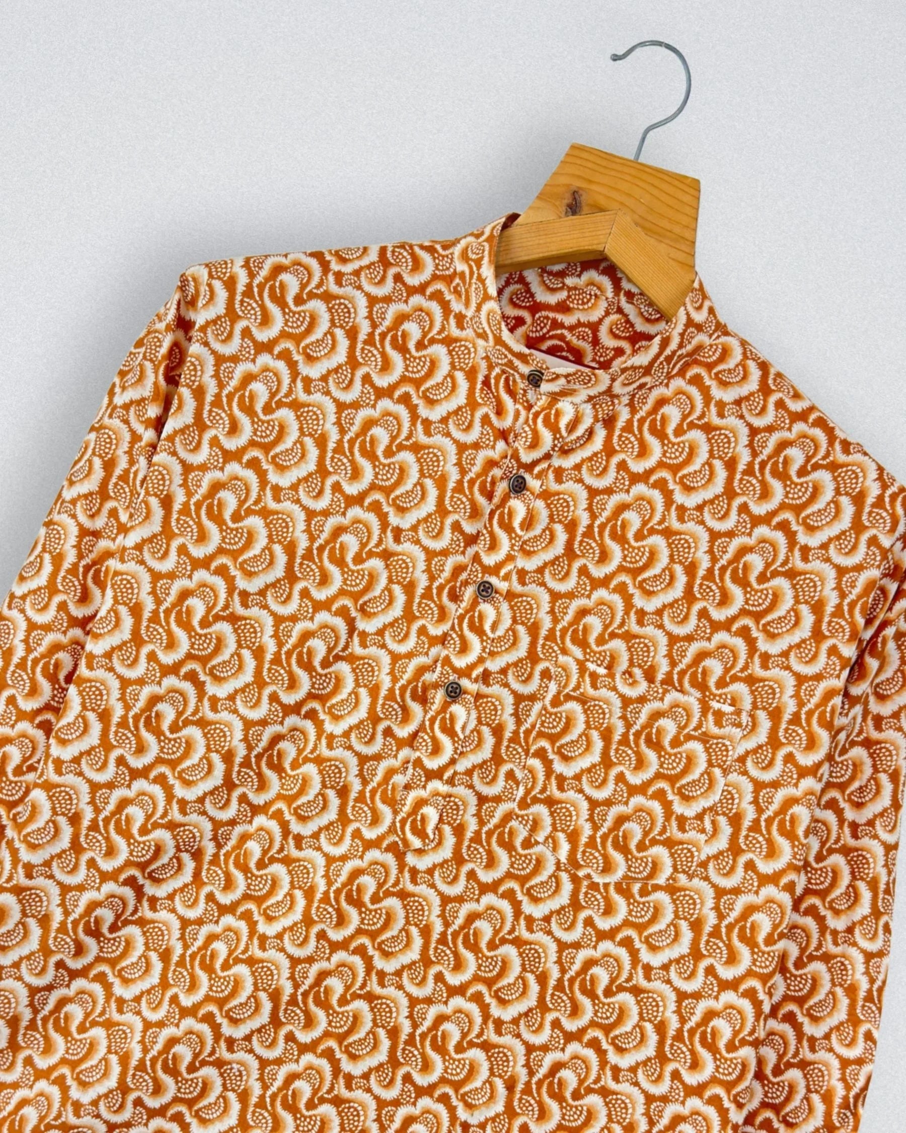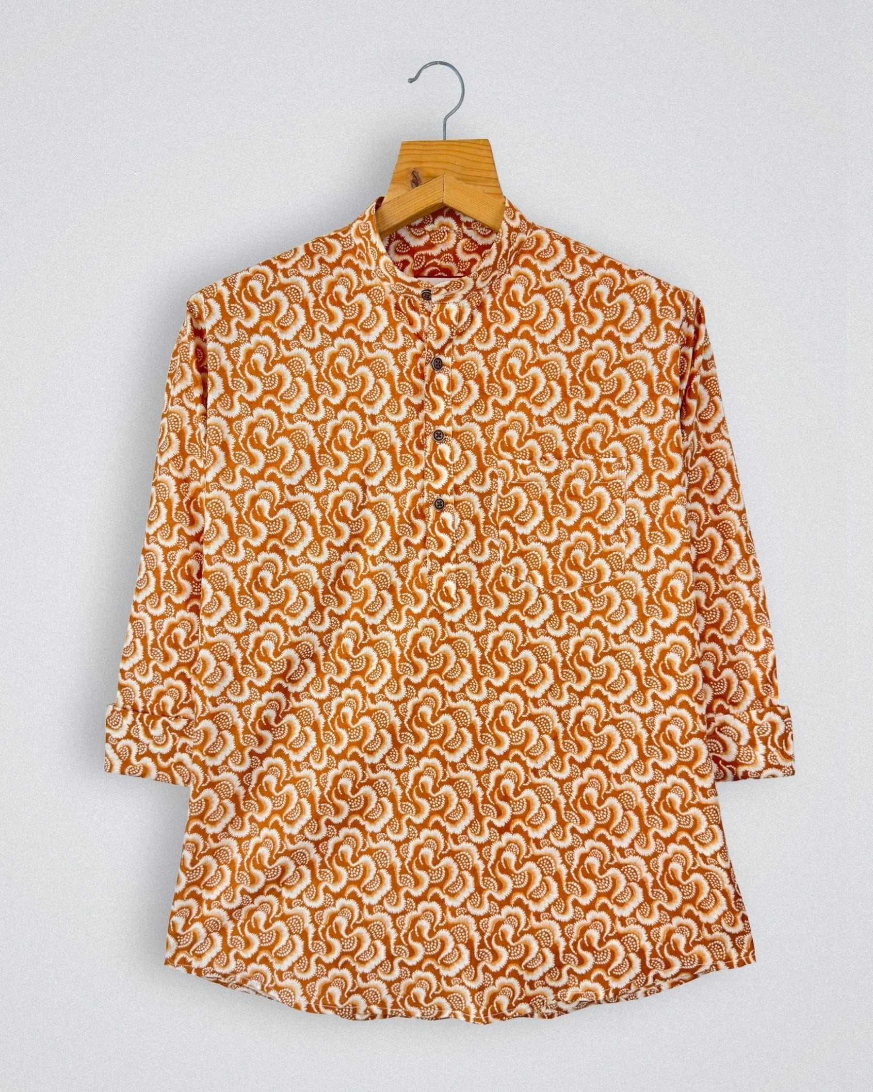 Step into elegance with Rustic Elegance by Jaipuri Crown – a chic Short Kurta featuring a stunning paisley print in earthy rust and cream tones. Made from 100% Sanganeri cotton, this Kurta provides a soft and breathable fit, ideal for festive occasions, family gatherings, or casual outings.
