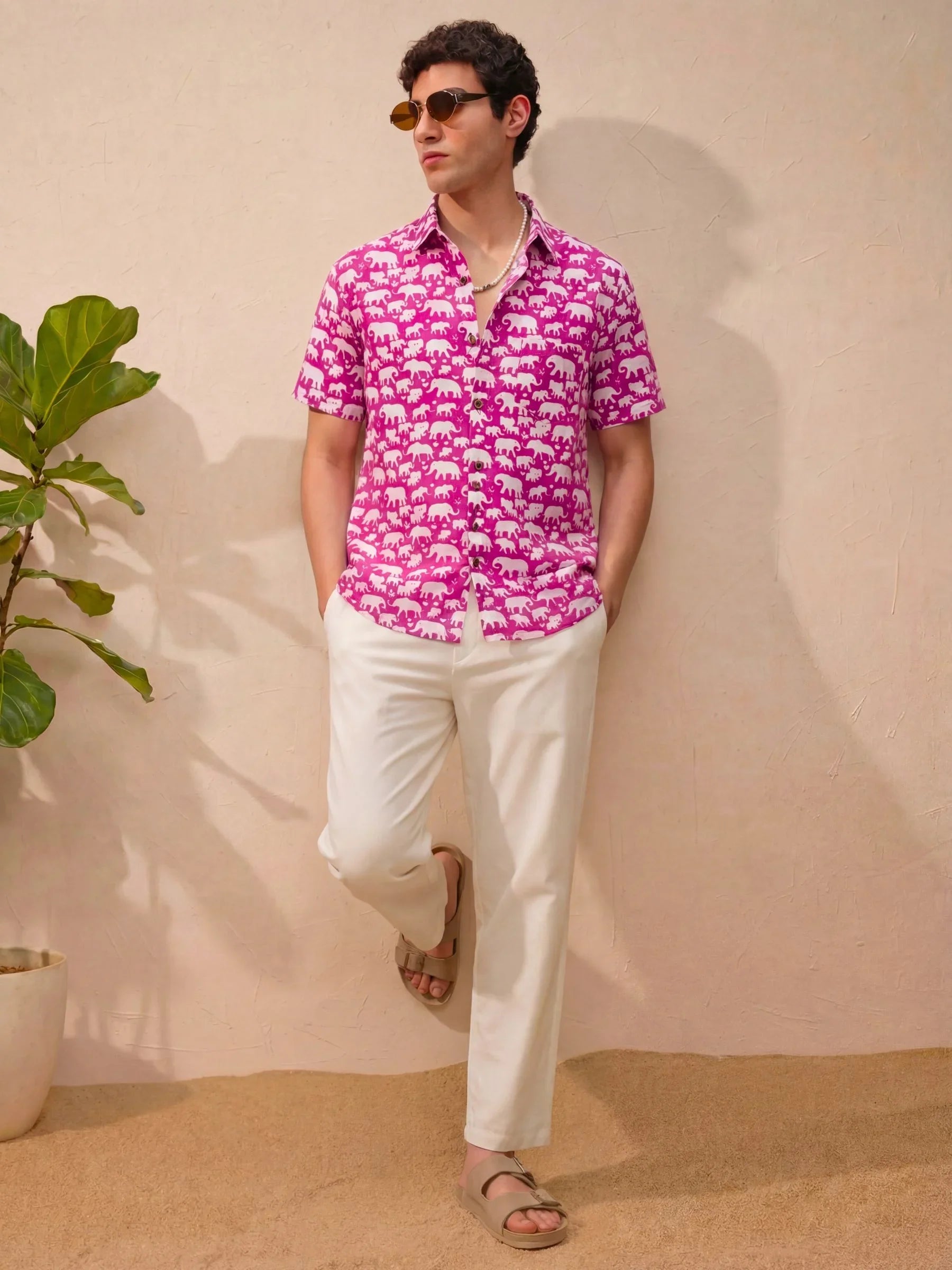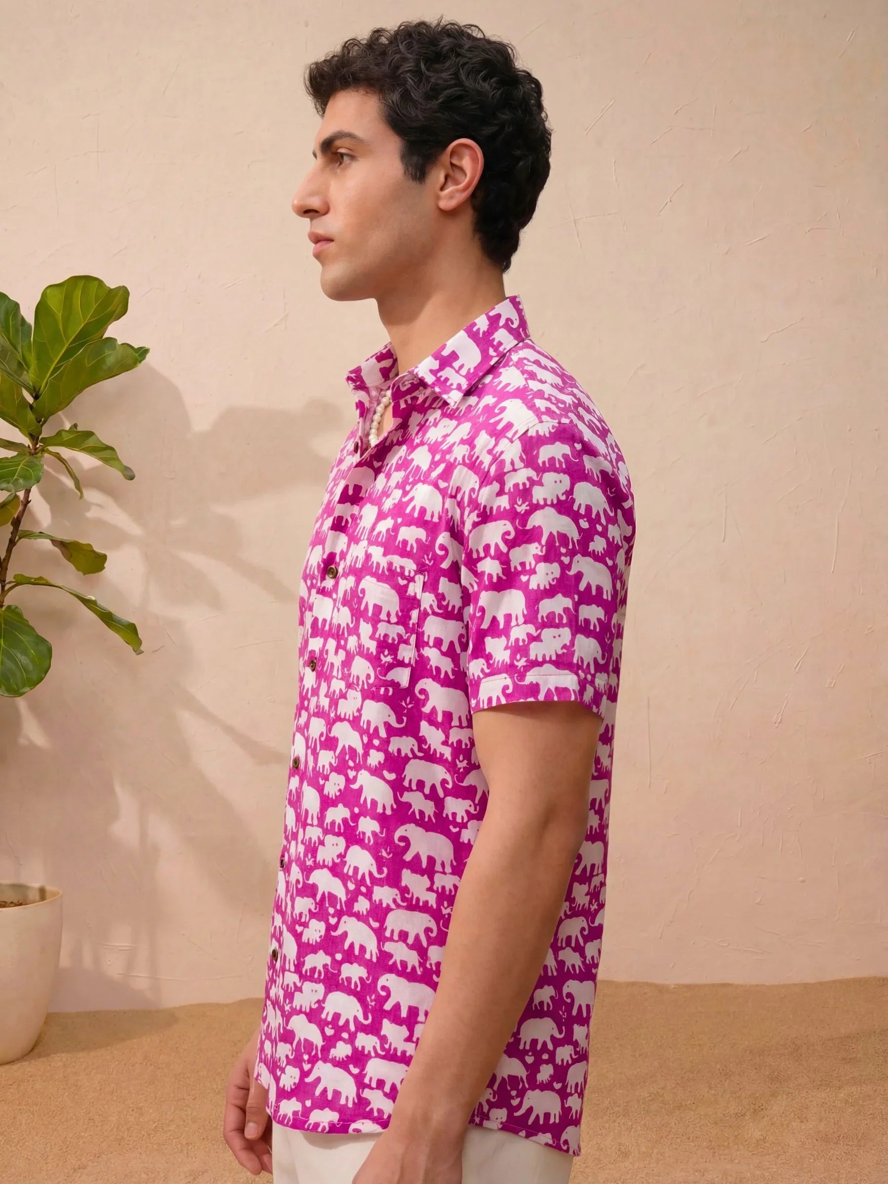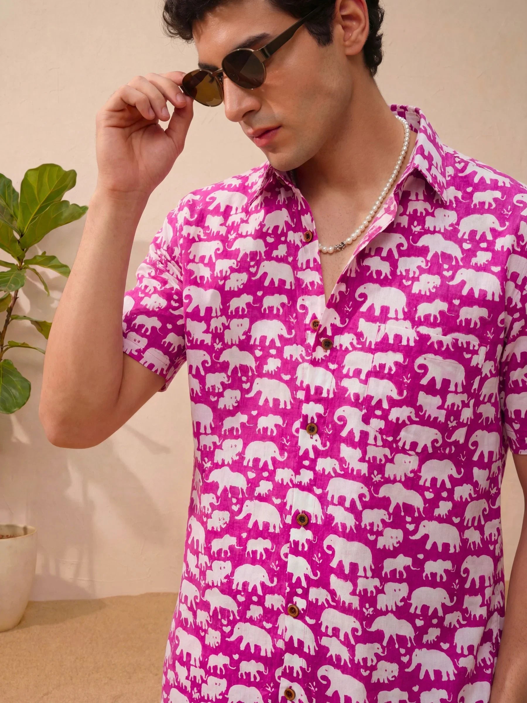 Step into a world of charm with our Elephant Parade by Jaipuri Crown – a delightful half sleeve cotton shirt featuring a playful elephant print in vibrant pink and white. Made from 100% Sanganeri cotton, this shirt promises a soft and comfortable fit, perfect for casual outings or laid-back weekends. The fun design adds a unique flair to your wardrobe, making it a must-have for any fashion-forward individual.