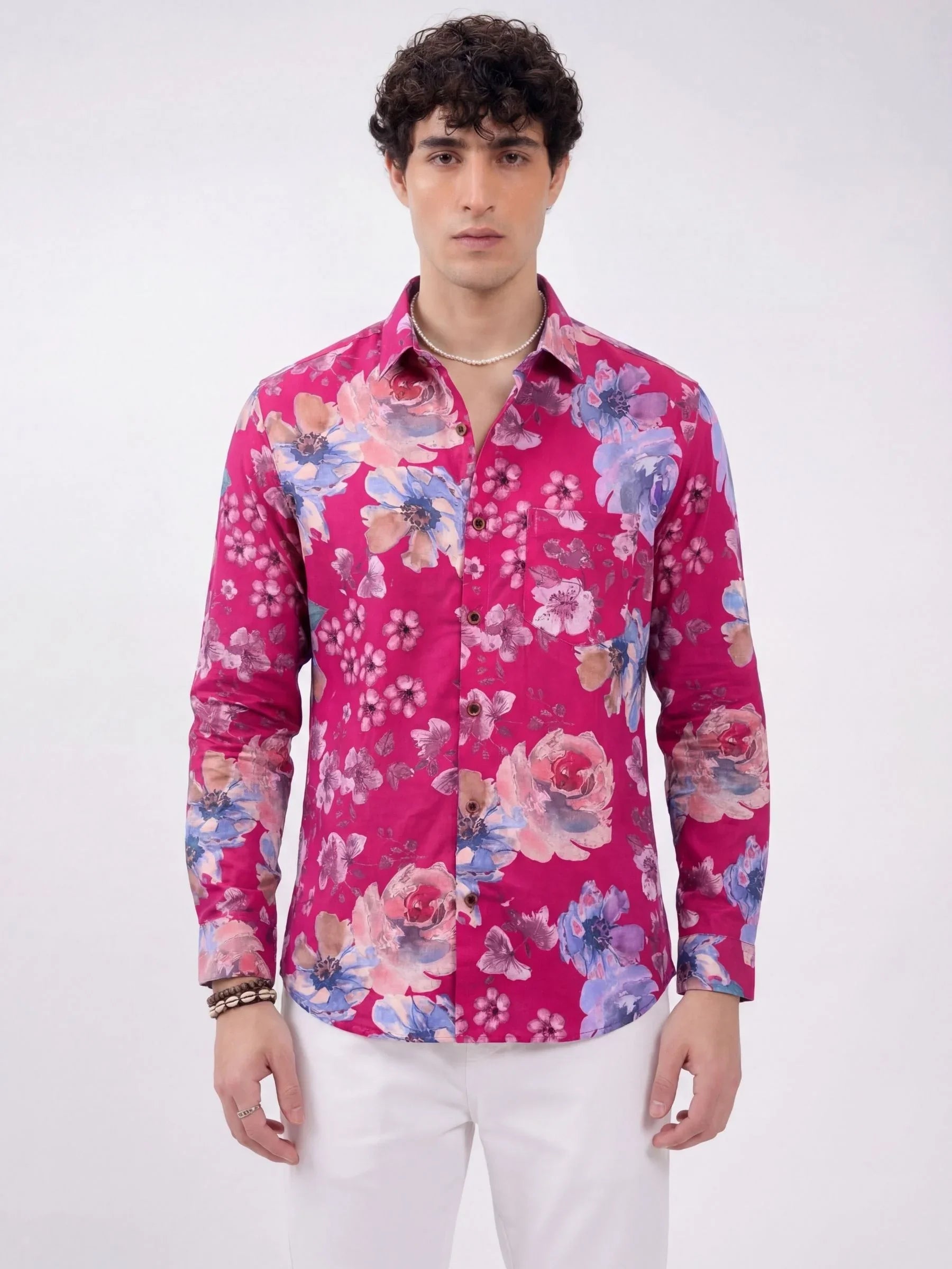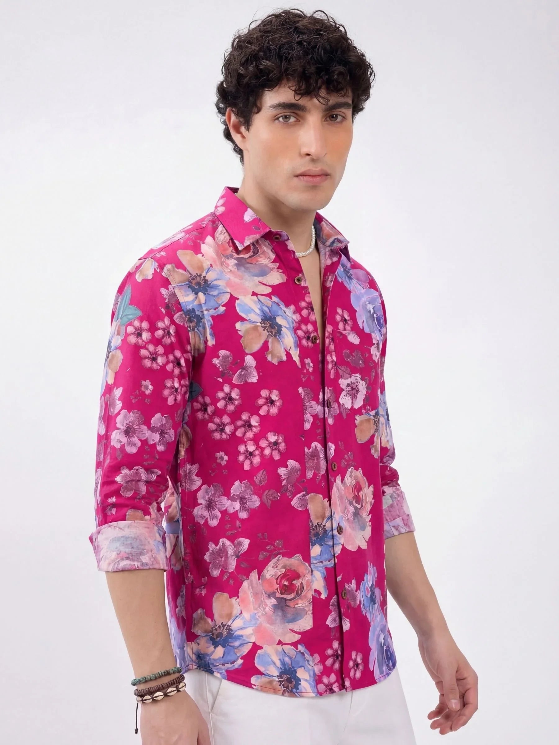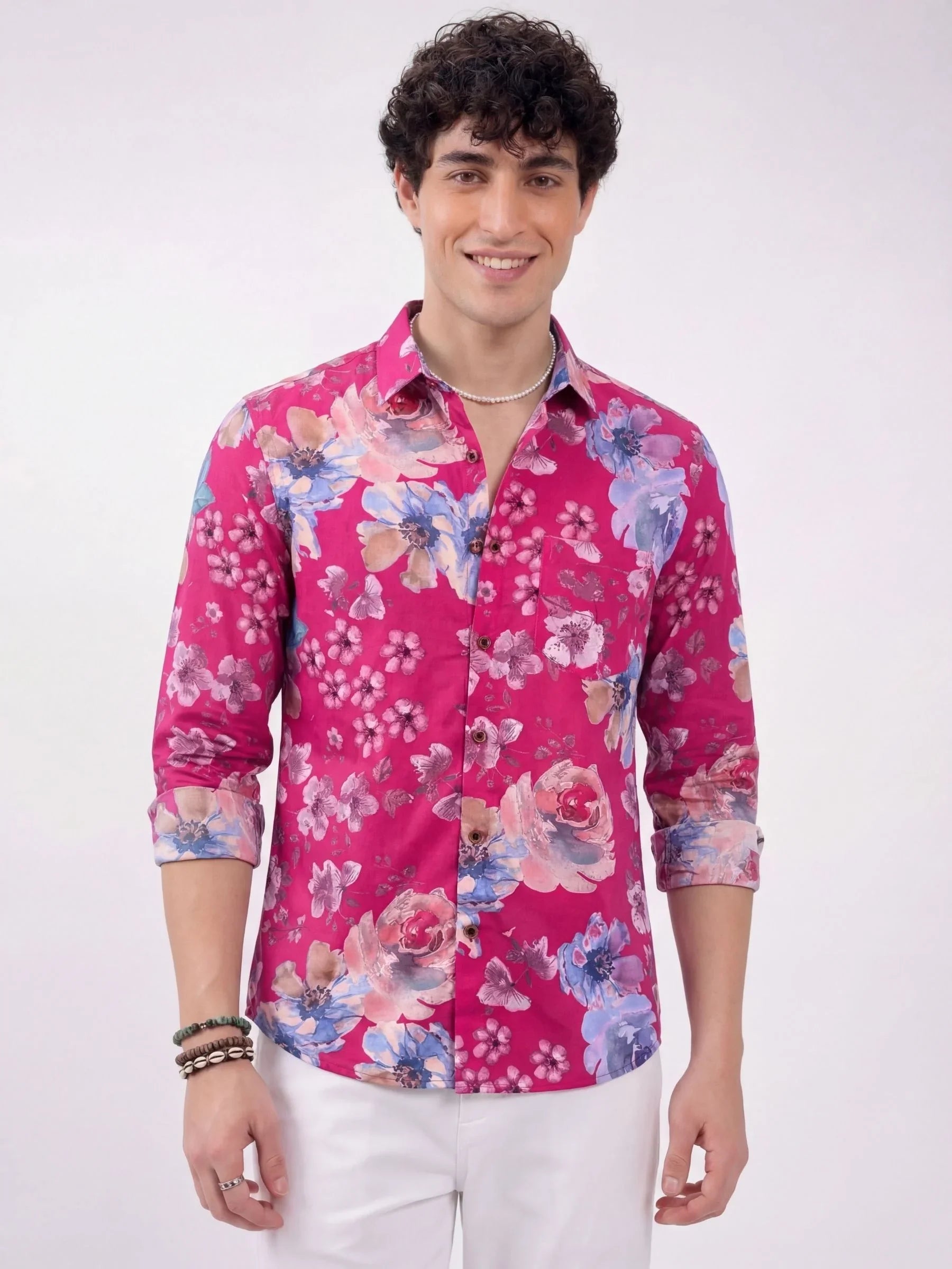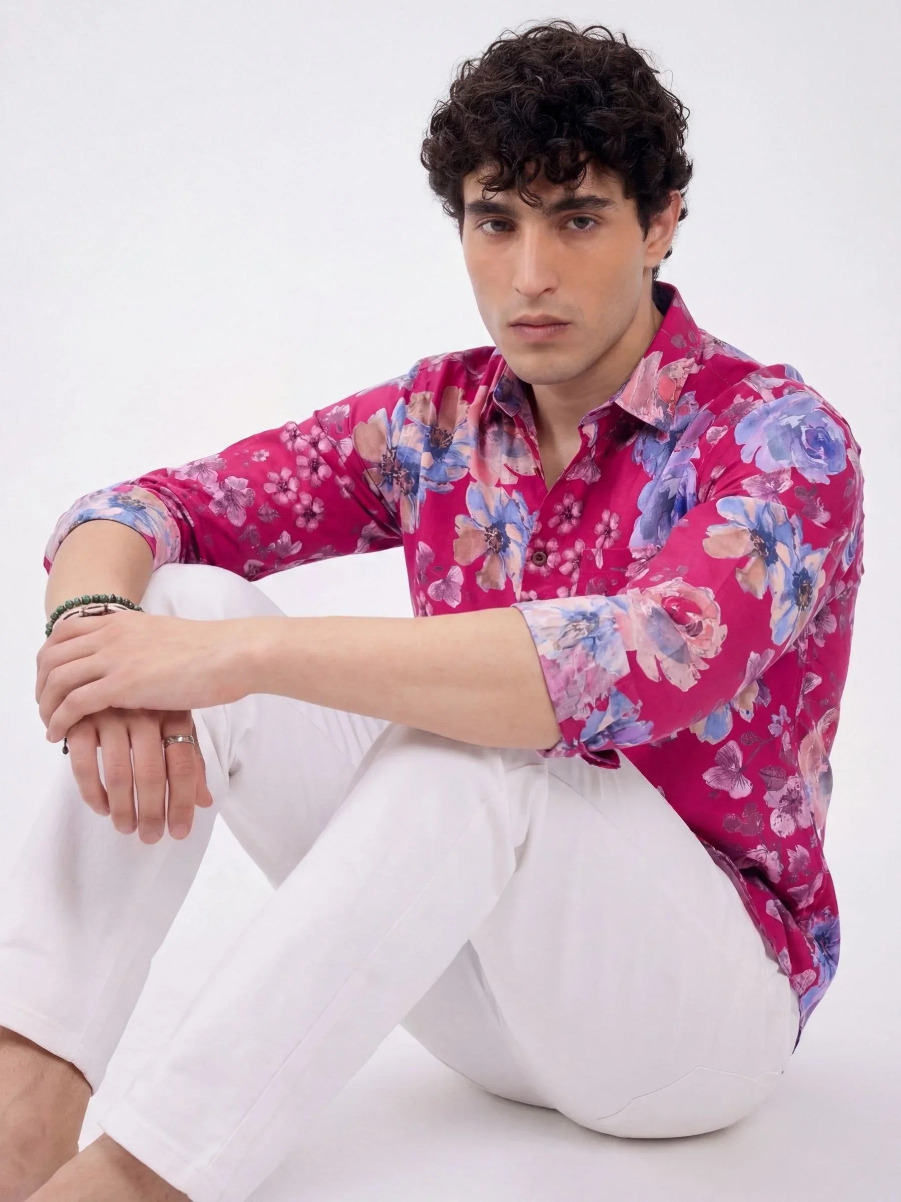 Let your style bloom with bold confidence in the Rose Ember shirt by Jaipuri Crown. Designed with a dramatic floral palette of violet, lavender, and mauve over a deep magenta background, this full sleeve printed shirt is made from our premium satin blend fabric for a sleek, polished finish. Ideal for romantic evenings, festive flair, or fashion-forward streetwear.