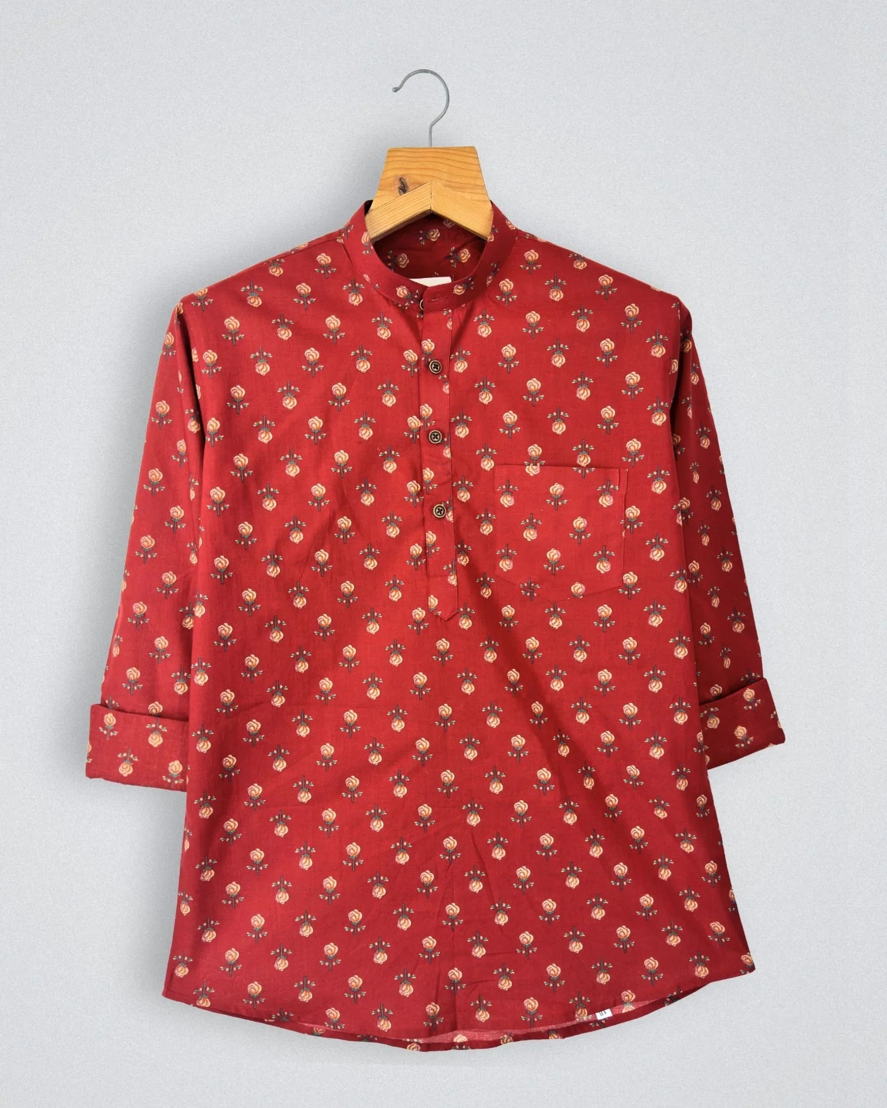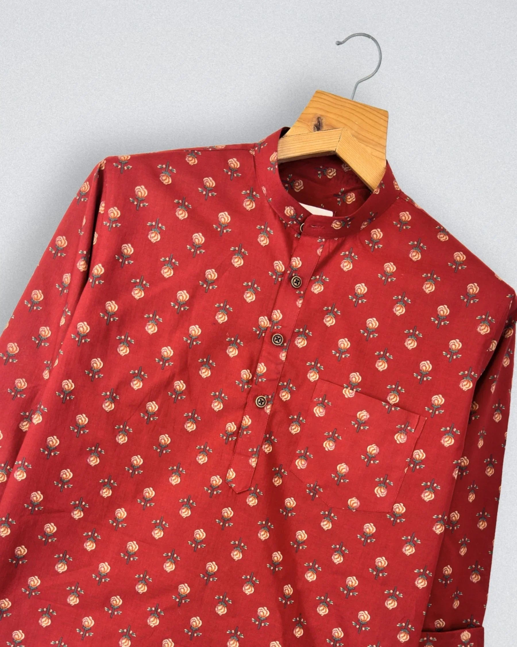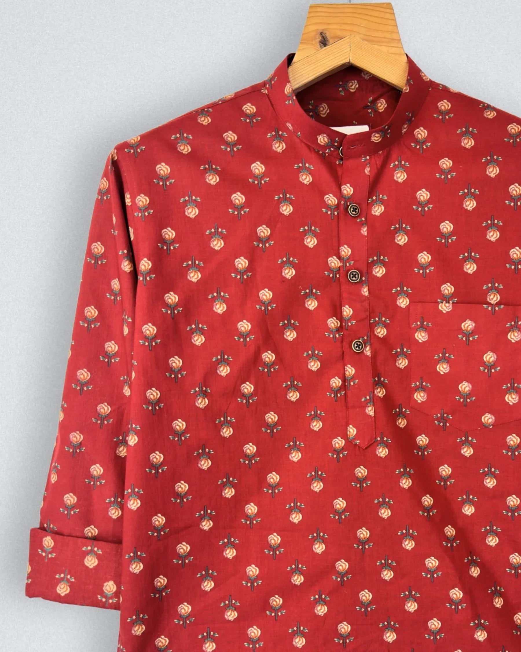 Step into style with the Rose Garden by Jaipuri Crown – a striking Short Kurta featuring an exquisite floral print in shades of red and green. Made from 100% Sanganeri cotton, this Kurta provides a soft, breathable fit that's perfect for summer outings, family gatherings, or casual get-togethers. The vibrant colors and elegant design make it a versatile addition to your wardrobe.