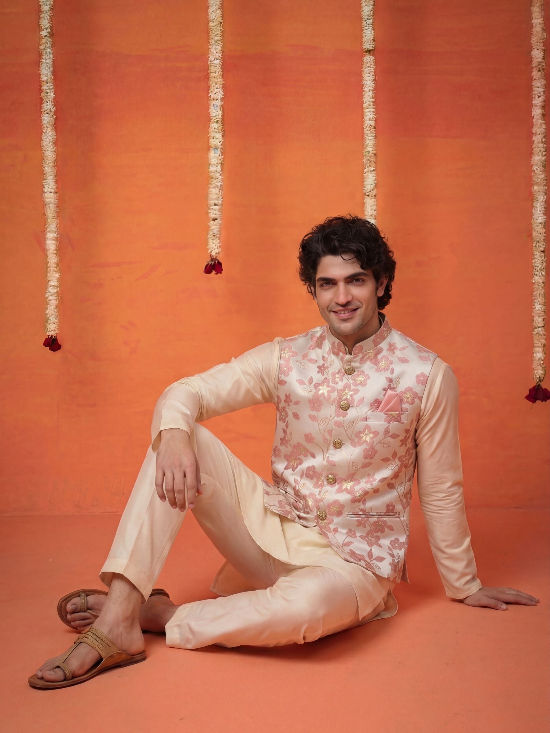 Perfect for the man who prefers sophisticated, nature-inspired motifs, this Modi Vest offers a clean and polished finish. Its light and airy cream color palette makes it a versatile addition for engagement parties, daytime weddings, or high-profile festivals.