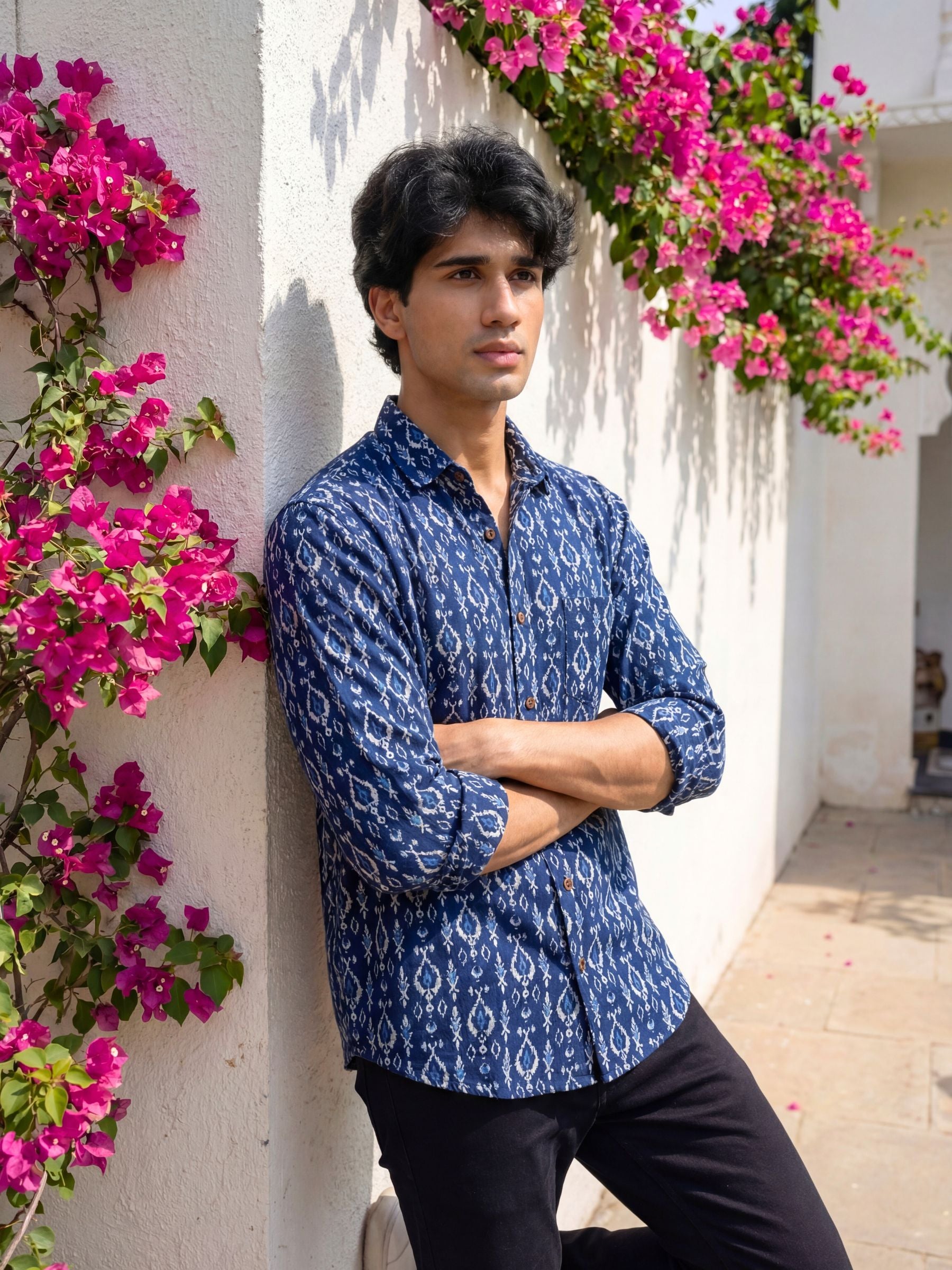 Elevate your casual wardrobe with the Royal Blue Charm by Jaipuri Crown – a stunning full sleeve cotton shirt featuring a unique blue and white print that exudes elegance. Made from 100% premium cotton, this shirt ensures a soft and breathable fit, perfect for both casual and semi-formal occasions. Whether you're heading out for a night with friends or a relaxed weekend brunch, this shirt is sure to make a statement.