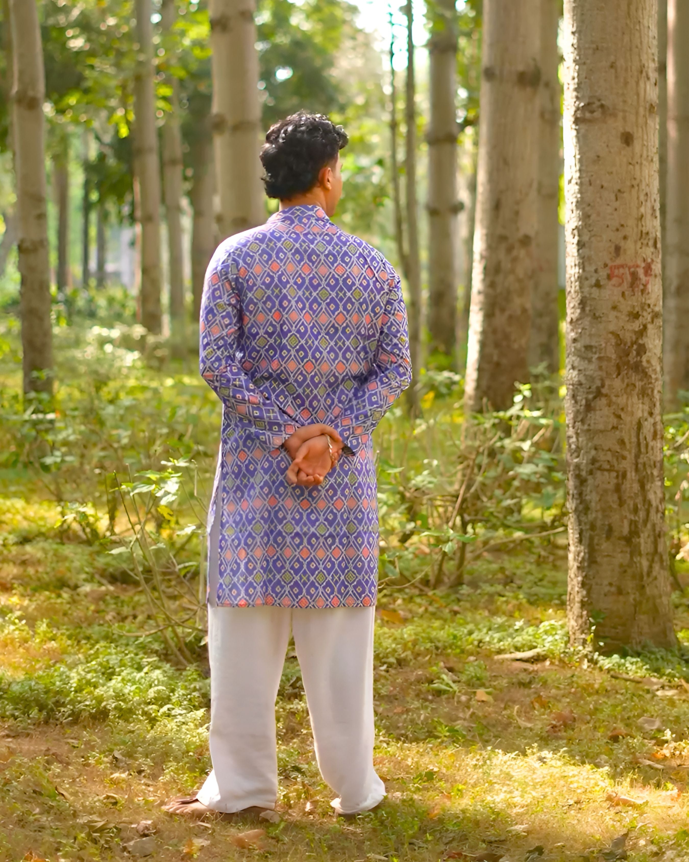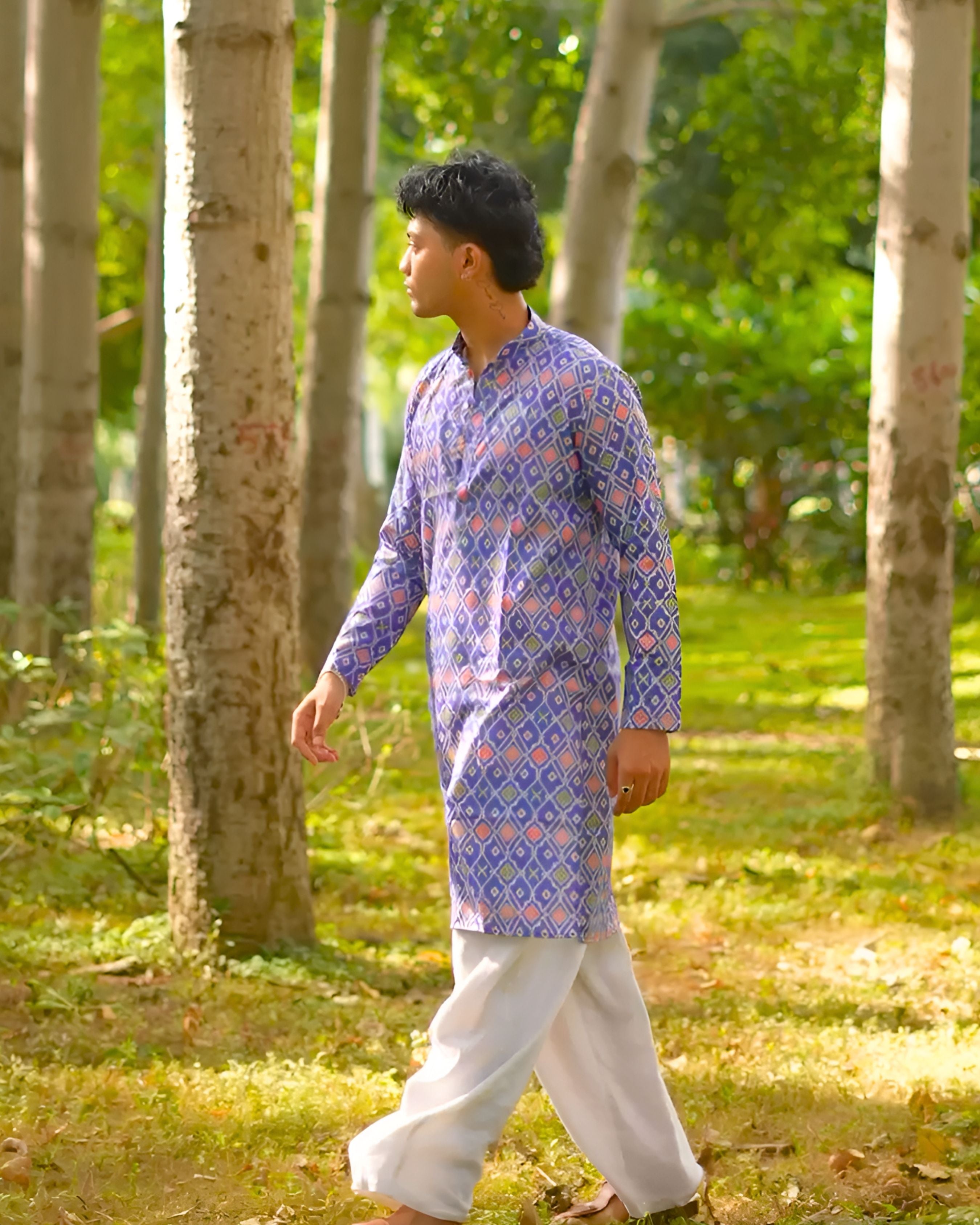 Royal Ikat – Blue Heritage Printed Long Kurta with Zari Work