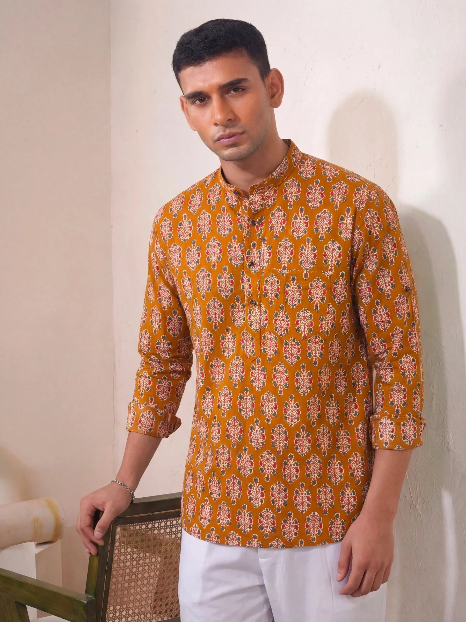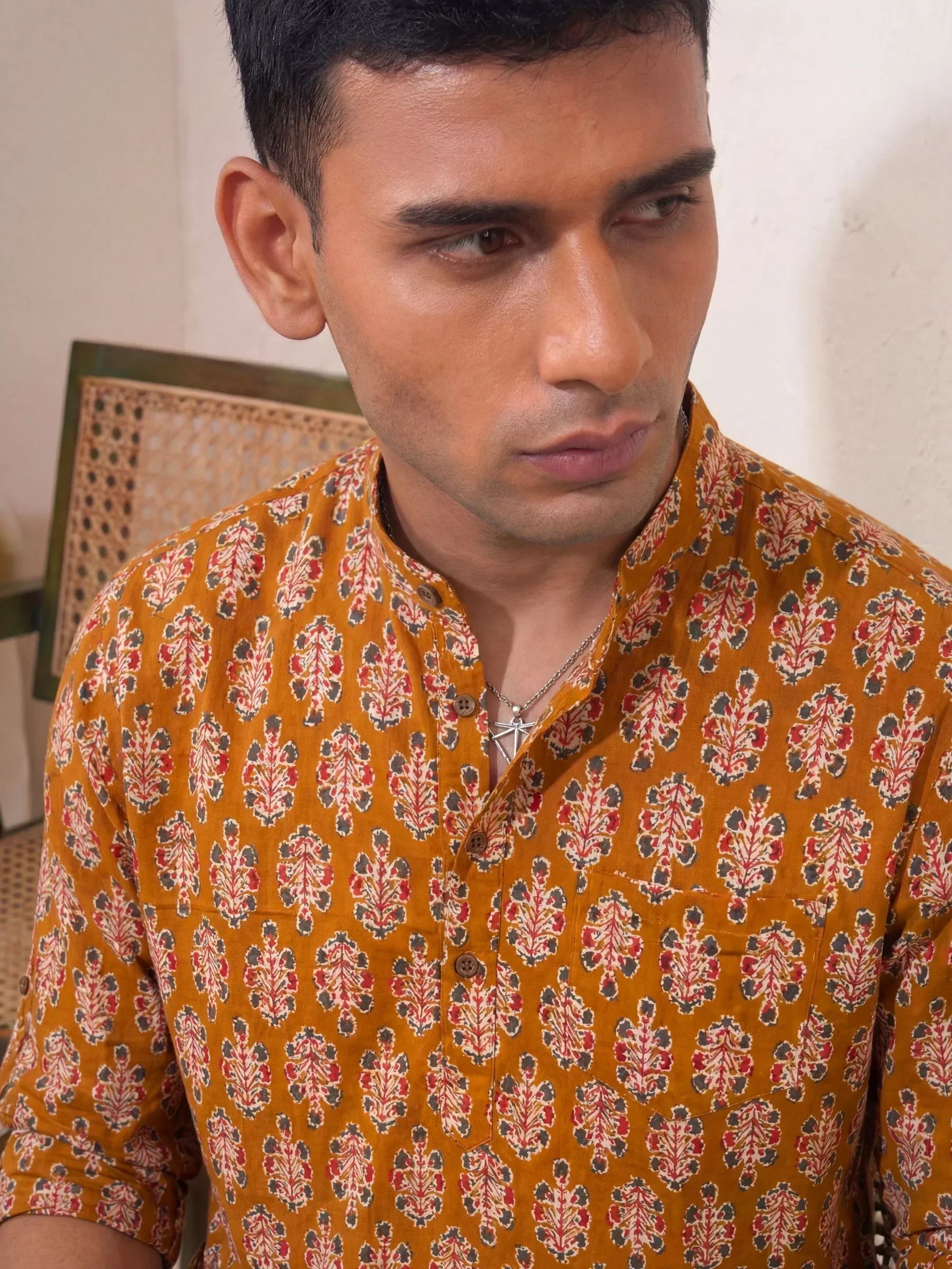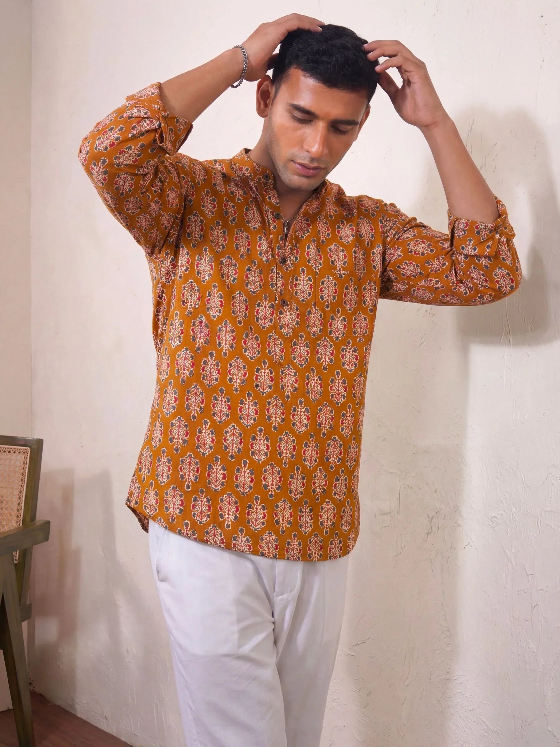 Step into comfort and style with Floral Elegance by Jaipuri Crown – a beautifully crafted Short Kurta featuring intricate floral prints in rich shades of rust, black, and cream. Designed from 100% Sanganeri cotton, this Kurta ensures a soft touch against your skin while providing breathability for those warm days. Perfect for casual gatherings, festive occasions, or simply lounging at home, this Kurta blends tradition with modern flair.
