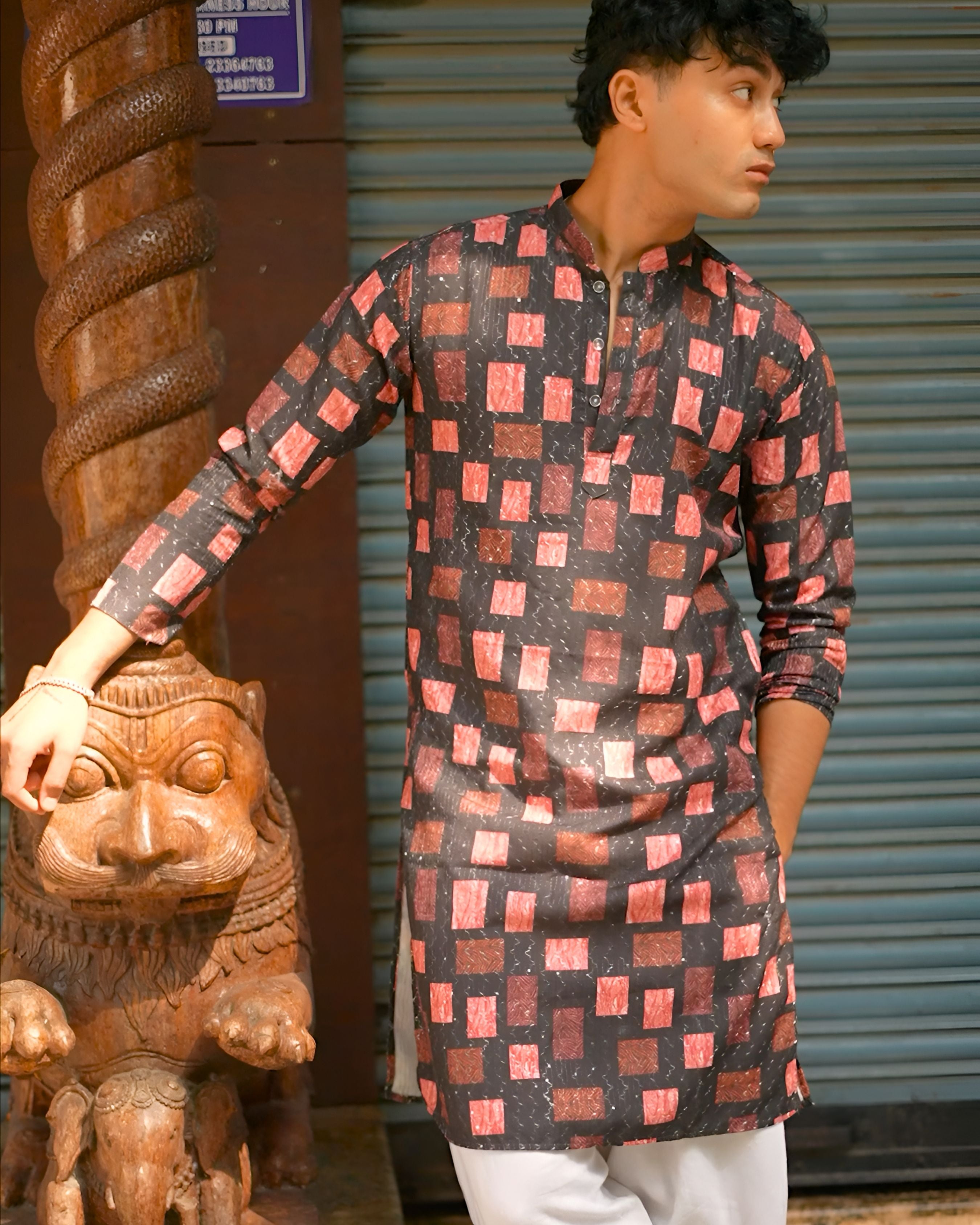 🖤 Classic Black Hue: A bold and timeless shade that adds refinement and modernity to any look. 👕 Supreme Comfort: Crafted from a high-quality cotton blend for a soft, breathable, and lightweight feel. 📏 Sleek Design: Features a mandarin collar, full sleeves, and side slits for a tailored and contemporary fit. 📂 Functional Details: Includes practical side pockets for effortless style and convenience. 🌿 Sustainably Crafted: Thoughtfully made using eco-conscious practices, promoting ethical and responsible fashion.