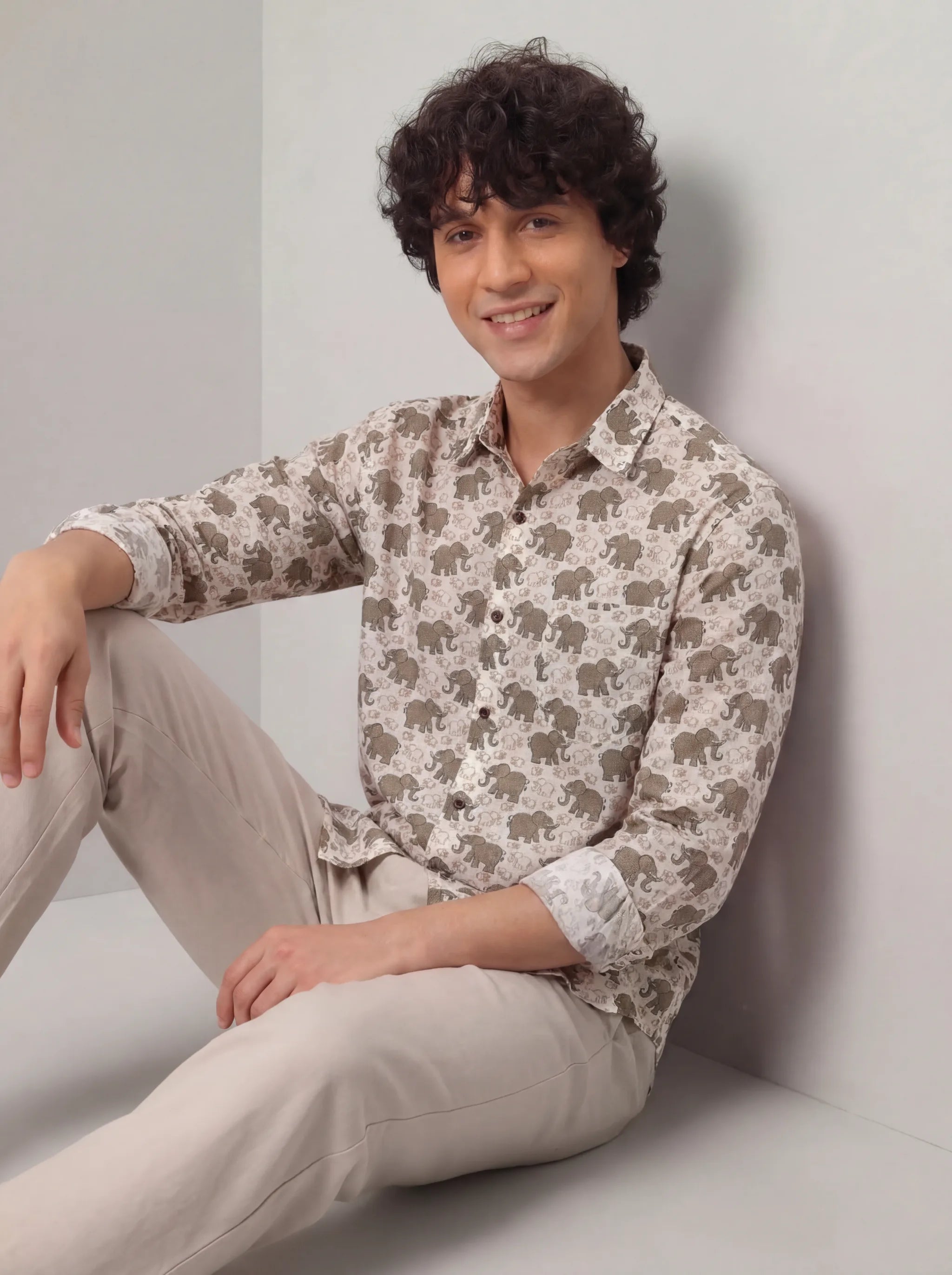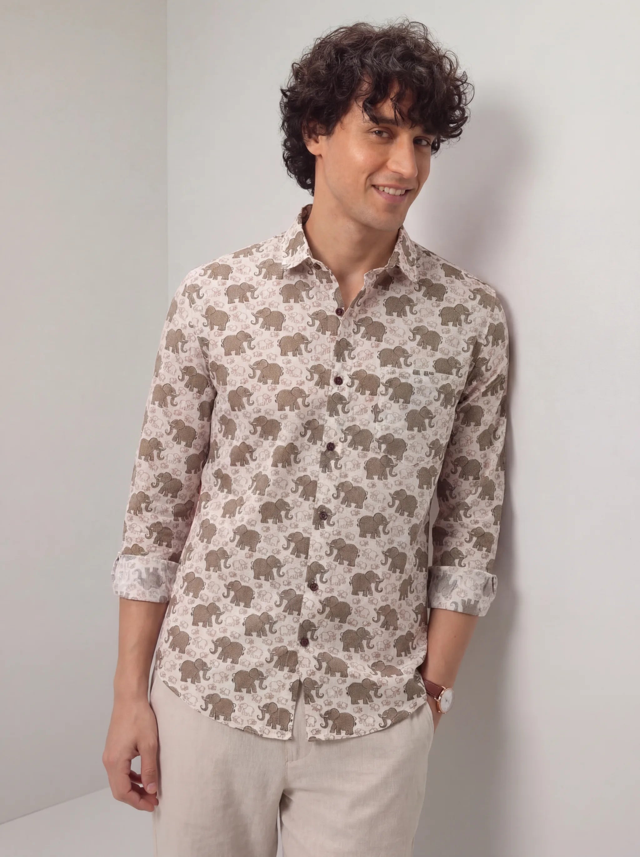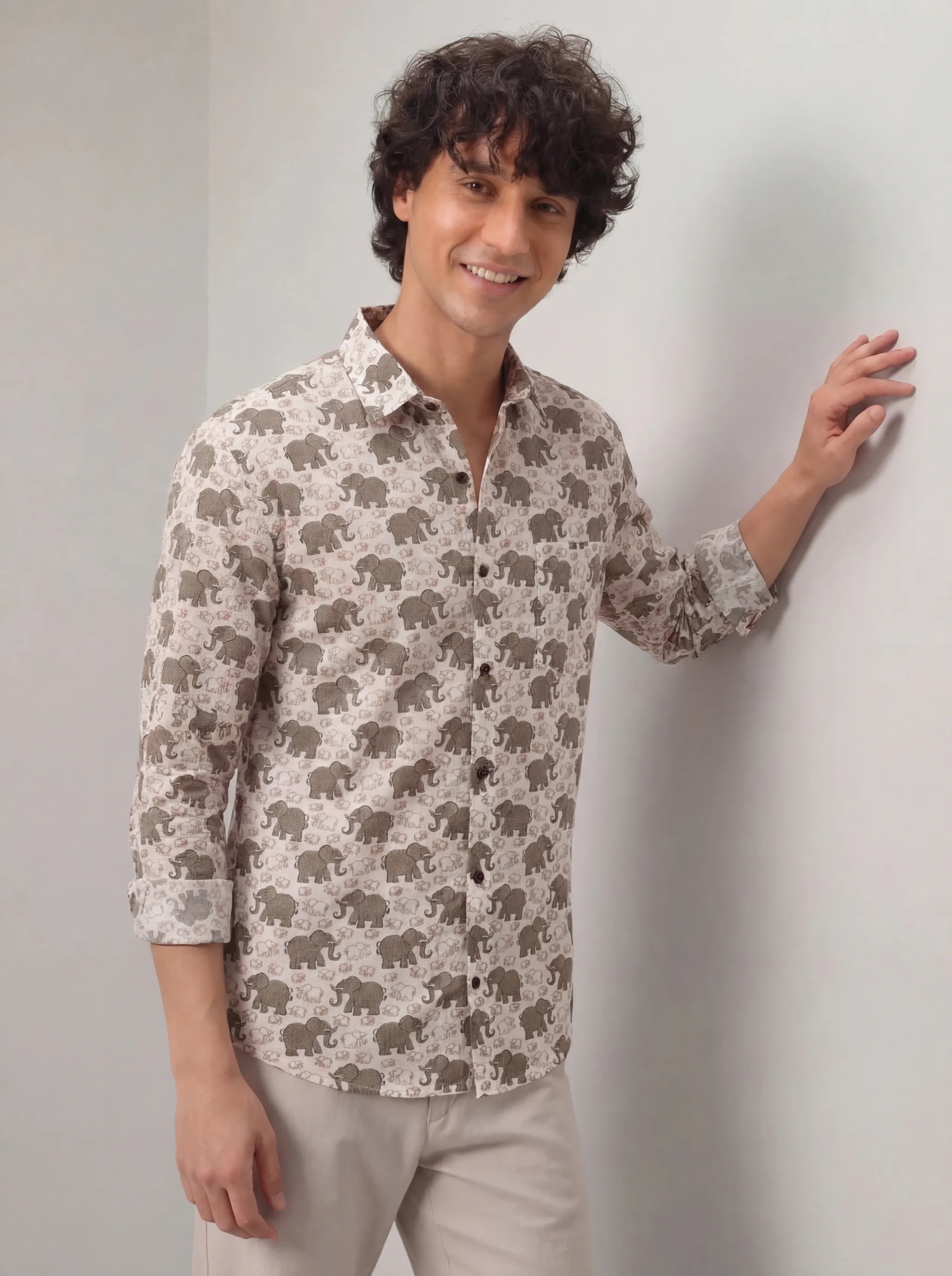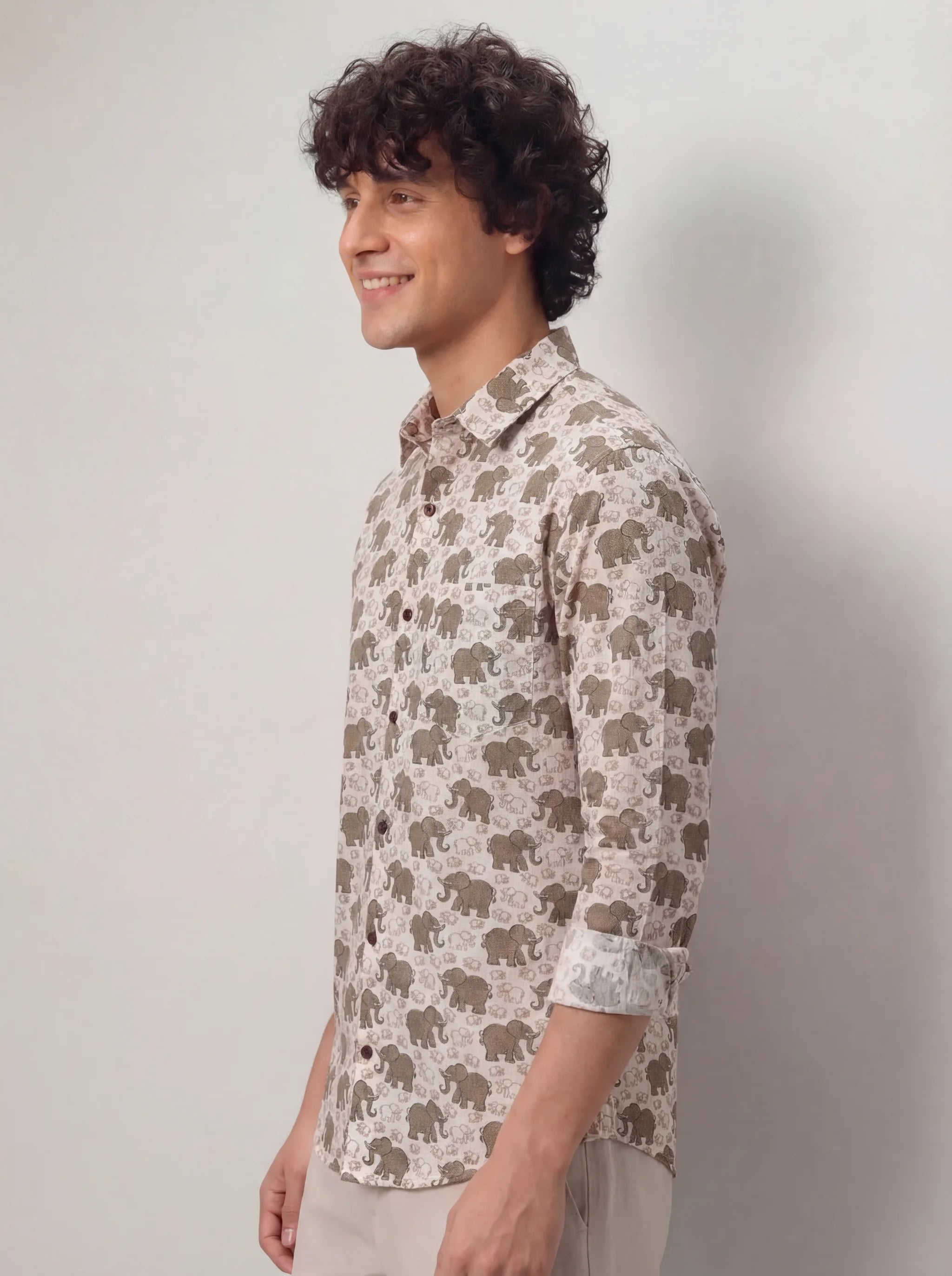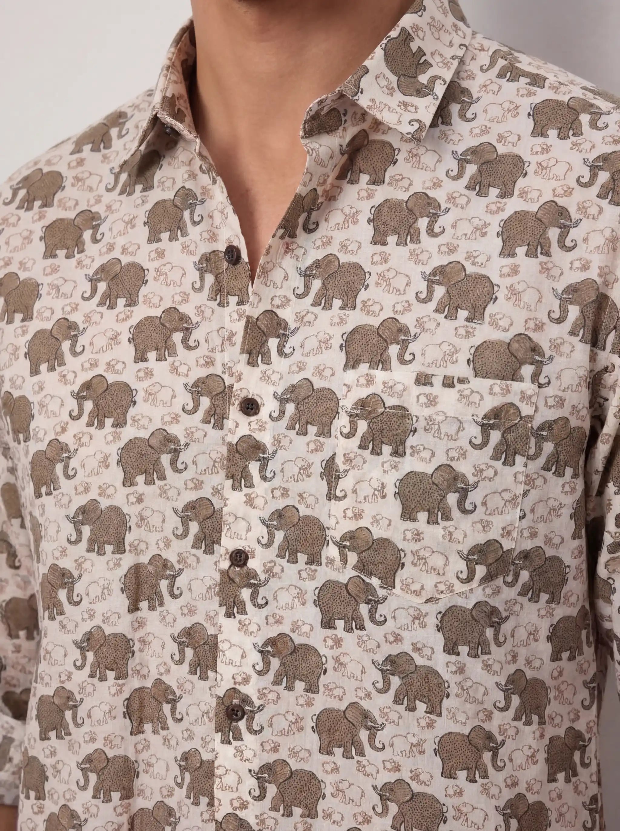 Step into the wild with Elephant Parade by Jaipuri Crown – a charming Full sleeve cotton shirt featuring an adorable elephant print in earthy tones on a cream backdrop. Made from 100% Sanganeri cotton, this shirt promises a soft, breathable comfort, making it an excellent choice for casual gatherings, weekend outings, or simply lounging at home.