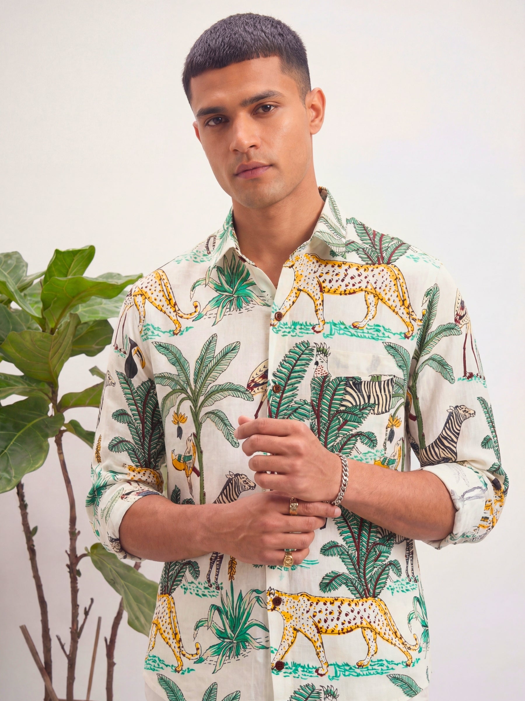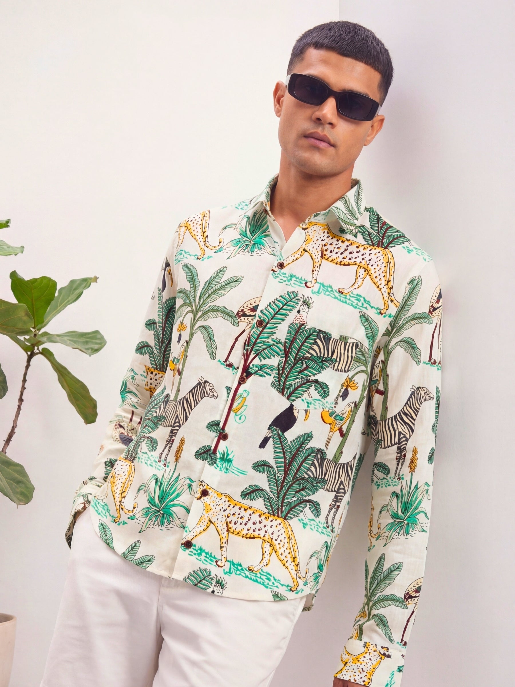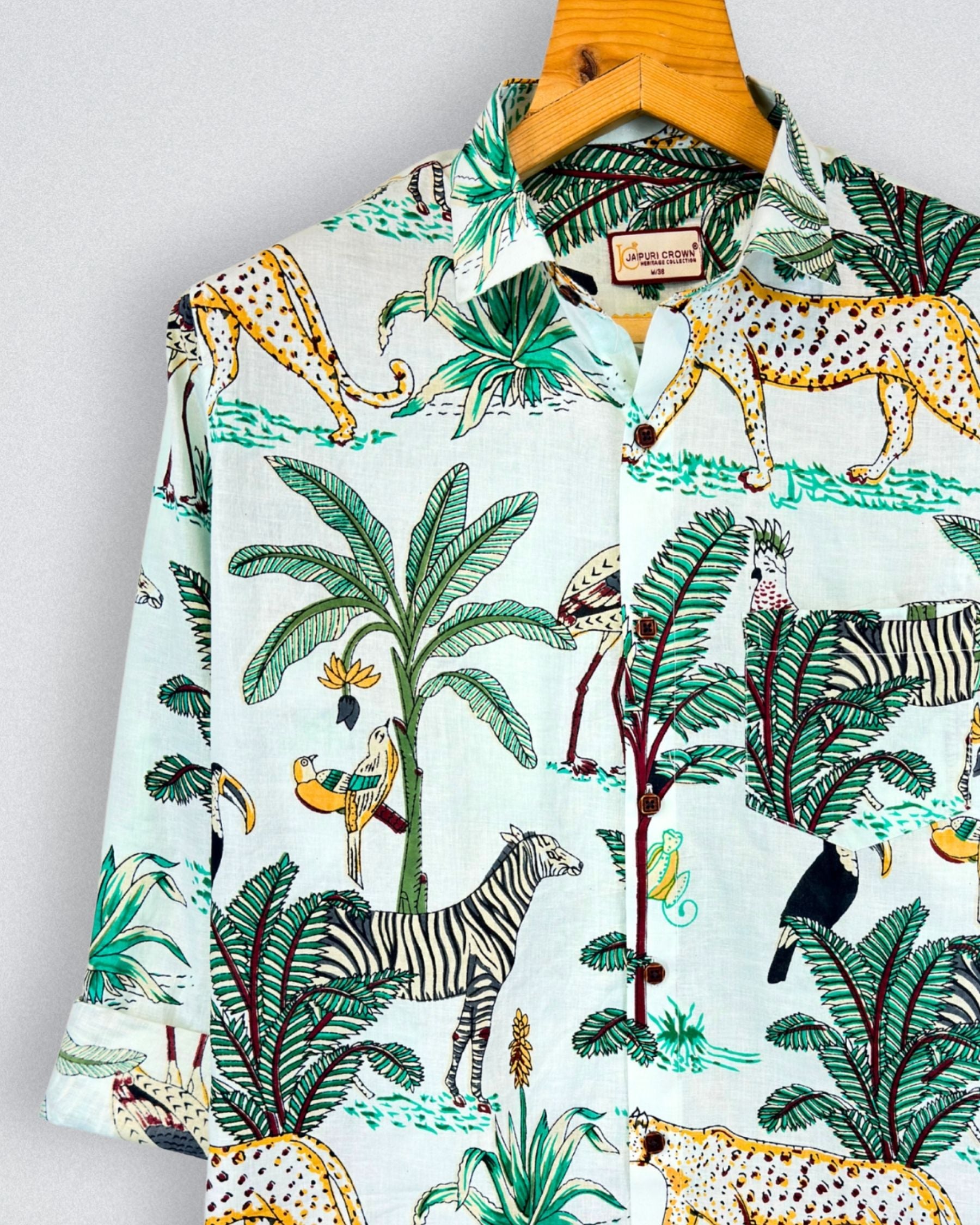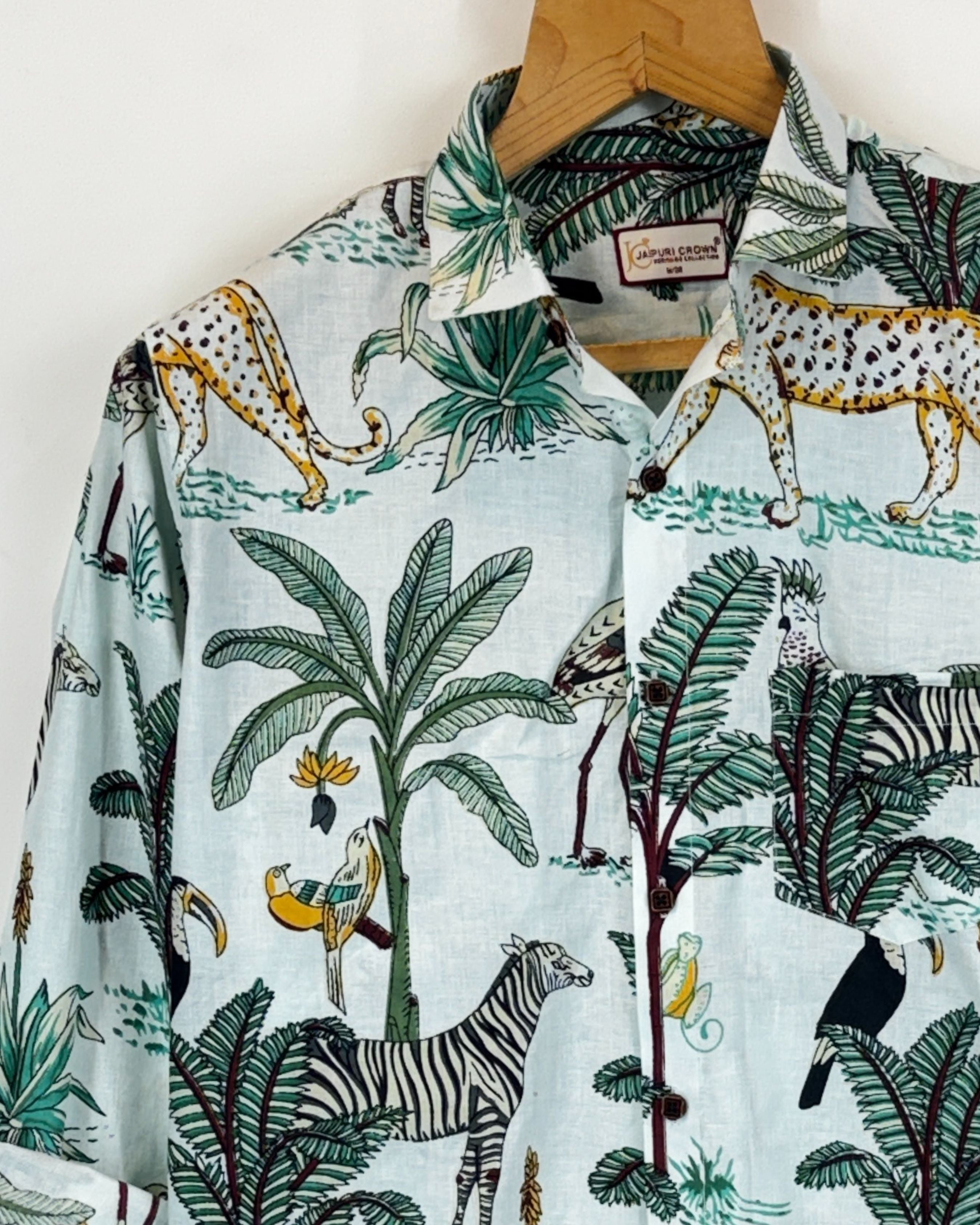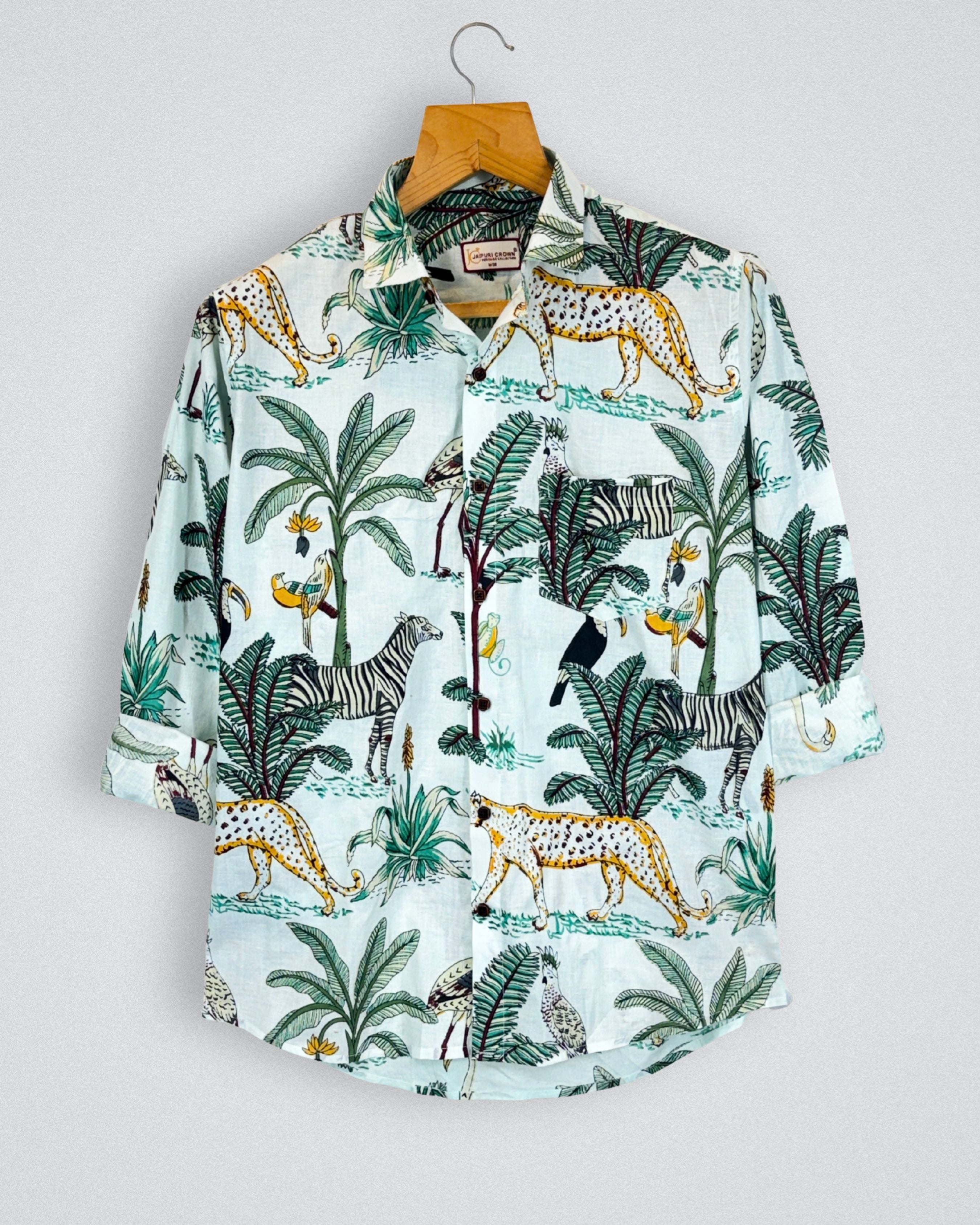 Step into a world of vibrant nature with Tropical Birds by Jaipuri Crown – a stunning Full Sleeve cotton shirt featuring a lively print of colorful birds and lush foliage against a soft cream background. Made from 100% Sanganeri cotton, this shirt is designed for ultimate comfort and breathability, making it an ideal choice for casual outings, weekend get-togethers, or beach strolls.