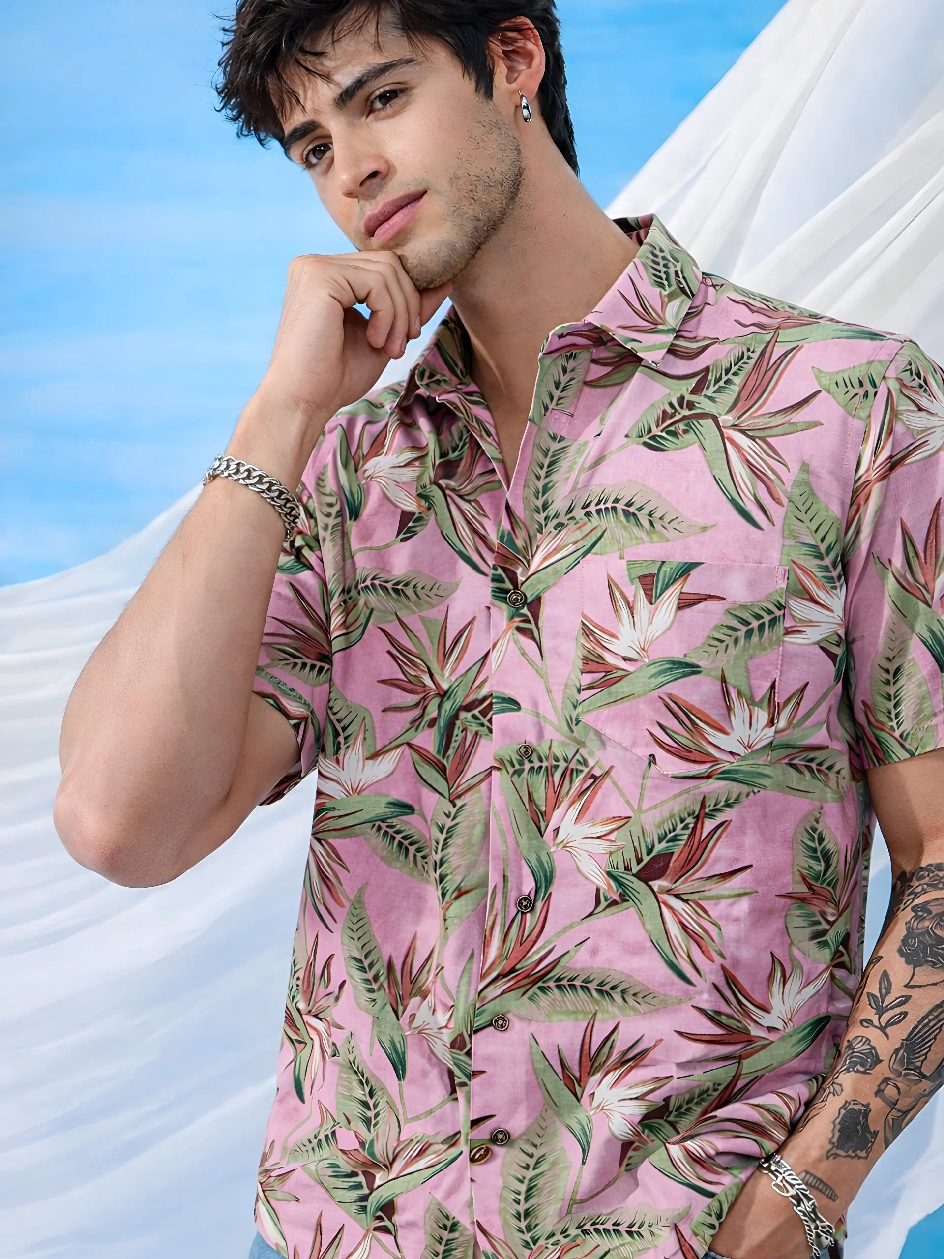 Step into summer with Tropical Escape by Jaipuri Crown – a vibrant half sleeve cotton shirt featuring an eye-catching tropical leaf print in shades of pink and green. Crafted from 100% breathable cotton, this shirt is perfect for casual outings, beach days, or laid-back gatherings. The soft fabric ensures comfort while the stylish design keeps you looking fresh and trendy.