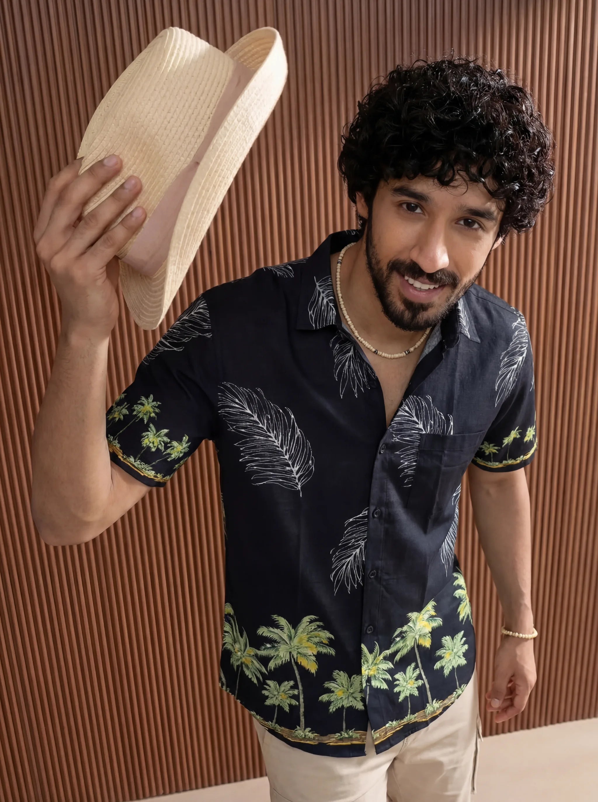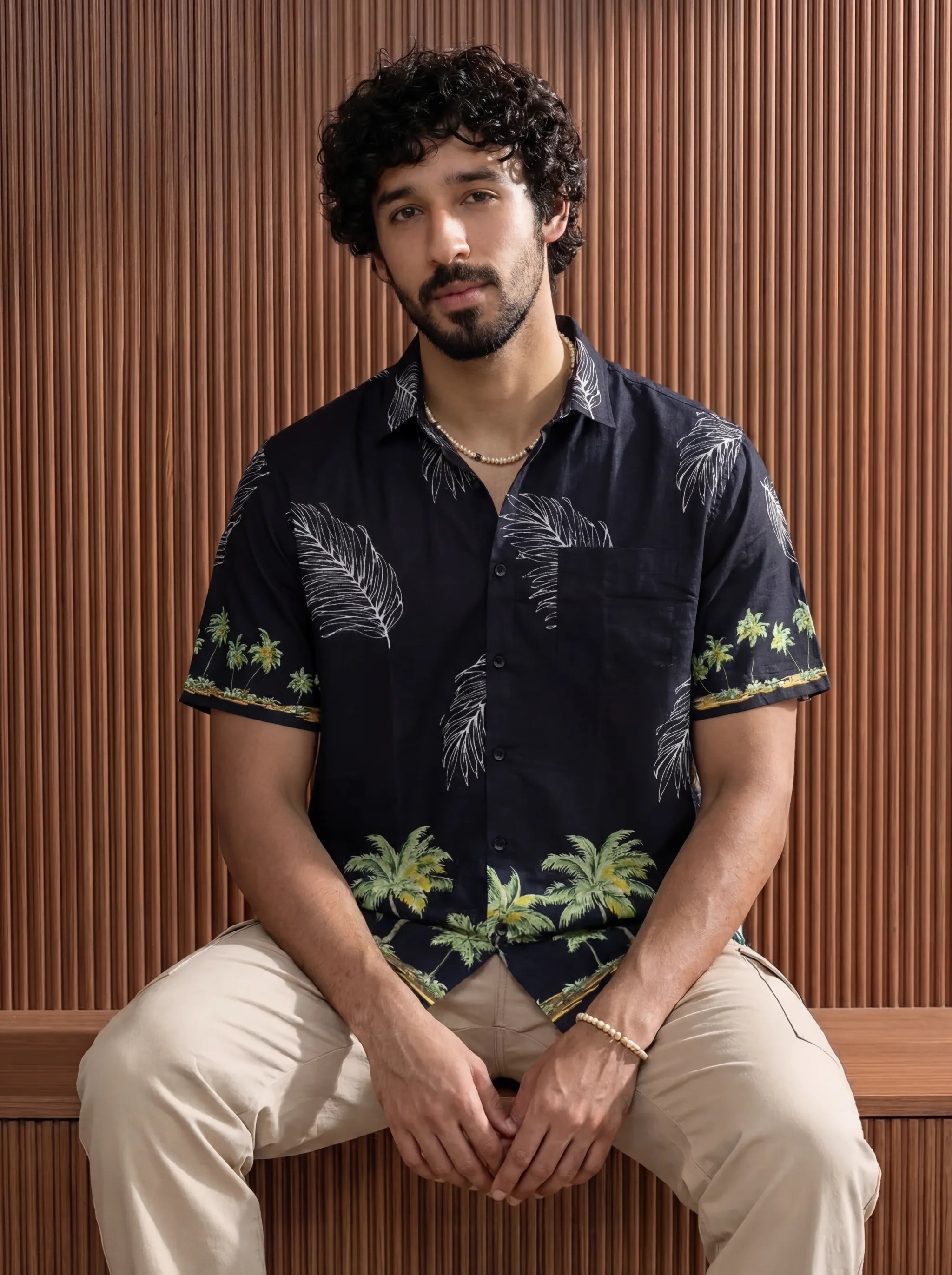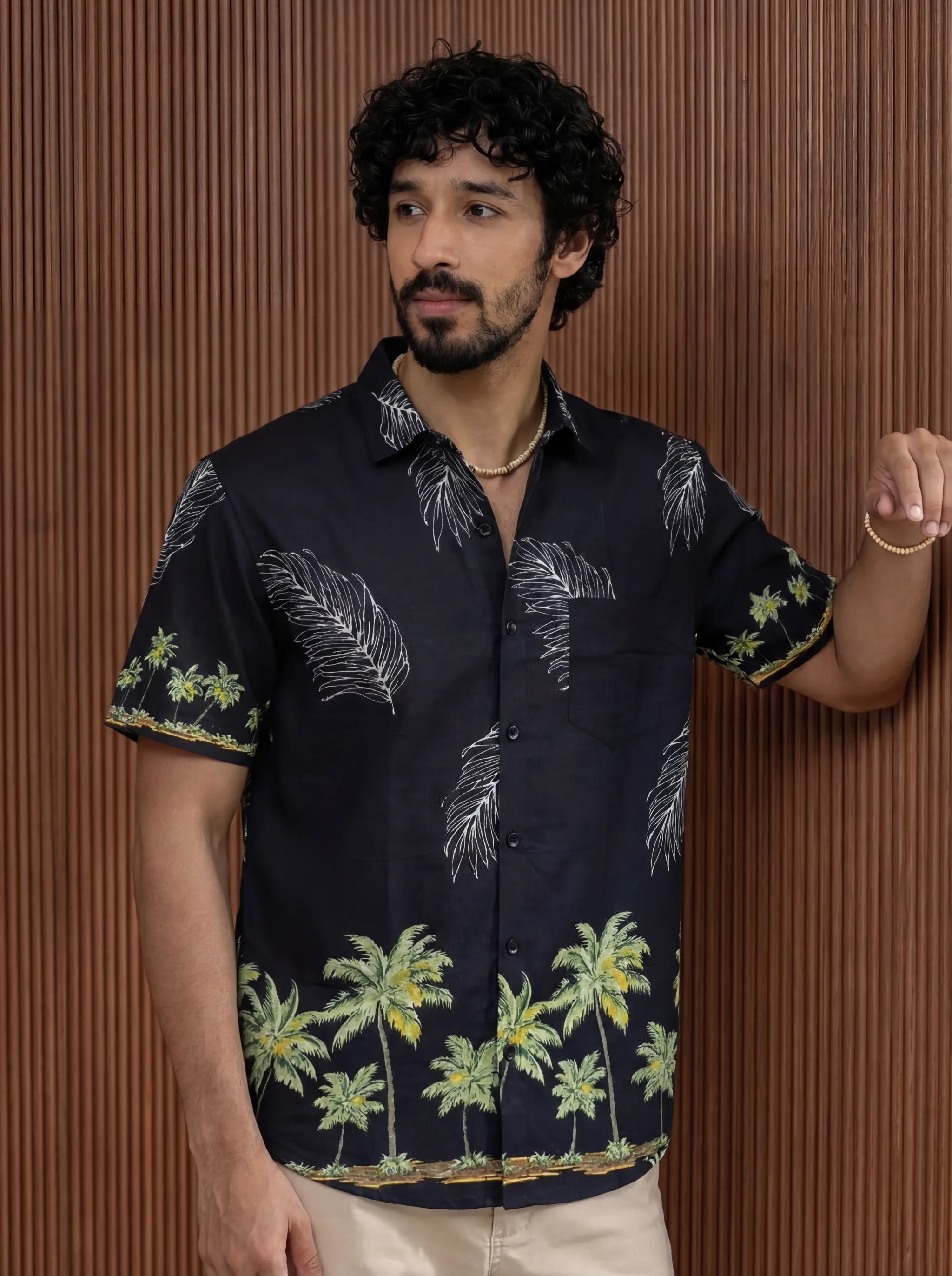 Step into style with Tropical Vibes by Jaipuri Crown – a trendy half sleeve cotton shirt featuring an eye-catching floral print in white against a deep black backdrop. Made from 100% pure cotton, this shirt ensures a comfortable and breathable fit, perfect for casual outings, beach parties, or laid-back weekends.