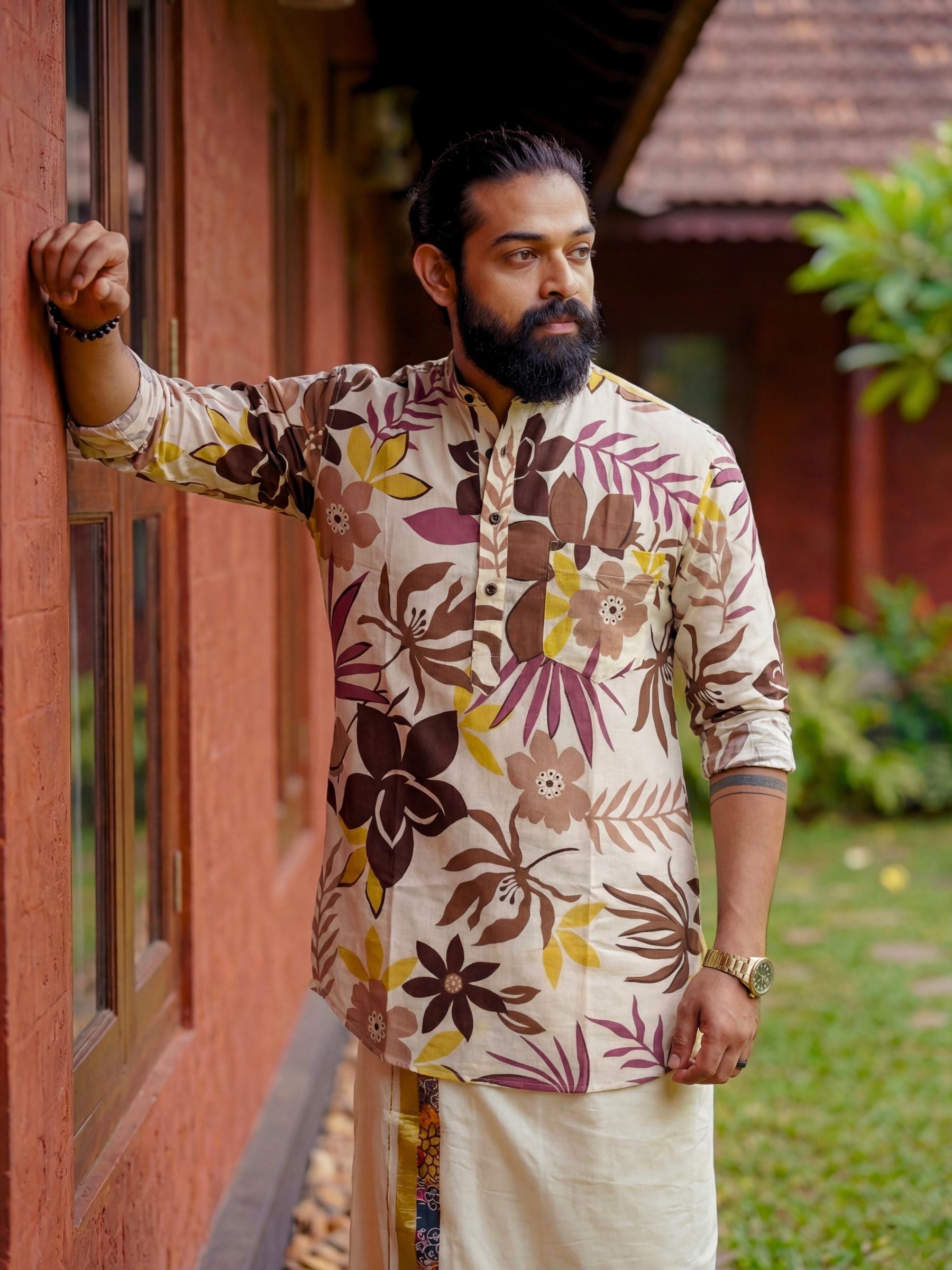 Step into style with Floral Symphony by Jaipuri Crown – a stunning Short Kurta featuring a lively floral print in shades of purple and yellow on a soft cream background. Made from 100% Sanganeri cotton, this Kurta provides an exquisite blend of comfort and breathability, making it ideal for casual gatherings, festive occasions, or leisurely outings.