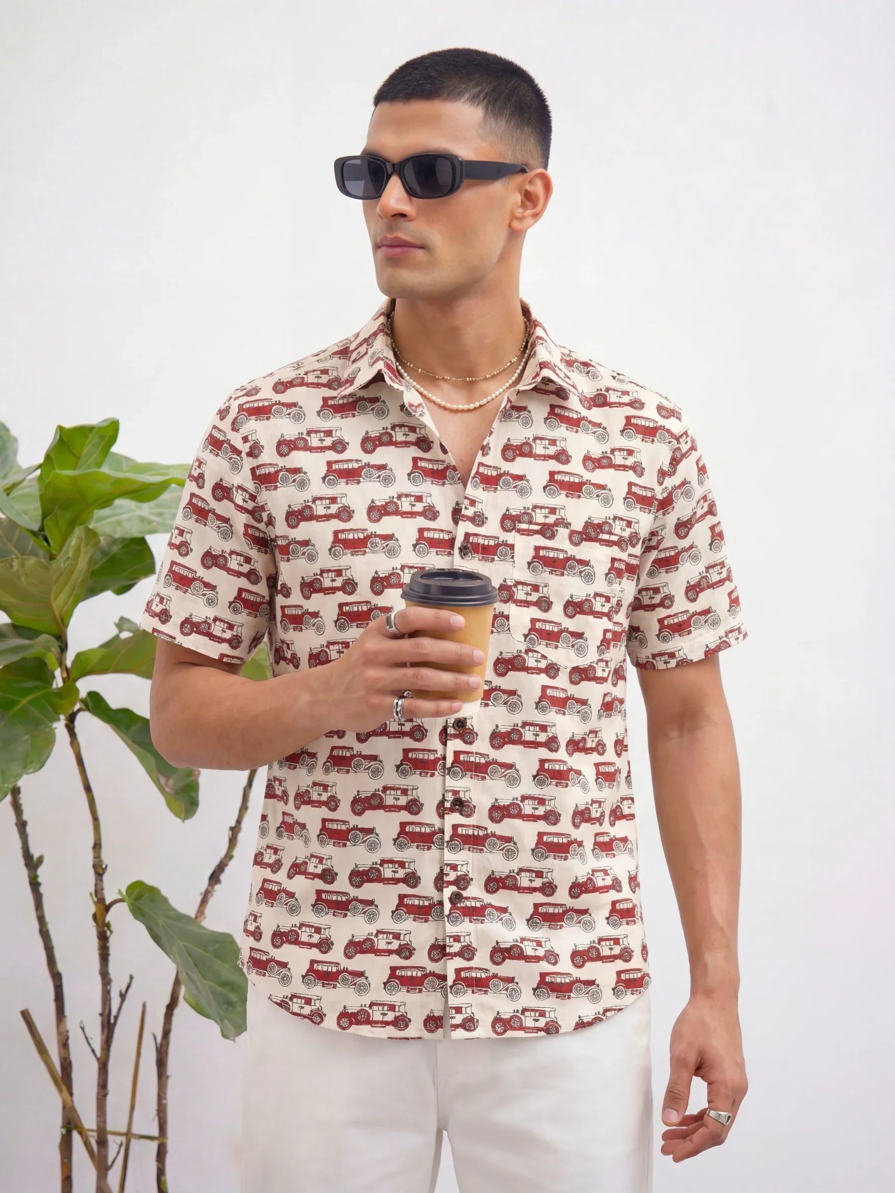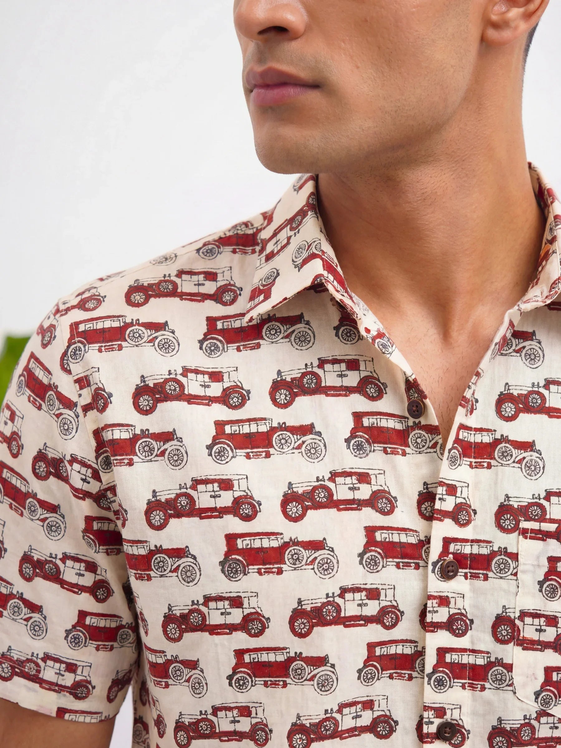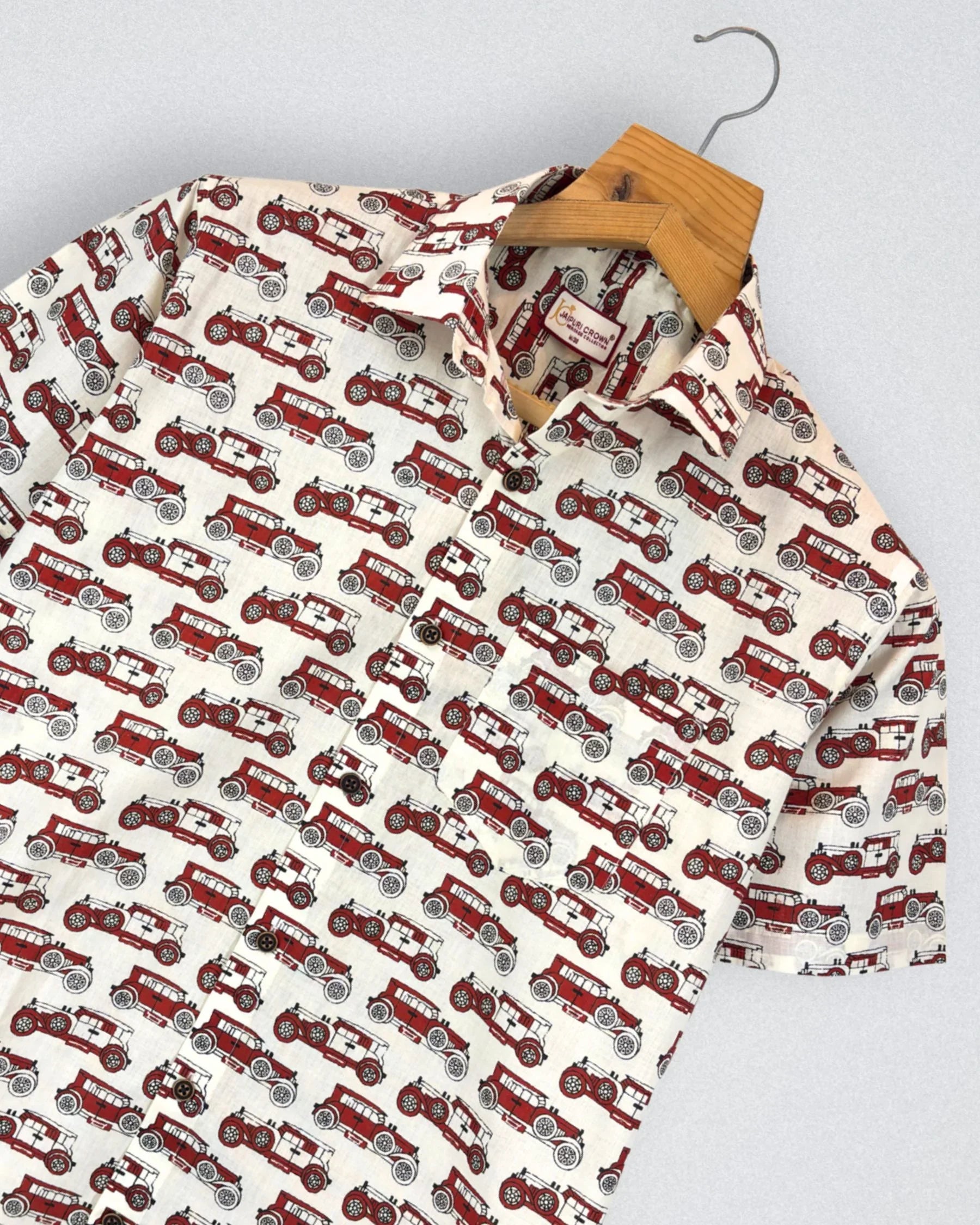 Rev up your style with Vintage Ride by Jaipuri Crown – a charming half sleeve cotton shirt featuring a playful vintage car print in rich red tones against a soft cream backdrop. Made from 100% Sanganeri cotton, this shirt ensures a comfortable, breathable fit, perfect for casual outings, weekend adventures, or laid-back gatherings with friends.